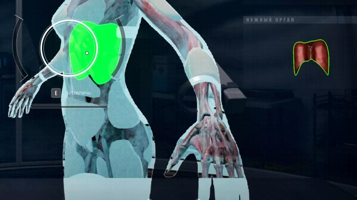 小游戏玩法说明 当有人被送到实验室后,你可以与旁边的显示器互动来启动器官提取小游戏。小游戏的玩法如下: 你需要按住【E】键来提取被绿色高亮显示的器官。虽然这并非特别有用,但所需器官也会显示在右侧。