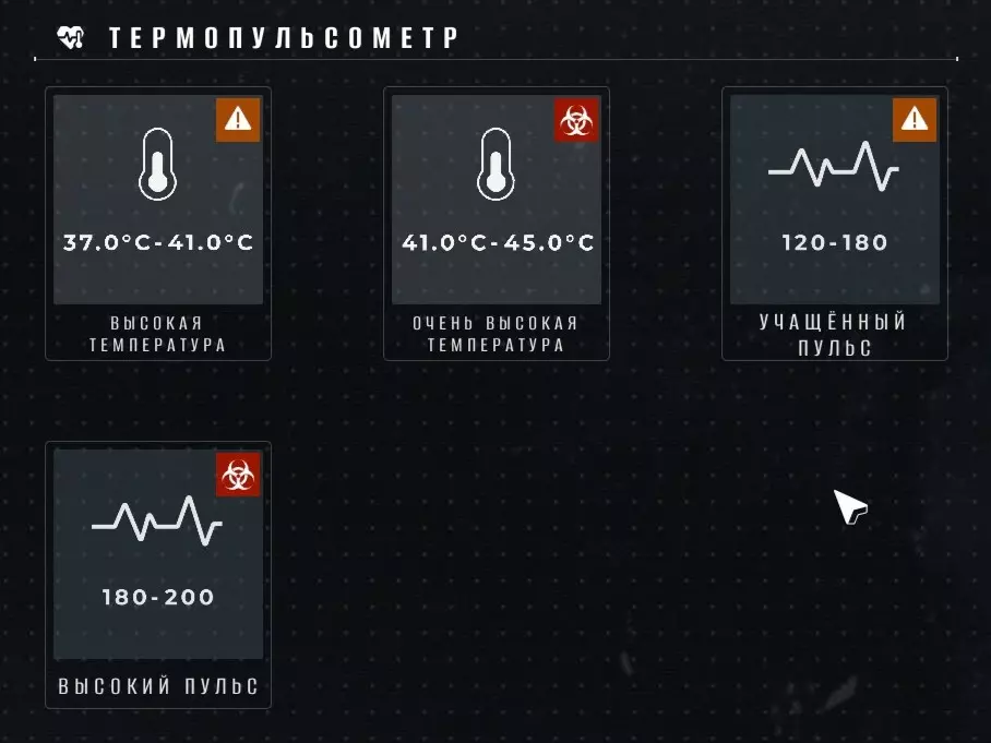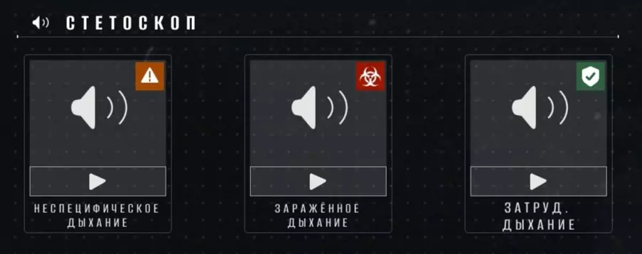 所有症状已全部解锁,只需将仪器读数与数值进行匹配即可。人的脉搏几乎会立即显示,而体温测量则需要5-7秒(体温越高,测量时间越长)。 听诊器