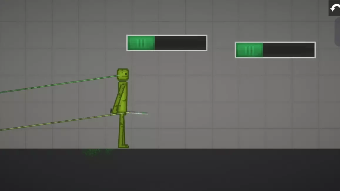 这是甜瓜游乐场的游戏内容分享,展示了蓝色毛绒角色和绿色甜瓜人在游戏里的互动对战场景,画面里的红色痕迹是西瓜汁,呈现出趣味的游戏欢乐时刻。
