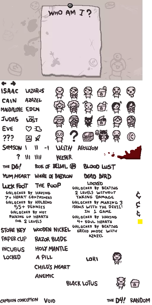 如何轻松制作基于Lua的角色 你需要准备以下工具: 1. 首先,你需要一个基础模板。Hutts的模板是个不错的选择,感谢制作者! 2. Notepad ++ 3. zbstudio 4. 你需要找到zerobrane文件夹,并将Afterbirth-API-for-ZeroBrane包放置在packs文件夹中进行安装 5. GIMP或Paint.Net,选择你喜欢的即可 准备好工具后,我们开始吧! (操作建议)可以听些音乐 加载与编辑! 打开《以撒的结合:胎衣+》(即重生),确保在“我是谁?”界面中能看到Hutts模板