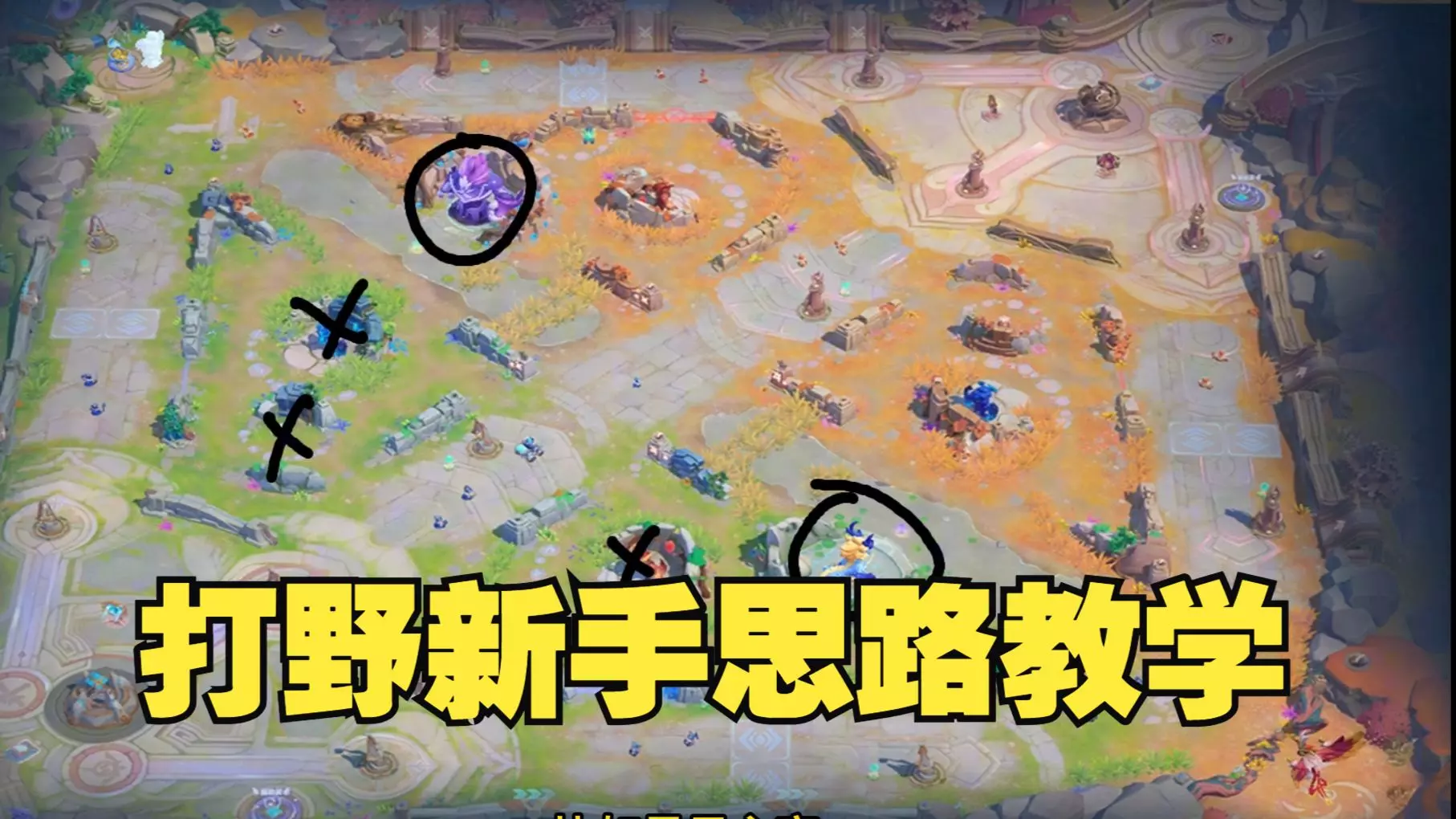 这是《元梦之星》峡谷5V5模式的游戏实况,展示了玩家使用宫本武藏进行打野的试玩过程,呈现了打野发育、战斗等游戏环节。