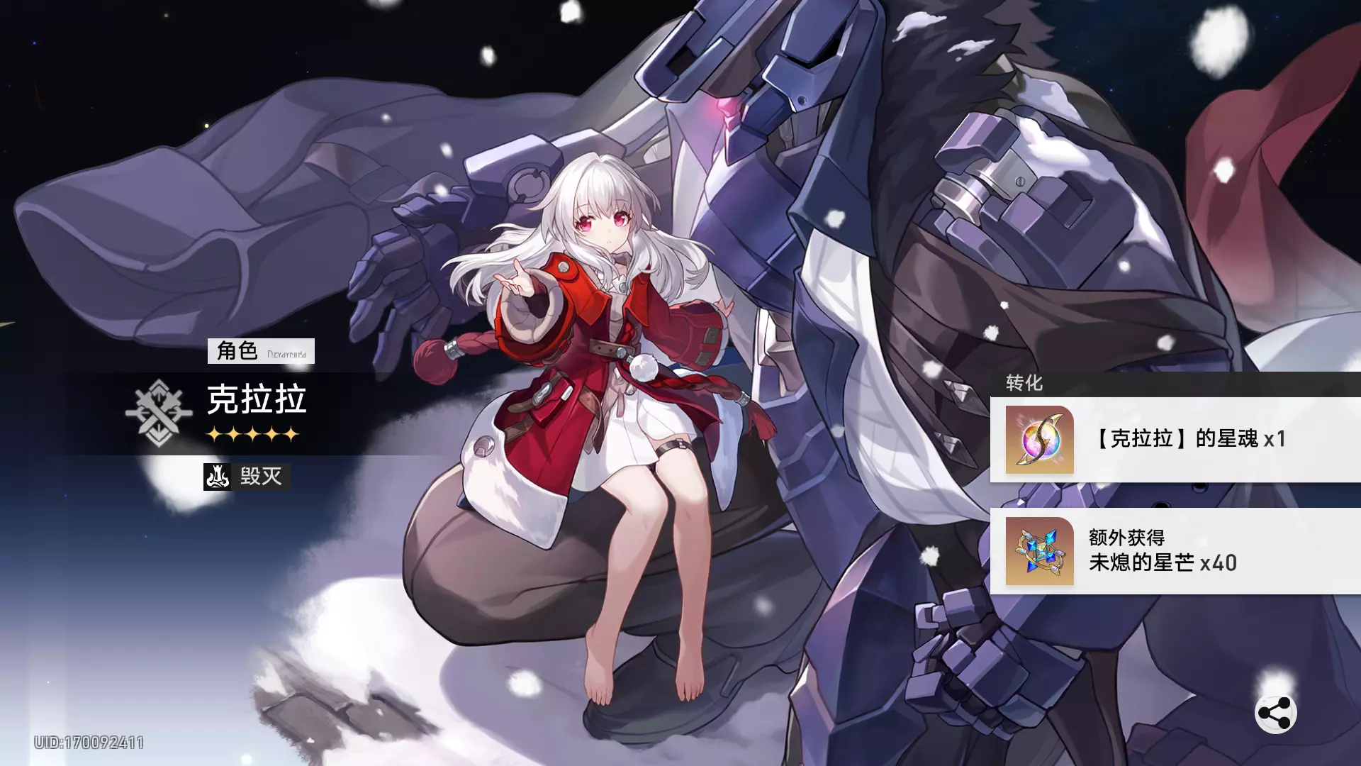 说实话也离谱,大号50抽爻光是大守护者,小号2抽长夜月是克拉拉,贝洛伯格的人都爱凑热闹吗?