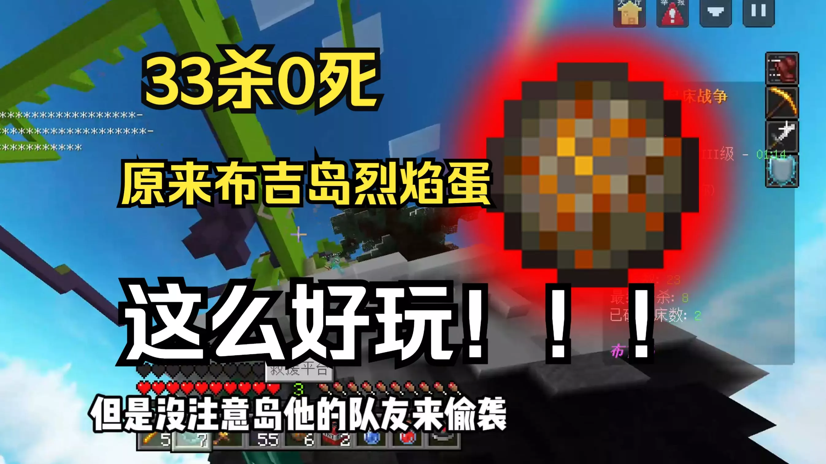 这是布吉岛起床战争的游戏内容,分享了用手机打出所有烈焰弹的技巧,展示了游戏内的对战场景,包含击杀、破坏床等游戏环节,助力玩家提升该玩法的操作能力。