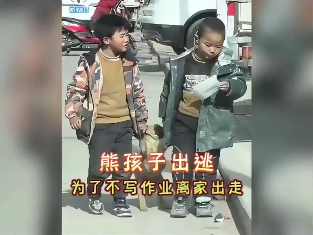 熊孩子和朋友相约离家出走,两个熊孩子为不写作业,相约离家出走