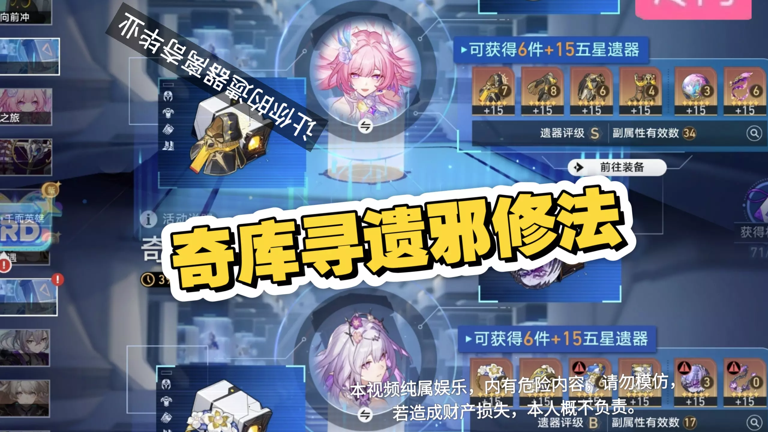 《崩坏:星穹铁道》新活动“奇库寻遗”刷遗器时,别被官方推荐误导,建议挑选自带大攻击、双爆这类有效词条精简的角色,比如给绯英等攻击主C刷时选火花白厄,更容易出极品遗器。