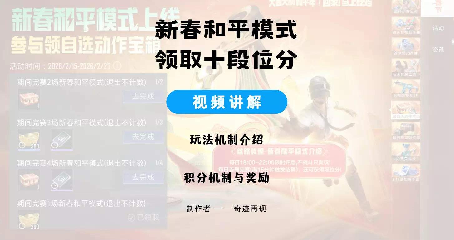 一期视频带你了解丝路敦煌限时新春和平模式,每日轻松领取10段位积分!