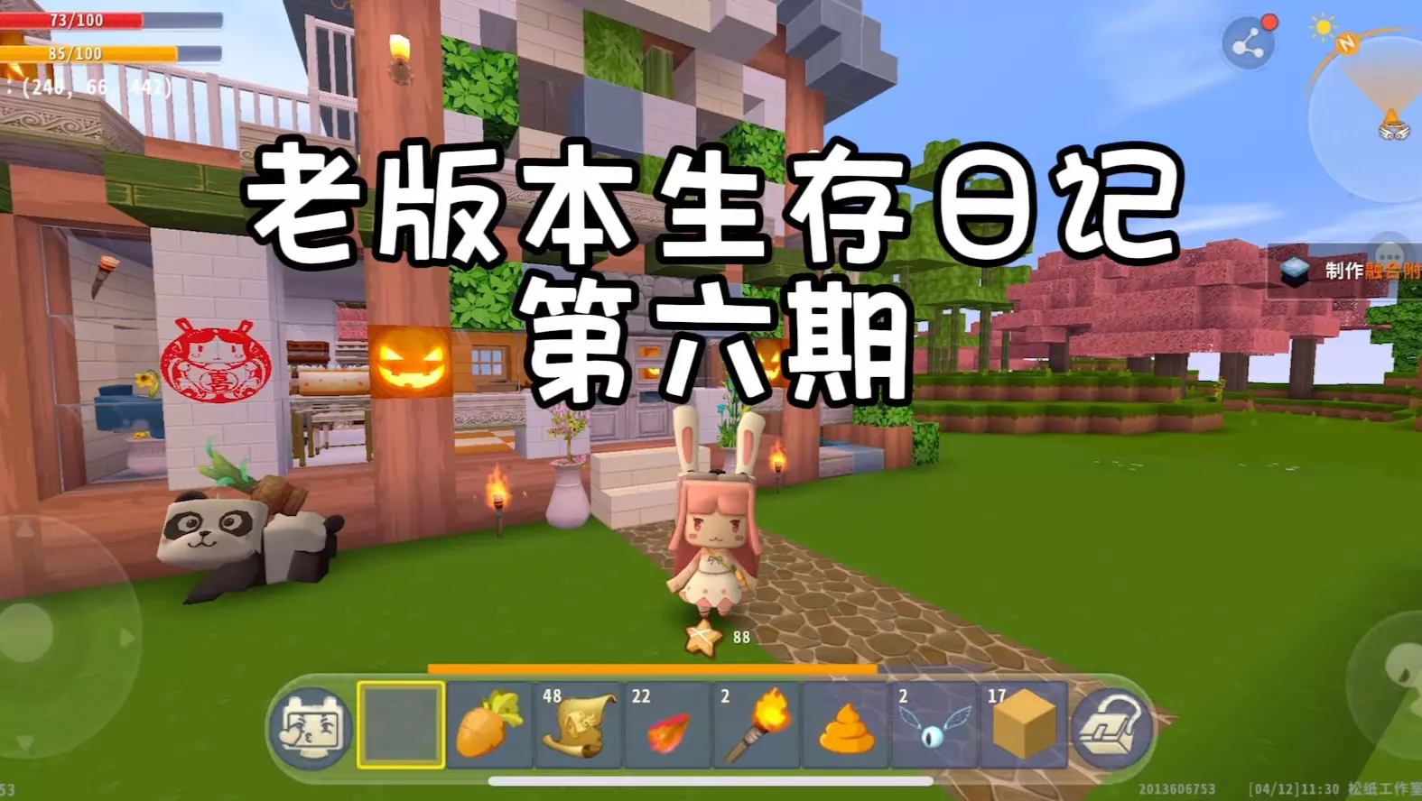 这是沙盒游戏《迷你世界》老版本生存日记第七期内容,展示了游戏里的家园场景,还呈现了查看储物箱、收集曙光石块、探索野外、种植星辰花种子等生存玩法。
