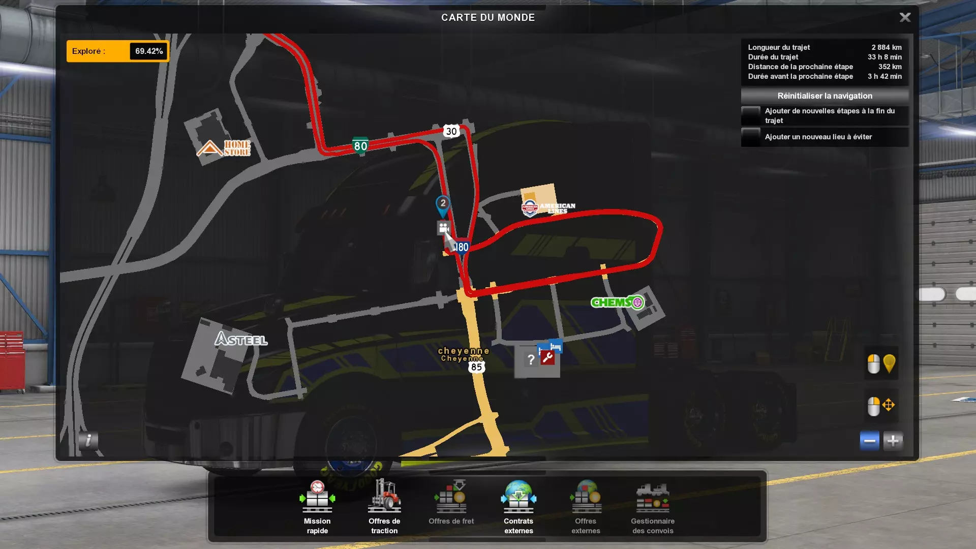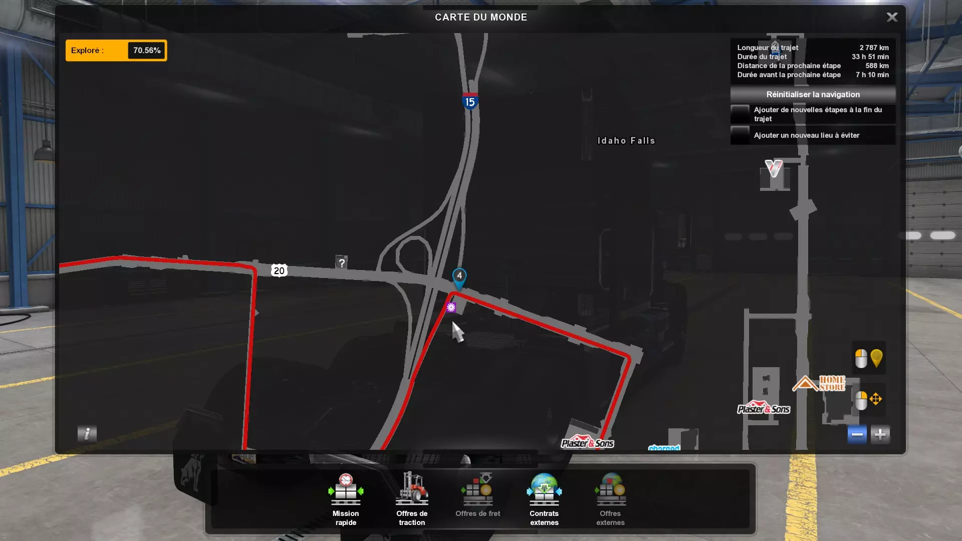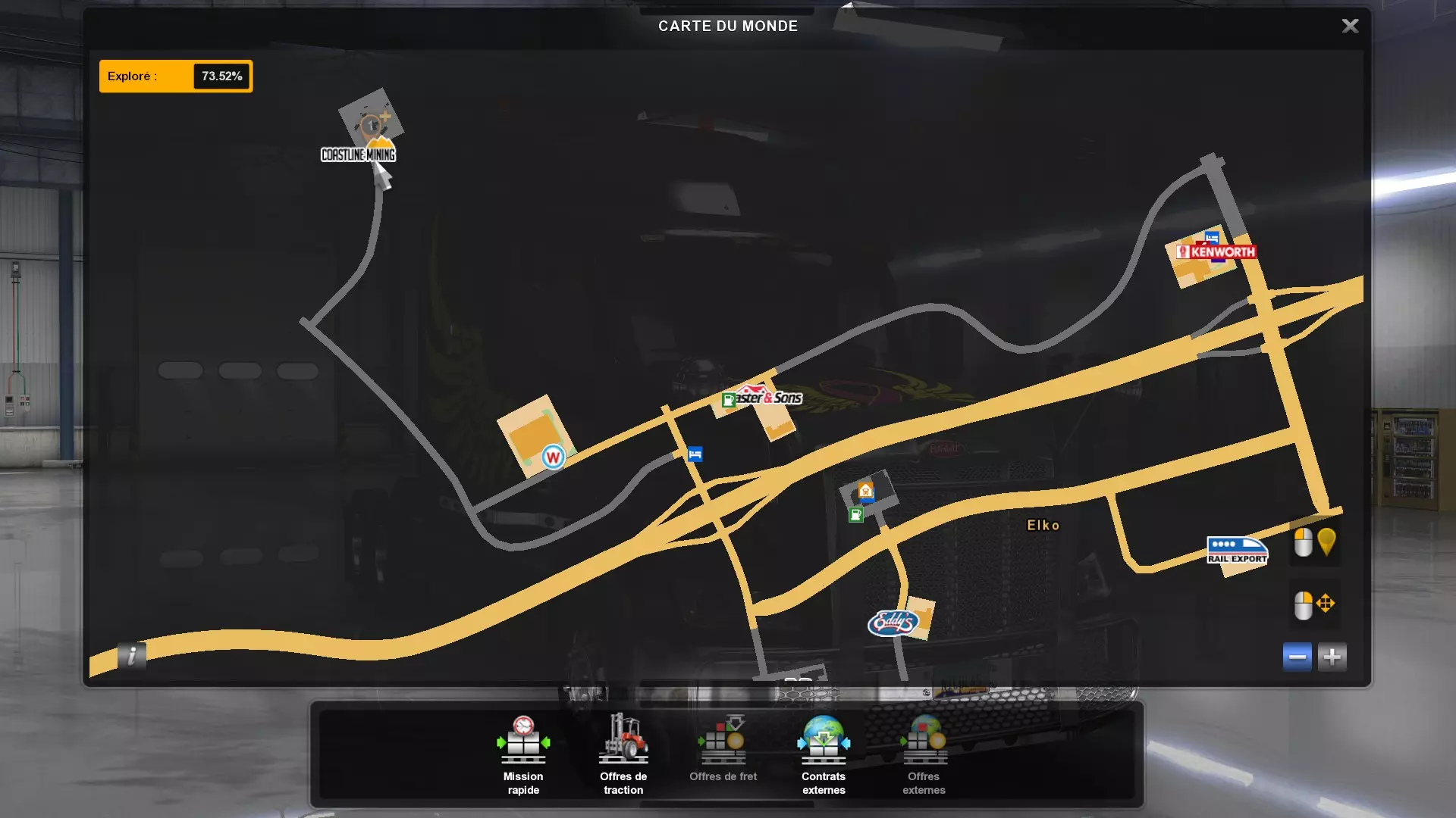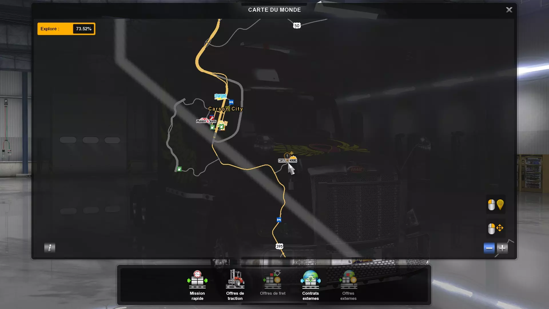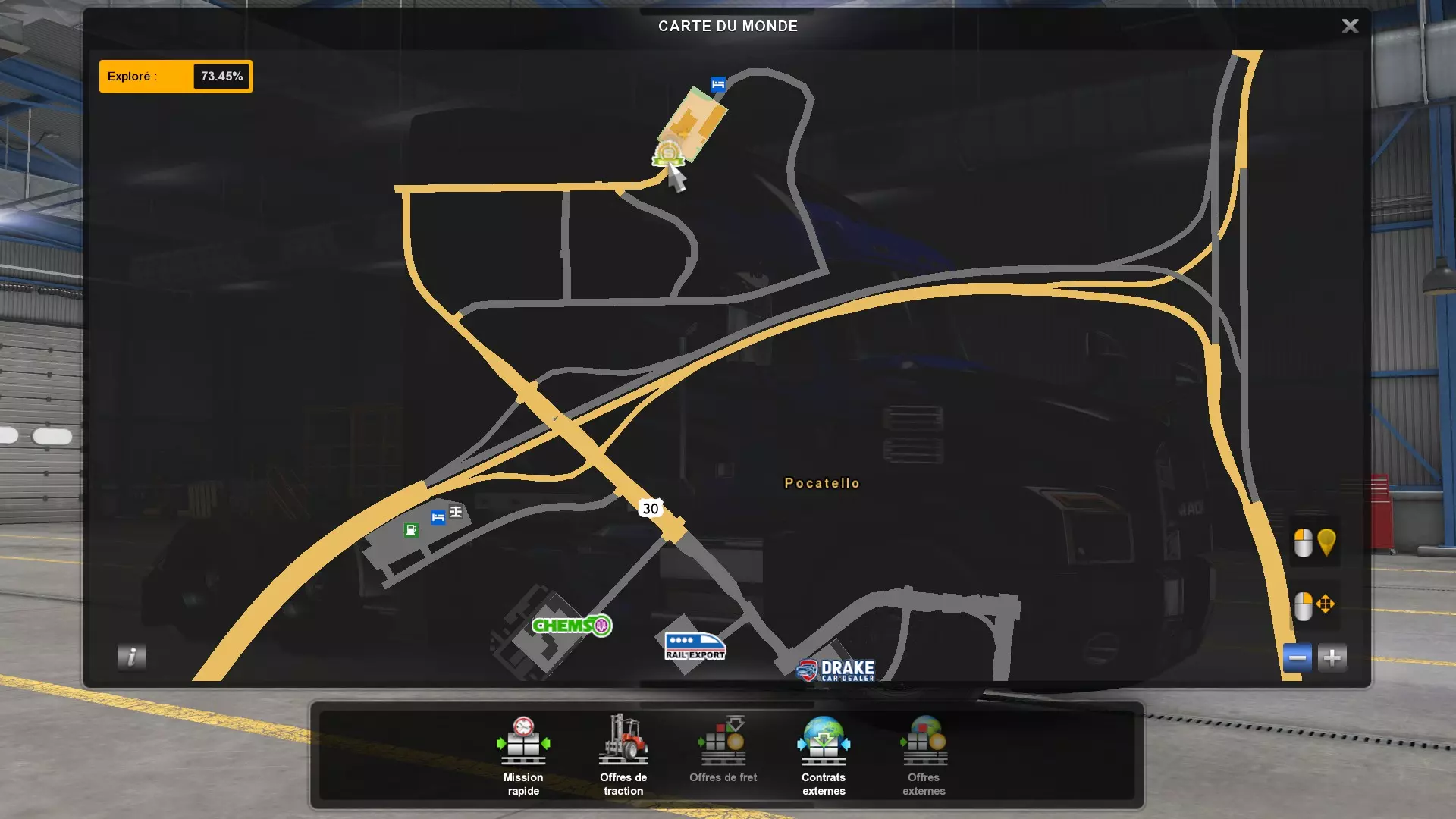 Arizona (AZ)Kingman (AZ) Flagstaff (AZ) 250 km Phoenix (AZ) Sierra Vista (AZ) 293 km Yuma (AZ) Tucson (AZ) 419 km Arkansas (AR)Jonesboro (AR) Hot Springs (AR) 356 km Little Rock (AR) El Dorado (AR) 250 km Little Rock (AR) Texarkana (AR) 344 km Californie (CA)Eureka (CA) Reeding (CA) 186 km Fresno (CA) Bakersfield (CA) 169km Oakland (CA) Huron (CA) 255 km Oakland (CA) Fresno (CA) 332 km Oxnard (CA) Barstow (CA) 298 km Sacramento (CA) Oakdale (CA) 336 km Santa Cruz (CA) Santa Maria (CA) 305 km Stockton (CA) San Francisco (CA) 228 km Stockton (CA) Huron (CA) 295 km Truckee (CA) Oakland () 312 km Truckee (CA) Carson City (NV) 222 km Colorado (CO)Burlington (CO) Lamar (CO) 205 km Denver (CO) Colorado Springs (CO) 206 km Denver (CO) Grand Junction (CO) 467 km Pueblo (CO) Denver (CO) 397 km Pueblo (CO) Marysville (KS) 1139 km Pueblo (CO) Dodge City (KS) 504 km Pueblo (CO) Pueblo (CO) 147 km Sterling (CO) Colorado Springs (CO) 310 km Idaho (ID)Boise (ID) Grangeville (ID) 303 km Idaho Falls (ID) Salmon (ID) 234 km Lewiston (ID) Sandpoint (ID) 277 km Twin Falls (ID) Nampa (ID) 233 km Iowa (IA)Burlington (IA) Iowa City (IA) 156 km Dubuque (IA) Mason City (IA) 395 km Sioux City (IA) Des Moines (IA) 314 km Kansas (KS)Colby (KS) Hutchinson (KS) 418 km Dodge City (KS) Emporia (KS) 345 km Topeka (KS) Pittsburg (KS) 226 km Wichita (KS) Salina (KS) 147 km Louisiane (LA)Houma (LA) Port Fourchon (LA) 121 km Nouvelle-Orléans (LA) Lafayette (LA) 289 km Lake Charles (LA) Natchitoches (LA) 264 km Shreveport (LA) Baton-Rouge (LA) 349 km Missouri (MO)Cap-Girardeau (MO) Springfield (MO) 425 km Kansas City (MO) Rolla (MO) 452 km St Louis (MO) Kirksville (MO) 430 km Montana (MT)Butte (MT) Bozeman (MT) 389 km Havre (MT) Lewistown (MT) 374 km Laurel (MT) Glendive (MT) 395 km Laurel (MT) Billing (MT) 178 km Thompson Falls (MT) Kalispell (MT) 306 km Nevada (NV)Primm (NV) Ely (NV) 520 km Winnemucca (NV) to Carson City (NV) 418 km Nouveau-Mexique (NM)Artesia (NM) Las Cruces (NM) 290 km Clovis(NM) Hobbs (NM) 333 km Farmington (NM) Raton (NM) 525 km Gallup (NM) Raton (NM) 574 km Santa Fe (NM) Socorro (NM) 215 km Socorro (NM) Tucson (AZ) 659 km Oklahoma (OK) Clinton (OK) Guymon (OK) 246 km Lawton (OK) McAlester (OK) 294 km Oklahoma City (OK) Tulsa (OK) 264 km Oregon (OR)Pendleton (OR) Burns (OR) 318 km Portland (OR) Newport (OR) 294 km The Dalles (OR) Salem (OR) 292 km Texas (TX)Corpus Christi (TX) Brownsville (TX) 451 km Del Rio (TX) Van Horn (TX) 516 km Fort Stockton (TX) Abilene (TX) 369 km Laredo (TX) San Antonio (TX) 345 km Longview (TX) Galveston (TX) 521 km Lubbock (TX) Odessa (TX) 312 km San Angelo (TX) Dallas (TX) 446 km Wichita Falls (TX) Amarillo (TX) 392 km Utah (UT)Provo (UT) Price (UT) 184 km Salina (UT) Cedar City (UT) 203 km Vernal (UT) Salt Lake City (UT) 367 km Washington (WA)Omak (WA) Yakima (WA) 358 km Port Angeles (WA) Aberdeen (WA) 190 km Seattle (WA) Everett (WA) 78 km Spokane (WA) Grand Coulee (WA) 210 km Wyoming (WY)Casper (WY) Gilette (WY) 206 km Cheyenne (WY) Rock Springs (WY) 400 km Laramie (WY) Rawlins (WY) 136 km Riverton (WY) Jackson (WY) 331 km 6 - Votre tombereau est arrivé !
