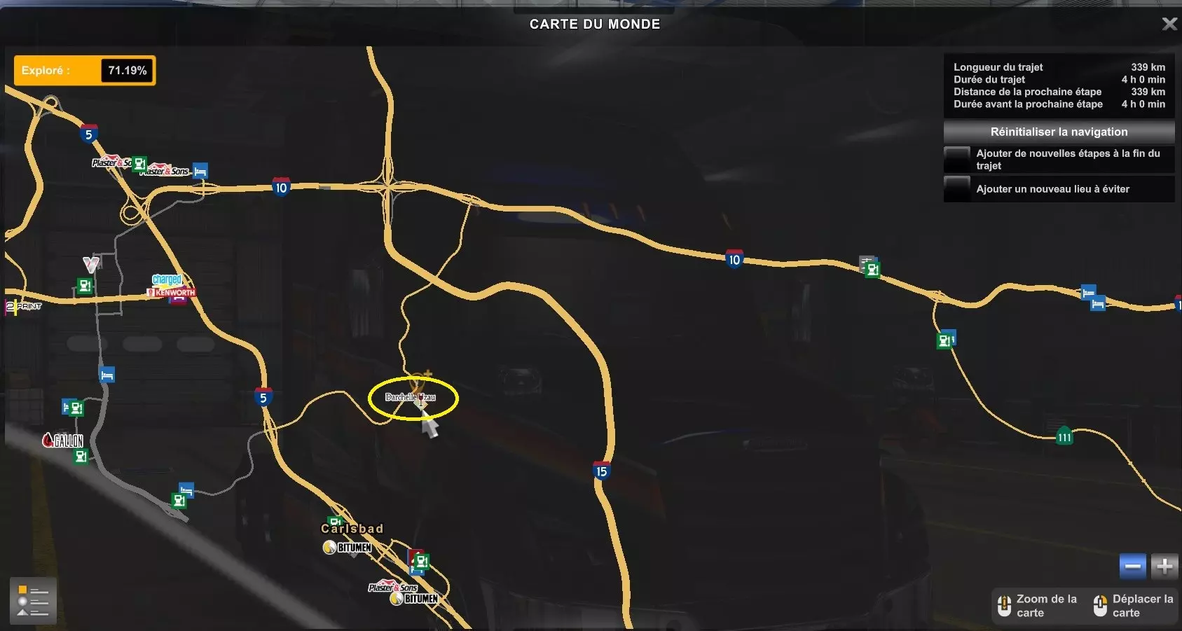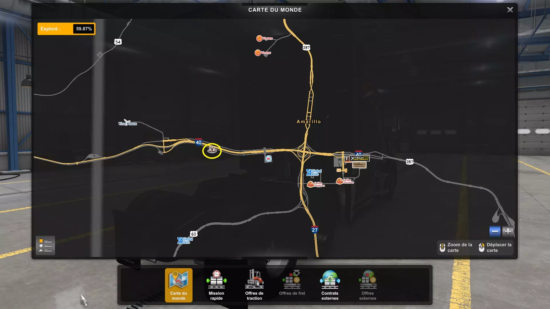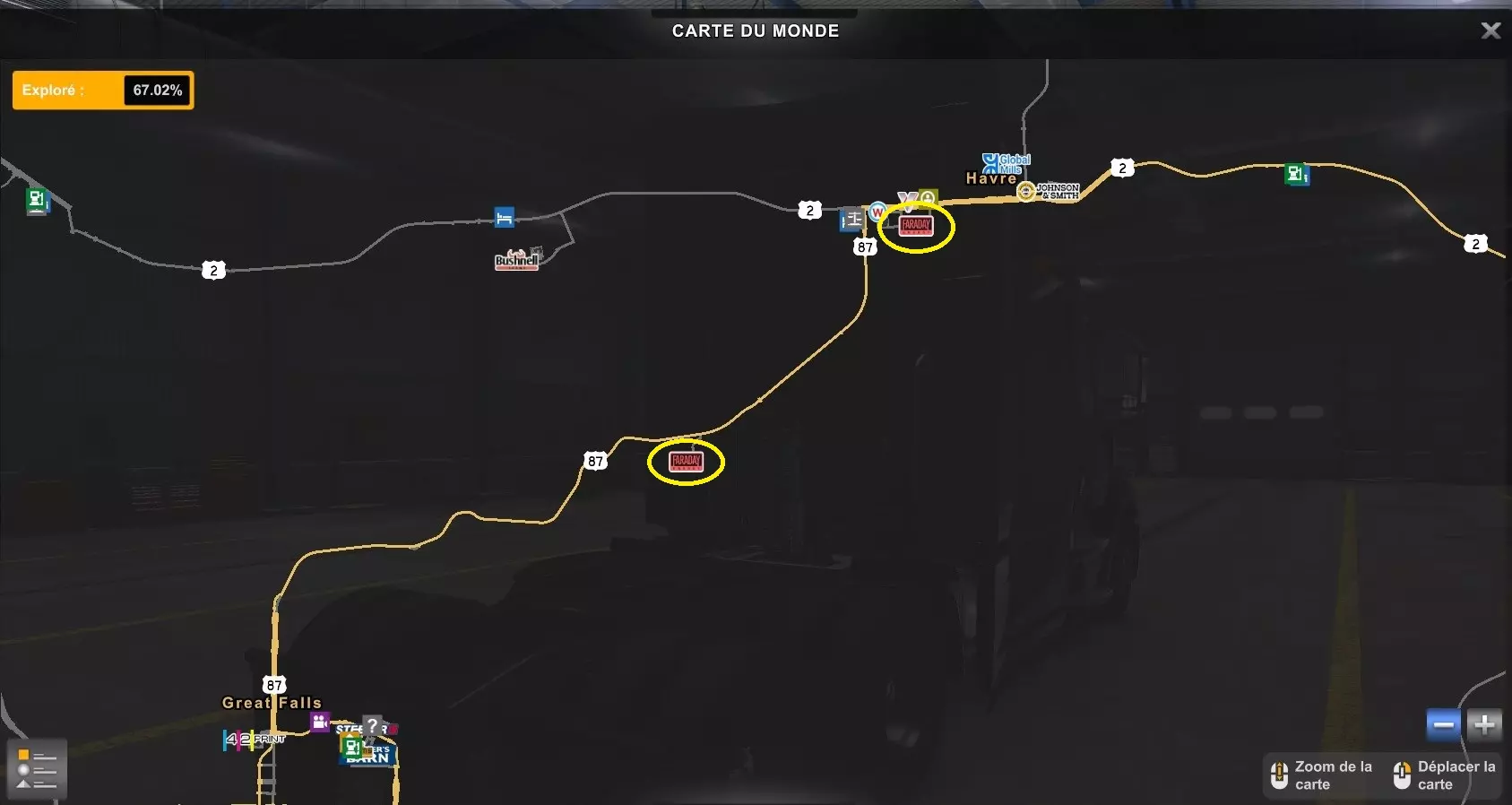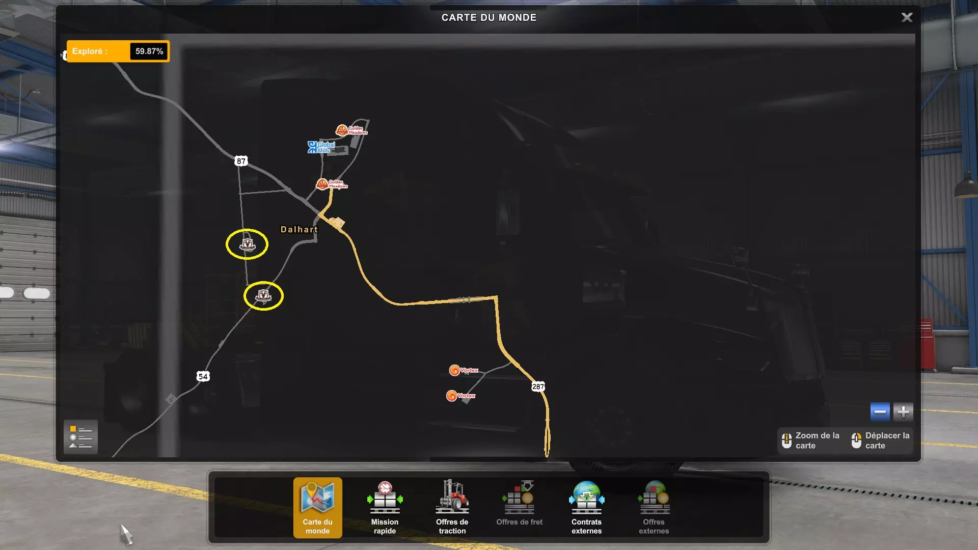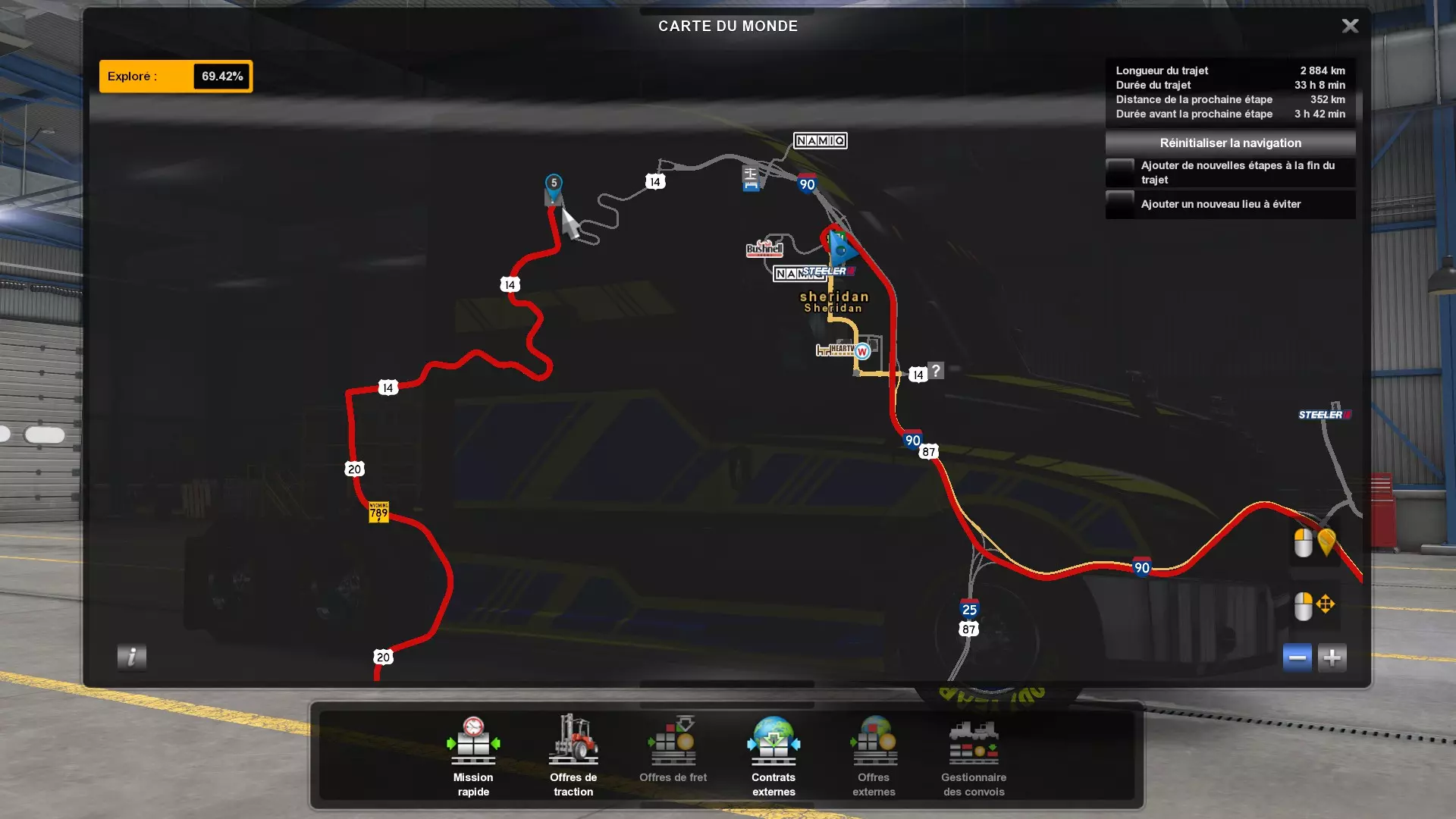 Arizona (AZ)Kingman (AZ) Flagstaff (AZ) 250 km Phoenix (AZ) Sierra Vista (AZ) 293 km Yuma (AZ) Tucson (AZ) 419 km Arkansas (AR)Jonesboro (AR) Hot Springs (AR) 356 km Little Rock (AR) El Dorado (AR) 250 km Little Rock (AR) Texarkana (AR) 344 km Californie (CA)Eureka (CA) Reeding (CA) 186 km Fresno (CA) Bakersfield (CA) 169km Oakland (CA) Huron (CA) 255 km Oakland (CA) Fresno (CA) 332 km Oxnard (CA) Barstow (CA) 298 km Sacramento (CA) Oakdale (CA) 336 km Santa Cruz (CA) Santa Maria (CA) 305 km Stockton (CA) San Francisco (CA) 228 km Stockton (CA) Huron (CA) 295 km Truckee (CA) Oakland () 312 km Truckee (CA) Carson City (NV) 222 km Colorado (CO)Burlington (CO) Lamar (CO) 205 km Denver (CO) Colorado Springs (CO) 206 km Denver (CO) Grand Junction (CO) 467 km Pueblo (CO) Denver (CO) 397 km Pueblo (CO) Marysville (KS) 1139 km Pueblo (CO) Dodge City (KS) 504 km Pueblo (CO) Pueblo (CO) 147 km Sterling (CO) Colorado Springs (CO) 310 km Idaho (ID)Boise (ID) Grangeville (ID) 303 km Idaho Falls (ID) Salmon (ID) 234 km Lewiston (ID) Sandpoint (ID) 277 km Twin Falls (ID) Nampa (ID) 233 km Iowa (IA)Burlington (IA) Iowa City (IA) 156 km Dubuque (IA) Mason City (IA) 395 km Sioux City (IA) Des Moines (IA) 314 km Kansas (KS)Colby (KS) Hutchinson (KS) 418 km Dodge City (KS) Emporia (KS) 345 km Topeka (KS) Pittsburg (KS) 226 km Wichita (KS) Salina (KS) 147 km Louisiane (LA)Houma (LA) Port Fourchon (LA) 121 km Nouvelle-Orléans (LA) Lafayette (LA) 289 km Lake Charles (LA) Natchitoches (LA) 264 km Shreveport (LA) Baton-Rouge (LA) 349 km Missouri (MO)Cap-Girardeau (MO) Springfield (MO) 425 km Kansas City (MO) Rolla (MO) 452 km St Louis (MO) Kirksville (MO) 430 km Montana (MT)Butte (MT) Bozeman (MT) 389 km Havre (MT) Lewistown (MT) 374 km Laurel (MT) Glendive (MT) 395 km Laurel (MT) Billing (MT) 178 km Thompson Falls (MT) Kalispell (MT) 306 km Nevada (NV)Primm (NV) Ely (NV) 520 km Winnemucca (NV) to Carson City (NV) 418 km Nouveau-Mexique (NM)Artesia (NM) Las Cruces (NM) 290 km Clovis(NM) Hobbs (NM) 333 km Farmington (NM) Raton (NM) 525 km Gallup (NM) Raton (NM) 574 km Santa Fe (NM) Socorro (NM) 215 km Socorro (NM) Tucson (AZ) 659 km Oklahoma (OK) Clinton (OK) Guymon (OK) 246 km Lawton (OK) McAlester (OK) 294 km Oklahoma City (OK) Tulsa (OK) 264 km Oregon (OR)Pendleton (OR) Burns (OR) 318 km Portland (OR) Newport (OR) 294 km The Dalles (OR) Salem (OR) 292 km Texas (TX)Corpus Christi (TX) Brownsville (TX) 451 km Del Rio (TX) Van Horn (TX) 516 km Fort Stockton (TX) Abilene (TX) 369 km Laredo (TX) San Antonio (TX) 345 km Longview (TX) Galveston (TX) 521 km Lubbock (TX) Odessa (TX) 312 km San Angelo (TX) Dallas (TX) 446 km Wichita Falls (TX) Amarillo (TX) 392 km Utah (UT)Provo (UT) Price (UT) 184 km Salina (UT) Cedar City (UT) 203 km Vernal (UT) Salt Lake City (UT) 367 km Washington (WA)Omak (WA) Yakima (WA) 358 km Port Angeles (WA) Aberdeen (WA) 190 km Seattle (WA) Everett (WA) 78 km Spokane (WA) Grand Coulee (WA) 210 km Wyoming (WY)Casper (WY) Gilette (WY) 206 km Cheyenne (WY) Rock Springs (WY) 400 km Laramie (WY) Rawlins (WY) 136 km Riverton (WY) Jackson (WY) 331 km 6 - Votre tombereau est arrivé !
