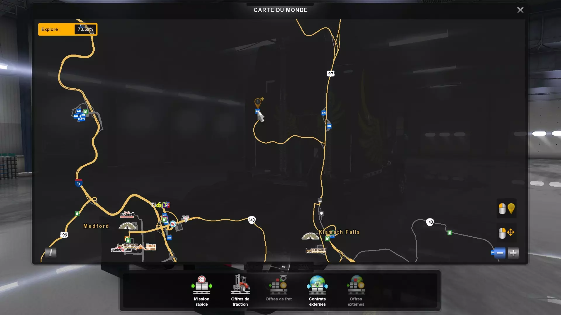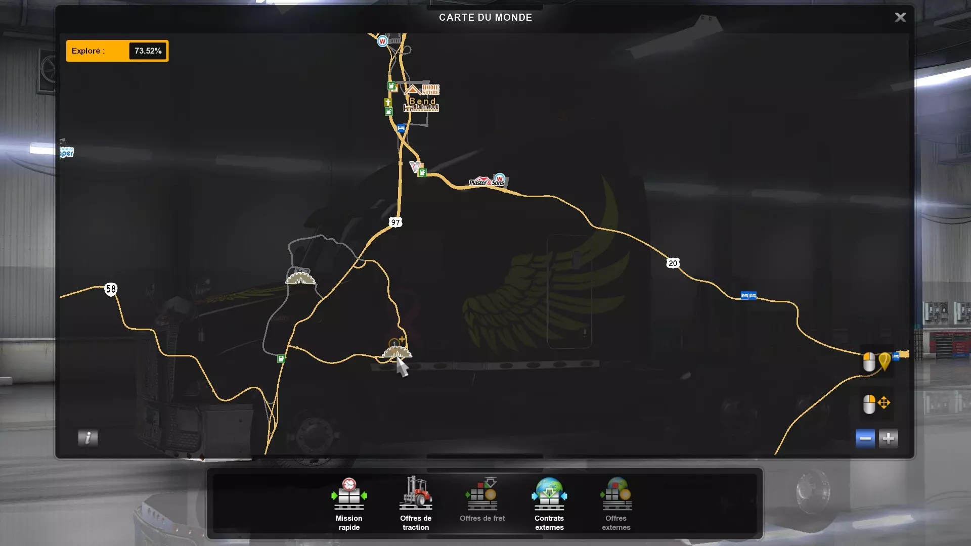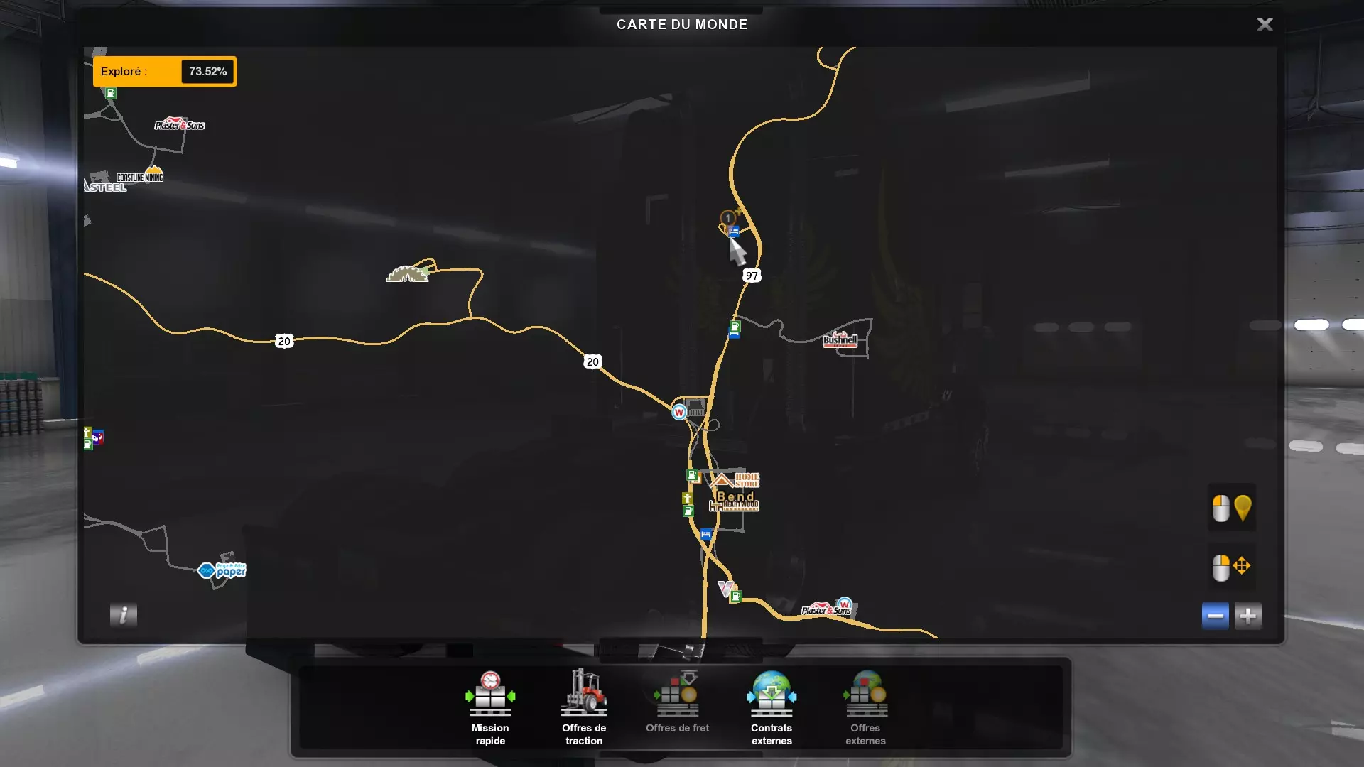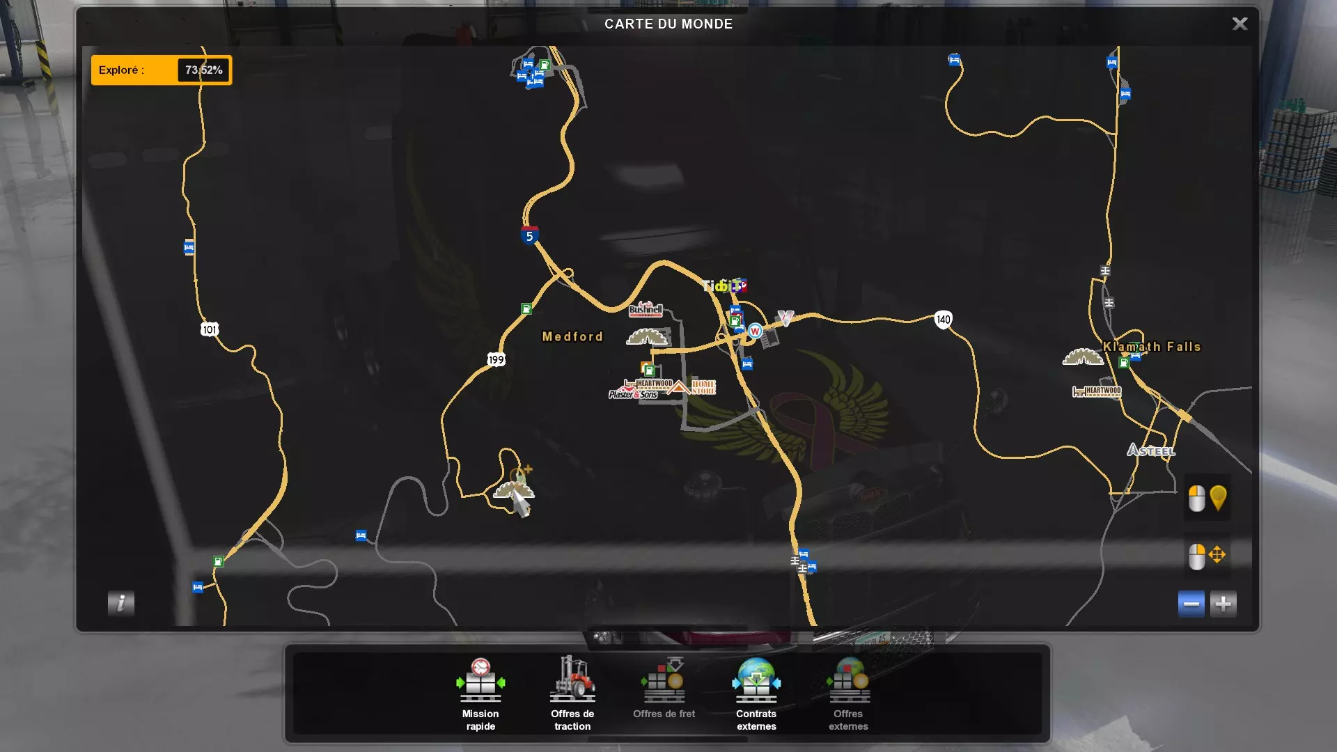 从俄勒冈州的所有木材采伐场运送货物(需要DLC《俄勒冈》) 你需要从这些地点运送货物。以下是你需要提取货物并运往其他地方的五个地点的截图。请注意,如果你在快速任务列表中选择,必须谨慎选择【原木】货物,这才是正确的采伐地点的货物。 第一个地点位于纽波特东部。