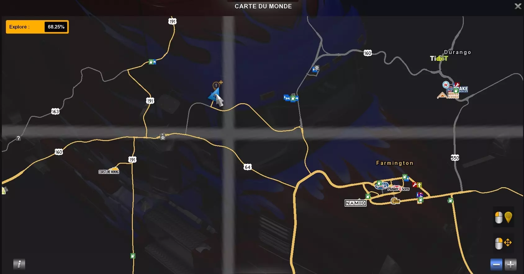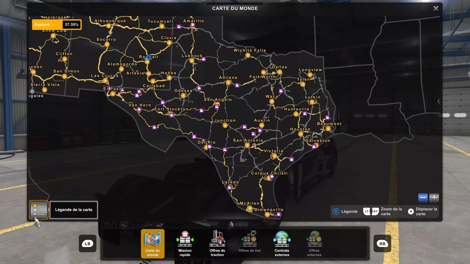 探索新墨西哥州的所有城市(需要【新墨西哥】DLC) 1.盖洛普 2.法明顿 3.阿尔伯克基 4.圣菲 5.拉顿 6.索科罗 7.图克姆卡里 8.克洛维斯 9.罗斯韦尔 10.阿拉莫戈多 11.拉斯克鲁塞斯 12.阿蒂西亚 13.卡尔斯巴德 14.霍布斯 2.休息区之旅
