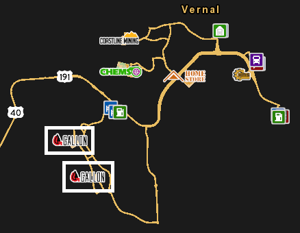 盖洛普 - 城市里的一个大型休息站,在城市右侧,靠近化学公司。 这个休息站最为复杂,很少有人注意到。在霍尔布鲁克市(亚利桑那州)和盖洛普之间,边境附近靠近布什内尔公司的地方有一个休息站。
