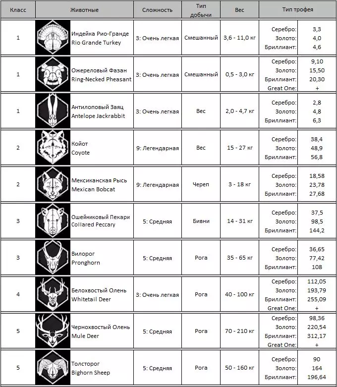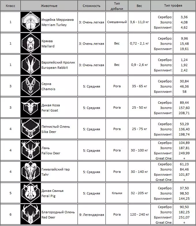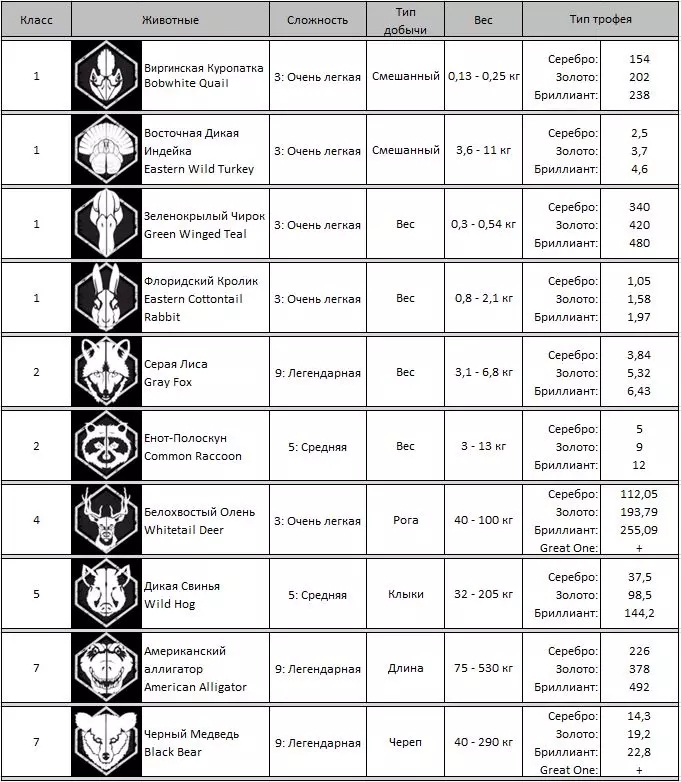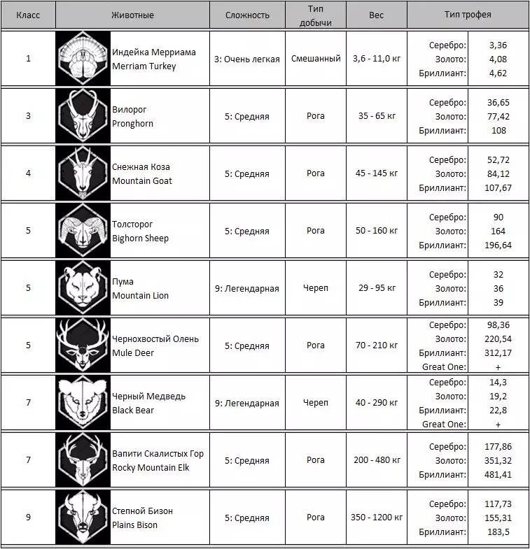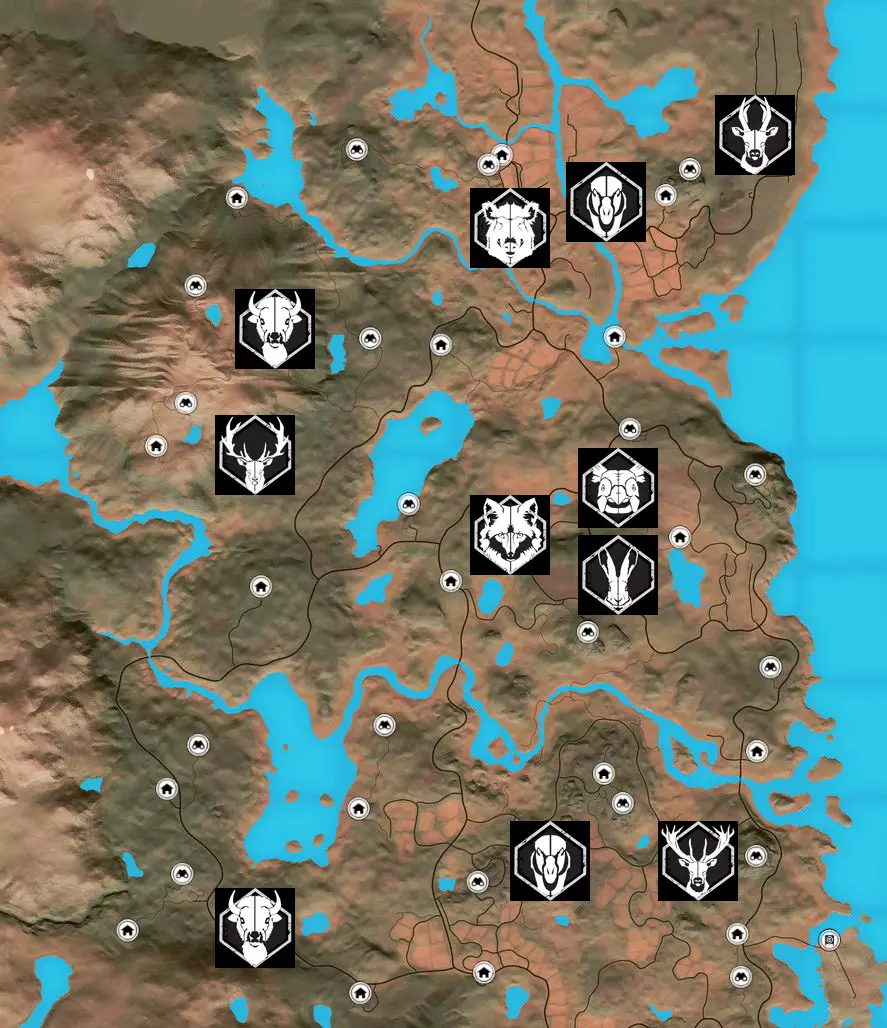 《猎人:野性的呼唤》动物相关全解析 猎人笔记: 【最高等级】:60级 【技能点/专长点上限】:22/22 寻找特定动物的最佳方式是从水源开始。查看地图上的需求时间和水域位置。 需求点可能离岸边相当远。需求区域在击杀4只动物生成压力值后会消失。最好是击杀几只大型动物,等压力值下降后再回来。如果需要击杀更多动物,就需要蹲守。 如何识别钻石级动物: 使用望远镜或带有技能的武器,如果动物的难度是该物种的最高级别,那么99.99%是钻石级。 猎人战术: 在开阔地带从300米距离进行击杀。动物在200米外不会对枪声做出反应。若要进行精准的步枪射击,需要【瞄准】技能和测距仪。例如:任务需要猎杀熊。查看地图上的前哨站和水源。根据时间表将时间快进到熊的饮水时间。比如饮水时间为4:00,到达该时间点并等待。有时动物会直接出现在那里,有时则会在5:00左右出现。可以借助狗搜寻动物并悄悄接近它们; 根据动物的叫声行动。若听到【警告】声,需小心地向动物所在方向潜行;若听到【求偶叫声】,则拿出诱饵将动物引诱至埋伏点。 推荐适用各种情况的武器: 针对1级动物: Virant .22LR步枪(DLC),配合【精准射击】技能,有效射程为50/100/150米; Cacciatore 12G霰弹枪搭配12号霰弹,配合【精准射击】技能,有效射程为25/50/75米; Andersson手枪。22LR(DLC)重量1千克,技能【精准射击】射程25/50/75米; 适用于2-3级: (2-6级)RANGER .243步枪,技能【精准射击】射程75/150/300米; 4-8级 HUDZIK .50步枪配备米涅弹(DLC),技能【精准射击】射程100/150/200米; (4-9级)Regent Magnum 7毫米步枪,技能【精准射击】射程75/150/300米; 9级 (7-9级)RANGEMASTER .338步枪,技能【精准射击】射程75/150/300米; (4-9级)Regent Magnum 7毫米步枪,技能【精准射击】射程75/150/300米。 1. 希尔费尔登