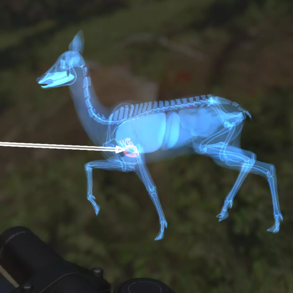 请注意,《猎人:荒野的呼唤》的游戏内容与现实存在差异。请勿将游戏中的有效方法视为现实中的可行做法!请务必参加适当的课程,进行充分研究,并向有经验的人学习。 你的首个猎物将是中型鹿类——在 Hirschfelden 有狍子和黇鹿,在 Layton Lakes 有白尾鹿和黑尾鹿。.243 步枪也适用于在 Layton Lakes 射杀郊狼,以及在 Hirschfelden 射杀马鹿,但这些都已接近该口径子弹有效射程的极限。尤其是马鹿,可能因其过于强壮而难以被可靠击倒。 行为特点 所有动物都十分警惕。经过数百万年的进化和数千年的人类狩猎,它们天生就变得胆小,尤其会惧怕人类。这意味着要想成功射击,你需要非常隐蔽。 当它们在活动时,你会发现它们在需求区附近徘徊、四处寻找配偶,或者只是休息。它们会经常停下来抬头张望。如果你在被它们发现之前先发现了它们,立即蹲下并缓慢移动。 在《猎人:荒野的呼唤》中,它们会对你的视觉、听觉或嗅觉做出反应。一旦它们察觉到你,就会对威胁保持警惕;它们可能会发出警告叫声、开始移动到其他位置,或者直接逃跑。 【动物解剖学】:直击要害