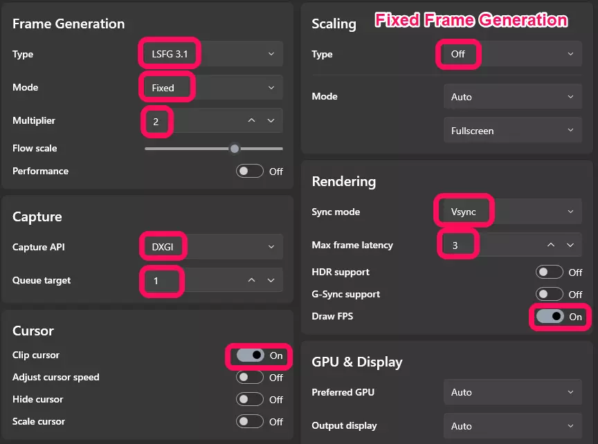 2. 现在你已经在英伟达控制面板中锁定了《巴士模拟2》的帧率,请在Lossless Scaling中使用以下设置。如图所示,我们将倍率设为“2”。这意味着Lossless Scaling会将你的帧率翻倍,所以如果你将《巴士模拟2》锁定在30 FPS,Lossless Scaling会将帧率翻倍至60。如果你将倍率设为3,帧率会提升至90(以此类推)。我建议将其设为“2”,但你也可以随时尝试不同的设置,找到最适合自己的(这适用于Lossless Scaling中的所有设置),毕竟我也不是专家。 【Lossless Scaling的《巴士模拟2》设置(固定帧生成)】