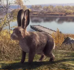(1级)长耳兔:最高等级3 需求区域: - 觅食 - 00:00–6:30、18:00–21:30、21:00–0:30 - 休息 - 6:00–14:30、14:00–18:30 毛皮:灰色、浅棕色、棕色、白化 钻石奖杯分数及最大重量:6.3+ 及 6.8千克(15.1磅) 适用武器: - 步枪:.22LR/H - 手枪:.22LR - 霰弹枪:.410号鸟弹、20号鸟弹、16号鸟弹、12号鸟弹、10号鸟弹 - 弓和弩:300格令、300格令弩箭、350格令 郊狼