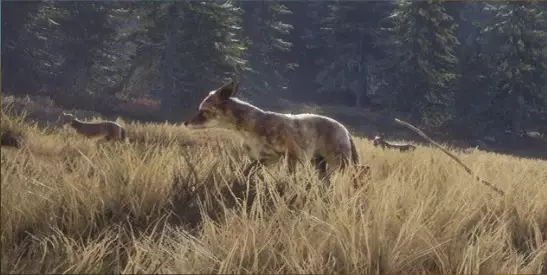 (2级)郊狼:最高等级9 需求区域: 【饮水】- 00:00–4:30 【进食】- 4:00–7:30、17:00–20:30、20:00–0:30 【休息】- 7:00–10:30、10:00–14:30、14:00–17:30 毛皮:橙色、灰棕色、浅灰色、深灰色、花斑、白化、黑化 钻石奖杯分数及最大重量:56.8+ 及 27千克(59磅) 步枪:.22H、.223、.45气步枪、.243、.30-30 手枪:.45柯尔特、.357 霰弹枪:20号鹿弹、16号鹿弹、12号鹿弹 弓与弩:300格令箭、300格令弩箭、350格令箭、420格令箭、420格令弩箭 黑尾鹿