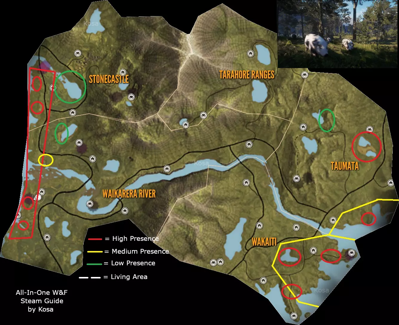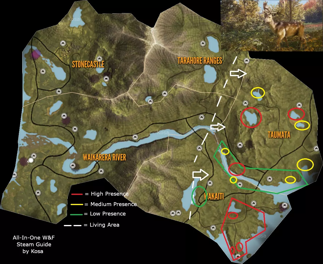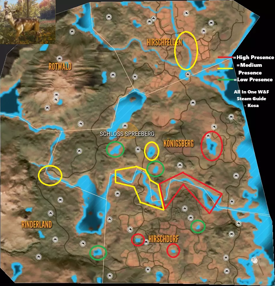 First to use right gun for that animal. Check the list above. Second you can only shoot twice the same animal Third dont shoot at organs like head/brain to avoid antlers, some animals don't have an animal trophy organ. Fourth You should only shoot at vital organs such as lungs/heart Are you new to the game? What DLC to buy? Recommended: Saseka Safari Trophy Lodge or Trophy Lodge Spring Creek Manor Weapon pack 1 For that .22LR and Tents & Ground Blinds Any animal reserve you like, you can check them out in multiplayer for free Any other DLC like High-Tech Hunting Pack if you like to hunt at night or Wild Goose Chase Gear if goose hunting it's your thing.Animals Species per Reserve: In Base Game Hirschfelden Hunting Reserve: 9 Species, 1 unique In Base Game Layton Lake District: 9 Species, 3 unique DLC Medved-Taiga National Park: 8 Species, 2 unique DLC Vurhonga Savanna Reserve: 10 Species, 9 unique DLC Parque Fernando: 8 Species, 1 unique DLC Yukon Valley: 8 Species, 3 unique DLC Cuatro Colinas: 10 Species, 7 unique DLC Silver Ridge Peaks: 9 Species, 2 unique DLC Te Awaroa National Park: 9 Species, 3 unique DLC Rancho del Arroyo: 10 Species, 3 unique DLC Mississippi Acres Preserve: 10 Species, 1 unique DLC Revontuli Coast: 19 Species, 4 unique DLC New England Mountains: 15 Species, 1 unique DLC Emerald Coast: 14 Species, 8 unique DLC Sundarpatan Nepal Hunting Reserve: 13 Species, 9 unique DLC Salzwiesen Park: 15 Species, 2 unique Notes:06/06/2024 - Small tweaks to stats. New reserve on horizon. Will added to the guide in time. 15/07/2023 - Emerald Coast added to the guide, some time zones can be wrong. 16/04/2023 - Made some adjustments and repaired some errors, maps are not updated anymore so i recommend other guides for maps and locations of animals. 06/12/2022 - New reserve added and some new animaals to existing parks. Same guide in other languages: Polish/Polski https://steamcommunity.com/sharedfiles/filedetails/?id=1938981867 ***Armory & Post scriptum*** Rifles: (Class 1) Virant .22LR = .22LR (JHP, Cone) Ammo. How to get: Modern Rifle PackWeapon pack 1 (Class 1) Zarza-15 .22LR = .22LR (TRC, JHP) Ammo. How to get: Modern Rifle Pack (Class 1-2) Kullman.22H = .22H (PT, SP) Ammo. How to get: Mississippi Acres Preserve (Class 2-4) .223 Docent/Zarza = .223 (PT, SP) Ammo. How to get: In Base Game (Class 2-4) Vasquez Cyclone .45 = .45 (RN, HP) Ammo. How to get: Weapon Pack 3 (Class 2-6) Ranger .243 = .243 (PT, SP) Ammo. How to get: In Base Game (Class 2-6) .30-30 Whitlock = .30-30 (SPRN, HP) Ammo. How to get: In Base Game (Class 3-7) Solokhin MN1890 = 7.62x54R (SP) Ammo. How to get: Weapon Pack 2 (Class 3-7 & 4-8) Hudzik .50 Caplock = .50 Round & .50 Minié Ammo. How to get: Smoking Barrels Weapon Pack (Class 4-8) Mårtensson 6.5MM = 6.5 mm (PT, SP) Ammo. How to get: Cuatro Colinas Spoiler: You can get one for free in Cuatro Colinas. Skin: Rayo. Missions by: Don Miguel (Class 4-8) .270 Huntsman = .270 (PT, SP) Ammo. How to get: In Base Game. Note: Everybody get one. Skin: Stradivarius (Class 4-8) Eckers .30-06 & M1 Iwaniec = .30-06 (PT, SP) Ammo. How to get: Weapon pack 3 & Smoking Barrels Weapon Pack (Class 4-8) F.L. Sporter .303 = .303 (PT, SP) Ammo. How to get: Te Awaroa National Park (Class 4-8) Zarza-10/Olsson Model 23 = -308 (PT, SP) Ammo. How to get: (Class 4-9) Coachmate Lever .45-70 = .45-70 (SPFN, HP) Ammo. How to get: In Base Game (Class 4-9) 7mm Regent Magnum/Malmer = 7mm (PT, SP) Ammo. How to get: In Base Game (Class 5-9) Grelck Drilling Gun = 9.3x74R (PT, SP) Ammo. How to get: Weapon Pack 2 Note: Hold R for changin' from rifle to shotgun. Check below in shotgun section for more information. (Class 7-9) .300 Canning Magnum = .300 (PT, SP) Ammo. How to get: Yukon Valley (Class 7-9) Rangemaster 338/Tsurugi LRR = .338 (PT, SP) Ammo. How to get: In Base Game/Hunter Power Pack Spoiler: You can get one for free with Parque Fernando side mission. Skin: Championship. Mission by: Carolina (Stone Circles) (Class 9) King 470DB Zenith = .470 Nitro Express (FMJ, SP) Ammo. How to get: Vurhonga SavannaHandguns: (Class 1) Andersson .22LR = .22LR (JHP, Cone) Ammo. How to get: Weapon Pack 3 (Class 1 & 2-5) Mangiafico 410/45 Colt = .45 Colt Bullet Ammo. How to get: Weapon Pack 2 Note: You can even use it as .410 Birdshot for (Class 1) (Class 2-5) .45 Rolleston = .45 Colt (JHP, FLAT) Ammo. How to get: Assorted Sidearms Pack (Class 2-6) .243 R. Cuomo = .243 (FMJ, SP) Ammo. How to get: Assorted Sidearms Pack (Class 2-6) Focoso 357 = .357 (FNHC, JHP) Ammo. How to get: In Base Game (Class 2-6) 10mm Davani = 10mm (FLAT, HP) Ammo. How to get: Assorted Sidearms Pack (Class 3-8) .44 Panther Magnum = .44 (FNHC, JHP) Ammo. How to get: In Base Game Spoiler: You can get one for free in Parque Fernando. Skin: Gaucho. Missions by: Finish main missions (Class 4-9) Rhino 454 = .454 (HP, HC) Ammo. How to get: In Base GameShotguns:Strecker SxS 20G & Nordin 20SA = 20GA (Bird shot, Buck shot & Slug shot) Ammo. Grelck Drilling Gun = 16GA (Bird shot, Buck shot & Slug shot) Ammo. Caversham Steward 12G & Cacciatore 12G = 12GA (Bird shot, Buck shot & Slug shot) Ammo. How to get: In Base Game Spoiler: You can obtain one Caversham Steward 12G in Medved Taiga main mission. Skin: Grankin's. Mission by: Complete main storyline In Medved Taiga Couso Model 1897 = 16GA (Bird shot, Buck shot & Slug shot) Ammo. You can get one for free in Rancho del Arroyo. Mission by: Complete main storyline In Rancho del Arroyo. Miller Model 1891 = Brass 10GA (Bird shot, Buck shot & Slug shot) Ammo.Bow & Crossbow: Razorblack Lite CB-60, Bearclaw Lite CB-60, Hawk Edge CB-70 & Koter CB-65 Bow = (300gr, 420gr & 600gr) Ammo. Houyi Recurve Bow = (350gr, 540gr & 700gr) Ammo. How to get: Weapon Pack 1 Alexander Longbow = (350gr, 540gr & 700gr) Ammo. How to get: Silver Ridge Peaks Crosspoint CB-165 = (300gr Bolt, 420gr Bolt & 600gr Bolt) Ammo. How to get: Weapon Pack 1 Post scriptum: If you think something is missing or like to see, comment below.