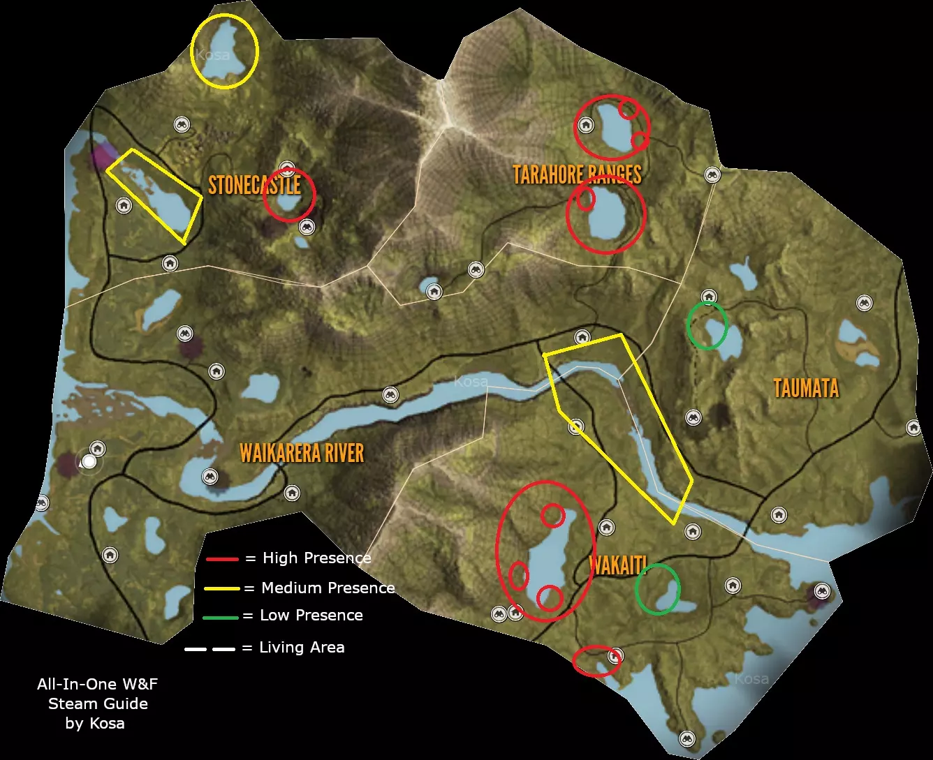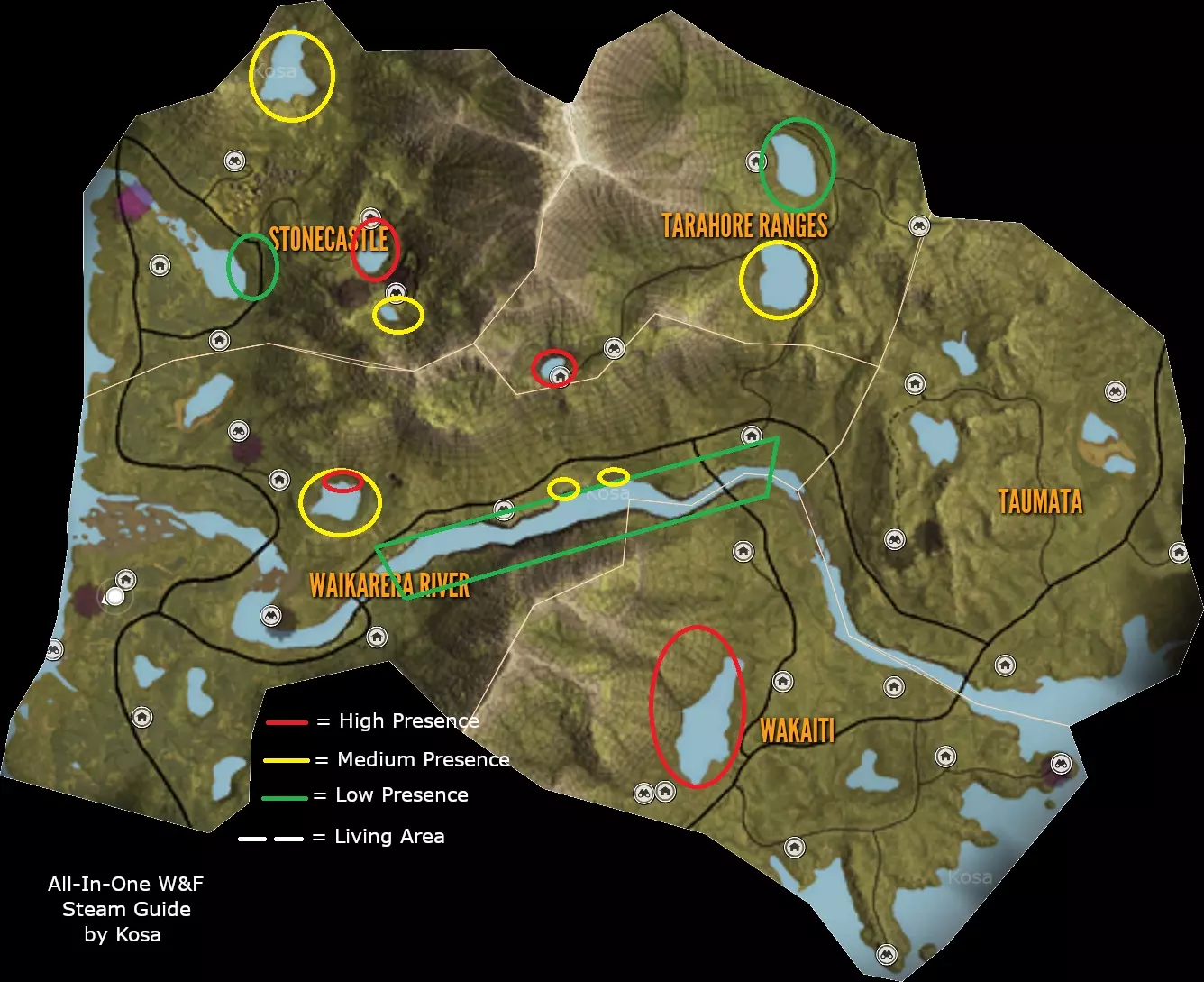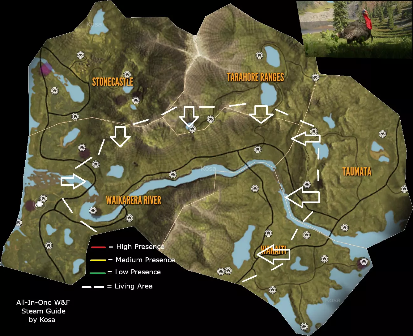 First to use right gun for that animal. Check the list above. Second you can only shoot twice the same animal Third dont shoot at organs like head/brain to avoid antlers, some animals don't have an animal trophy organ. Fourth You should only shoot at vital organs such as lungs/heart Are you new to the game? What DLC to buy? Recommended: Saseka Safari Trophy Lodge or Trophy Lodge Spring Creek Manor Weapon pack 1 For that .22LR and Tents & Ground Blinds Any animal reserve you like, you can check them out in multiplayer for free Any other DLC like High-Tech Hunting Pack if you like to hunt at night or Wild Goose Chase Gear if goose hunting it's your thing.Animals Species per Reserve: In Base Game Hirschfelden Hunting Reserve: 9 Species, 1 unique In Base Game Layton Lake District: 9 Species, 3 unique DLC Medved-Taiga National Park: 8 Species, 2 unique DLC Vurhonga Savanna Reserve: 10 Species, 9 unique DLC Parque Fernando: 8 Species, 1 unique DLC Yukon Valley: 8 Species, 3 unique DLC Cuatro Colinas: 10 Species, 7 unique DLC Silver Ridge Peaks: 9 Species, 2 unique DLC Te Awaroa National Park: 9 Species, 3 unique DLC Rancho del Arroyo: 10 Species, 3 unique DLC Mississippi Acres Preserve: 10 Species, 1 unique DLC Revontuli Coast: 19 Species, 4 unique DLC New England Mountains: 15 Species, 1 unique DLC Emerald Coast: 14 Species, 8 unique DLC Sundarpatan Nepal Hunting Reserve: 13 Species, 9 unique DLC Salzwiesen Park: 15 Species, 2 unique Notes:06/06/2024 - Small tweaks to stats. New reserve on horizon. Will added to the guide in time. 15/07/2023 - Emerald Coast added to the guide, some time zones can be wrong. 16/04/2023 - Made some adjustments and repaired some errors, maps are not updated anymore so i recommend other guides for maps and locations of animals. 06/12/2022 - New reserve added and some new animaals to existing parks. Same guide in other languages: Polish/Polski https://steamcommunity.com/sharedfiles/filedetails/?id=1938981867 ***Armory & Post scriptum*** Rifles: (Class 1) Virant .22LR = .22LR (JHP, Cone) Ammo. How to get: Modern Rifle PackWeapon pack 1 (Class 1) Zarza-15 .22LR = .22LR (TRC, JHP) Ammo. How to get: Modern Rifle Pack (Class 1-2) Kullman.22H = .22H (PT, SP) Ammo. How to get: Mississippi Acres Preserve (Class 2-4) .223 Docent/Zarza = .223 (PT, SP) Ammo. How to get: In Base Game (Class 2-4) Vasquez Cyclone .45 = .45 (RN, HP) Ammo. How to get: Weapon Pack 3 (Class 2-6) Ranger .243 = .243 (PT, SP) Ammo. How to get: In Base Game (Class 2-6) .30-30 Whitlock = .30-30 (SPRN, HP) Ammo. How to get: In Base Game (Class 3-7) Solokhin MN1890 = 7.62x54R (SP) Ammo. How to get: Weapon Pack 2 (Class 3-7 & 4-8) Hudzik .50 Caplock = .50 Round & .50 Minié Ammo. How to get: Smoking Barrels Weapon Pack (Class 4-8) Mårtensson 6.5MM = 6.5 mm (PT, SP) Ammo. How to get: Cuatro Colinas Spoiler: You can get one for free in Cuatro Colinas. Skin: Rayo. Missions by: Don Miguel (Class 4-8) .270 Huntsman = .270 (PT, SP) Ammo. How to get: In Base Game. Note: Everybody get one. Skin: Stradivarius (Class 4-8) Eckers .30-06 & M1 Iwaniec = .30-06 (PT, SP) Ammo. How to get: Weapon pack 3 & Smoking Barrels Weapon Pack (Class 4-8) F.L. Sporter .303 = .303 (PT, SP) Ammo. How to get: Te Awaroa National Park (Class 4-8) Zarza-10/Olsson Model 23 = -308 (PT, SP) Ammo. How to get: (Class 4-9) Coachmate Lever .45-70 = .45-70 (SPFN, HP) Ammo. How to get: In Base Game (Class 4-9) 7mm Regent Magnum/Malmer = 7mm (PT, SP) Ammo. How to get: In Base Game (Class 5-9) Grelck Drilling Gun = 9.3x74R (PT, SP) Ammo. How to get: Weapon Pack 2 Note: Hold R for changin' from rifle to shotgun. Check below in shotgun section for more information. (Class 7-9) .300 Canning Magnum = .300 (PT, SP) Ammo. How to get: Yukon Valley (Class 7-9) Rangemaster 338/Tsurugi LRR = .338 (PT, SP) Ammo. How to get: In Base Game/Hunter Power Pack Spoiler: You can get one for free with Parque Fernando side mission. Skin: Championship. Mission by: Carolina (Stone Circles) (Class 9) King 470DB Zenith = .470 Nitro Express (FMJ, SP) Ammo. How to get: Vurhonga SavannaHandguns: (Class 1) Andersson .22LR = .22LR (JHP, Cone) Ammo. How to get: Weapon Pack 3 (Class 1 & 2-5) Mangiafico 410/45 Colt = .45 Colt Bullet Ammo. How to get: Weapon Pack 2 Note: You can even use it as .410 Birdshot for (Class 1) (Class 2-5) .45 Rolleston = .45 Colt (JHP, FLAT) Ammo. How to get: Assorted Sidearms Pack (Class 2-6) .243 R. Cuomo = .243 (FMJ, SP) Ammo. How to get: Assorted Sidearms Pack (Class 2-6) Focoso 357 = .357 (FNHC, JHP) Ammo. How to get: In Base Game (Class 2-6) 10mm Davani = 10mm (FLAT, HP) Ammo. How to get: Assorted Sidearms Pack (Class 3-8) .44 Panther Magnum = .44 (FNHC, JHP) Ammo. How to get: In Base Game Spoiler: You can get one for free in Parque Fernando. Skin: Gaucho. Missions by: Finish main missions (Class 4-9) Rhino 454 = .454 (HP, HC) Ammo. How to get: In Base GameShotguns:Strecker SxS 20G & Nordin 20SA = 20GA (Bird shot, Buck shot & Slug shot) Ammo. Grelck Drilling Gun = 16GA (Bird shot, Buck shot & Slug shot) Ammo. Caversham Steward 12G & Cacciatore 12G = 12GA (Bird shot, Buck shot & Slug shot) Ammo. How to get: In Base Game Spoiler: You can obtain one Caversham Steward 12G in Medved Taiga main mission. Skin: Grankin's. Mission by: Complete main storyline In Medved Taiga Couso Model 1897 = 16GA (Bird shot, Buck shot & Slug shot) Ammo. You can get one for free in Rancho del Arroyo. Mission by: Complete main storyline In Rancho del Arroyo. Miller Model 1891 = Brass 10GA (Bird shot, Buck shot & Slug shot) Ammo.Bow & Crossbow: Razorblack Lite CB-60, Bearclaw Lite CB-60, Hawk Edge CB-70 & Koter CB-65 Bow = (300gr, 420gr & 600gr) Ammo. Houyi Recurve Bow = (350gr, 540gr & 700gr) Ammo. How to get: Weapon Pack 1 Alexander Longbow = (350gr, 540gr & 700gr) Ammo. How to get: Silver Ridge Peaks Crosspoint CB-165 = (300gr Bolt, 420gr Bolt & 600gr Bolt) Ammo. How to get: Weapon Pack 1 Post scriptum: If you think something is missing or like to see, comment below.