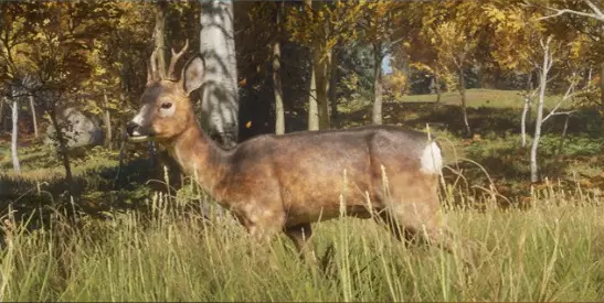 【4级】黑尾鹿:最大等级5级(TruRACS评分系统) 需求区域时间: - 饮水:16:00–20:30 - 觅食:4:00–8:30、12:00–16:30 - 休息:0:00–4:30、8:00–12:30、20:00–0:30 毛皮颜色:灰色、棕褐色、深灰色、灰棕色、花斑色、白化色、黑色 钻石奖杯分数及最大重量:177.5+分、95公斤(209磅) 适用步枪:.223、.45气步枪、.243、.30-30、.303、.308、.50、7.62x54R、6.5毫米、.270、45-70、30-06、7毫米 适用手枪:.45柯尔特、.357、.44、.454 适用霰弹枪:16号鹿弹、12号鹿弹、20号独头弹、16号独头弹、12号独头弹、10号鹿弹 适用弓与弩:420格令箭、420格令弩箭、540格令箭 白尾鹿★