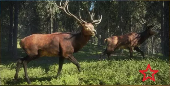 8级罗斯福马鹿:最大等级5级(真实动物评分系统) 需求区域: 饮水 - 4:00–8:30 觅食 - 8:00–12:30及16:00–20:30 休息 - 0:00–4:30、12:00–16:30及20:00–0:30 毛皮:橙色、棕色、棕褐色、花斑、白化、黑化 钻石奖杯分数及最大重量:380.8+及500千克(1102磅) 步枪:6.5毫米、.270、45-70、.303、.308、.50米尼弹、30-06、7毫米、9.3×74R、.300、.338 手枪:.44、.454 霰弹枪:12号霰弹、10号霰弹 弓和弩:600格令、600格令弩箭、700格令 驼鹿★