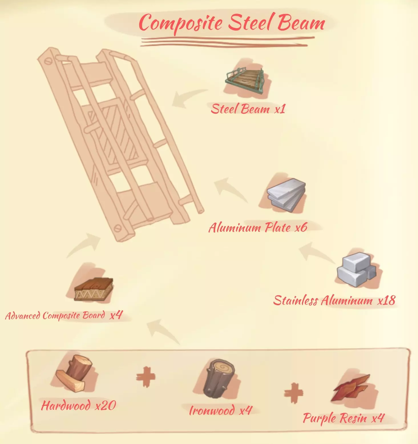 铁树支架(Iron wood support):5个铁树木板,2个钢框架,2个木柱。