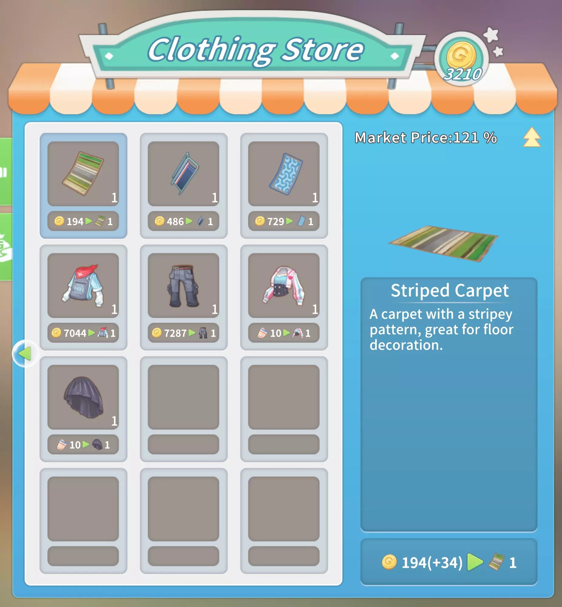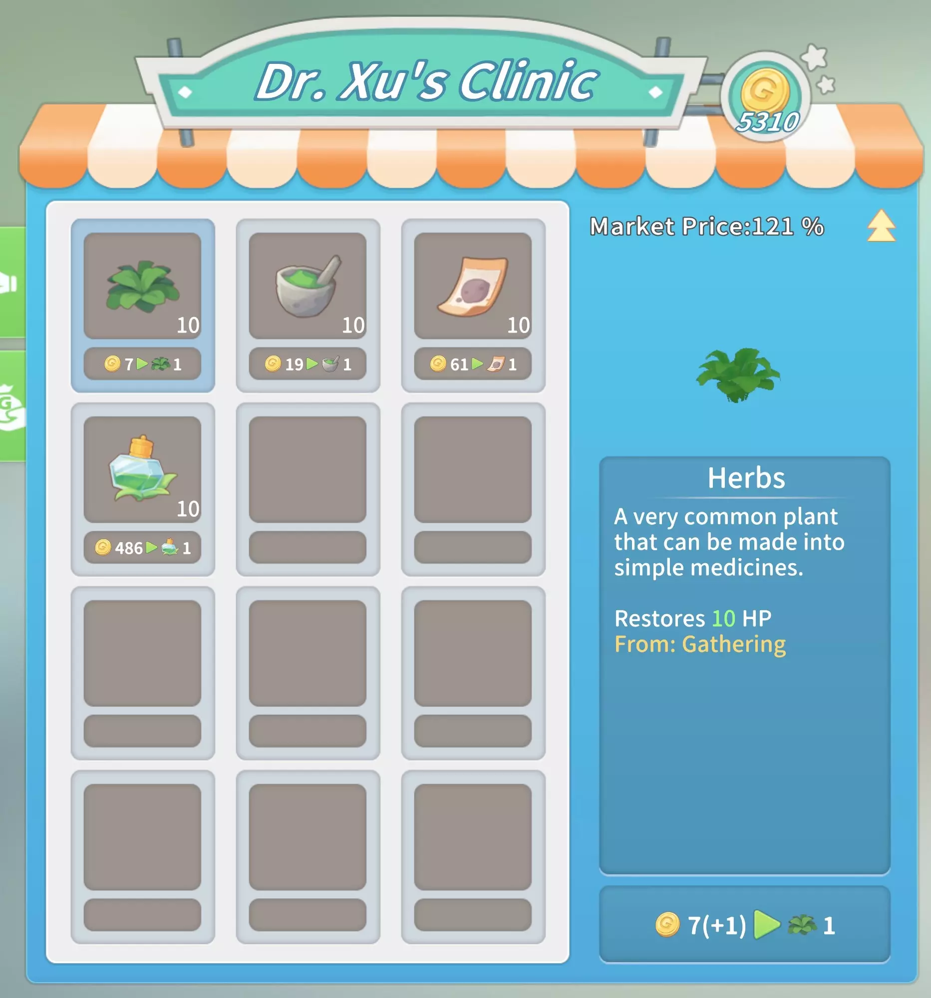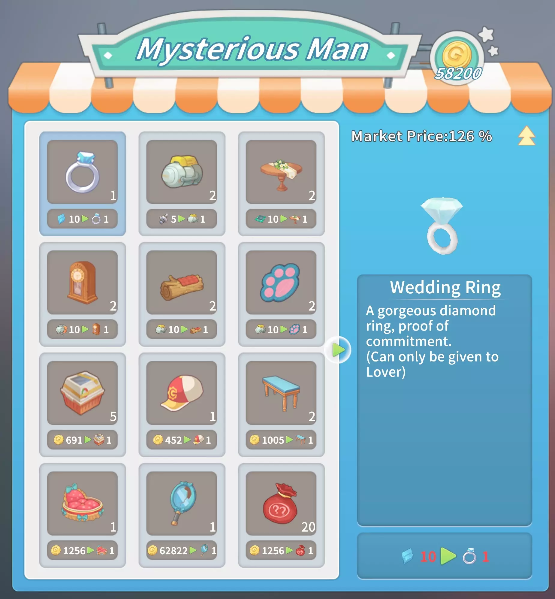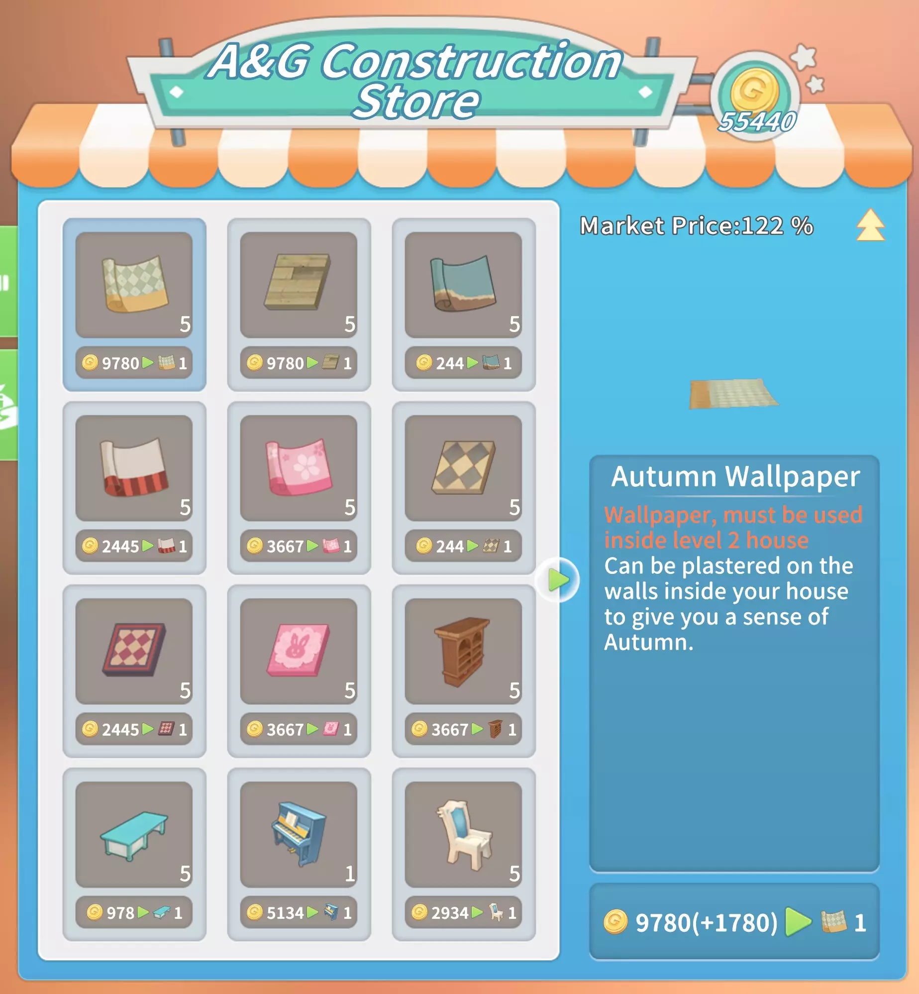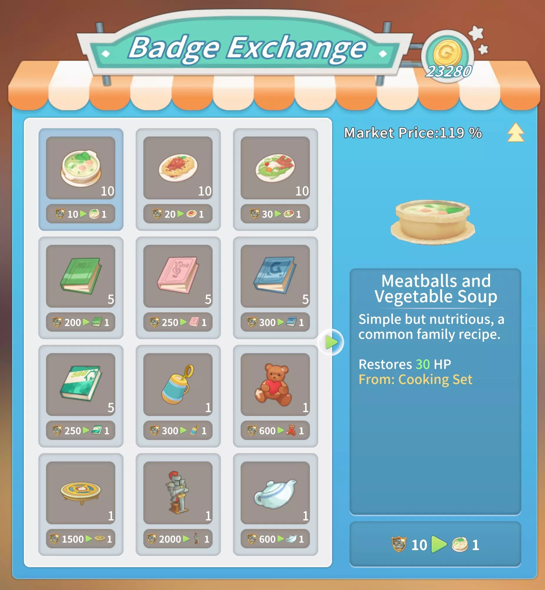 马厩:20块铁锭,20块石砖,5000金币。 石门:10块坚固木板,2根石柱,5份树脂,1000金币。 大理石门:2个大理石栅栏2,10块大理石板,10块硬化黏土,2500金币。 石栅栏:10根石柱,2个石栅栏,25根石栏杆,4000金币。 大理石栅栏:10个大理石栅栏1,2个大理石栅栏2,25个大理石栅栏3,8000金币。工厂(需建造海港后解锁):20个铝塑板,20块复合木板,2台现代发动机,50000金币。 交易 教堂商店(位于山上的教堂内,每周四在中央喷泉处)