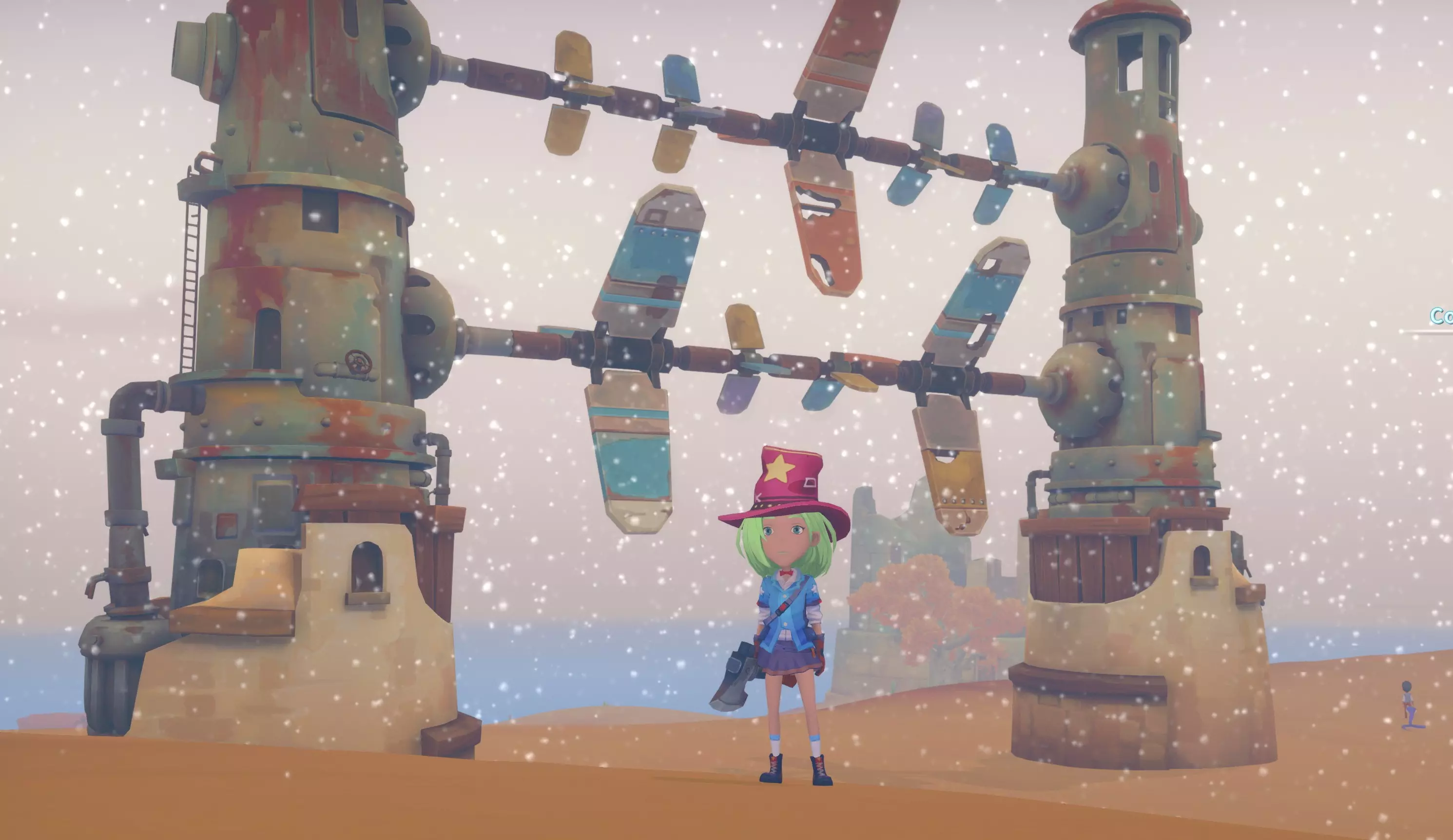 进程已经无法停止,伙伴们让你制造一台钻井机,之后还要建造一座新城市,安装水塔和充电站。此外,还会有其他改进的订单。达瓦会要求制作6个隔离菜园,在菜园建成几天后,他会提供制作沙制花束机的图纸和木材。制作6个花束机并将它们放置在沙漠中。完成后会发现无法从波尔蒂(Portia)那里获得新城市的补给,所以必须建造风车。去找彼得,给他五个磁盘,但彼得无法立即解决问题,你需要先去找护士菲利斯,然后再去教堂找诺拉。之后就能获得图纸。需要建造三个风车,这是一项艰巨的任务,而且风车本身看起来也很壮观。