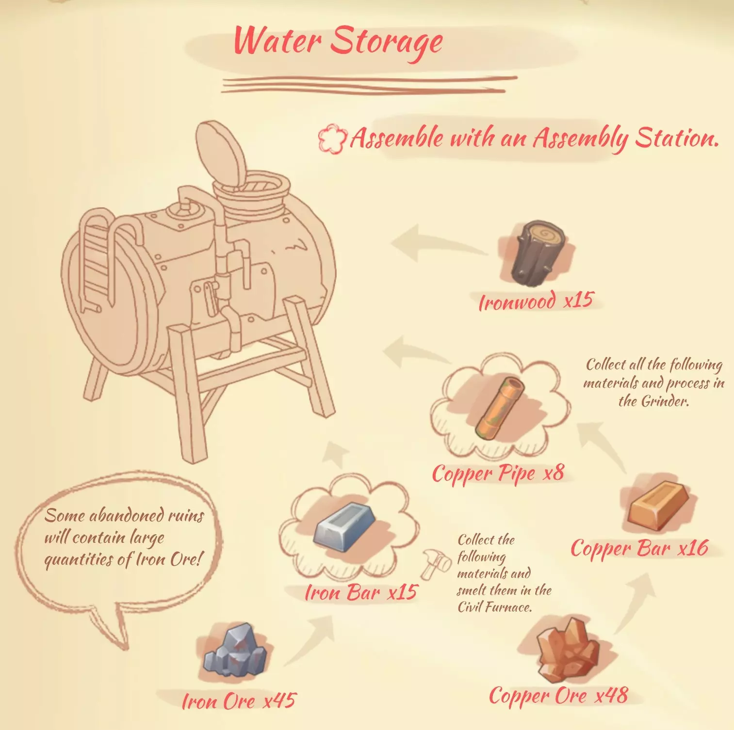 储水装置(Water Storage):15个铁树,8个铜管,15个铁锭。