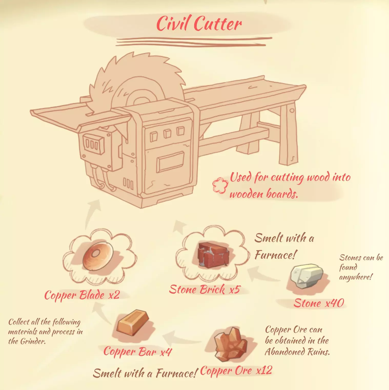 圆锯(Civil Cutter):2个铜刀片,5块石砖