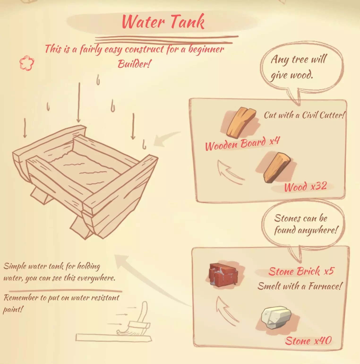 储水箱:4块木板,5块石砖