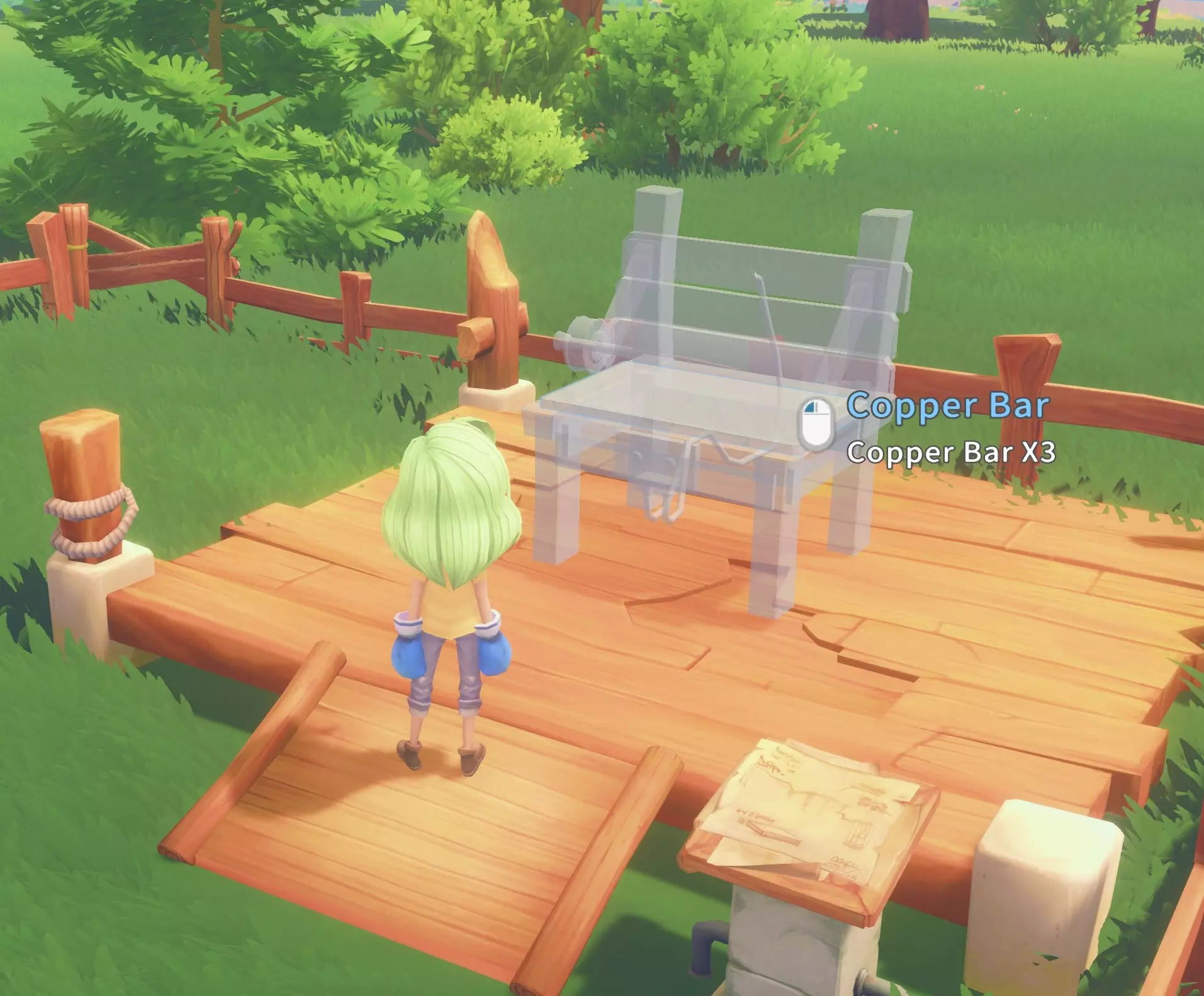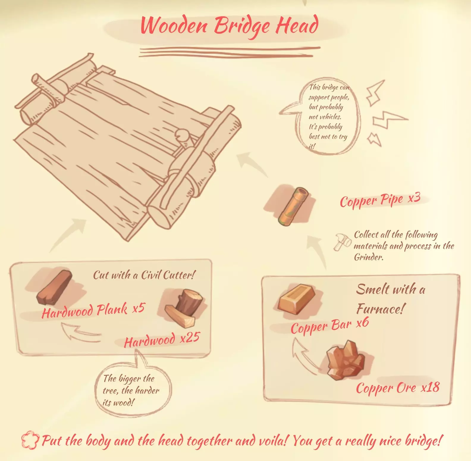 建造木桥桥头:5块硬木板,3根铜管
