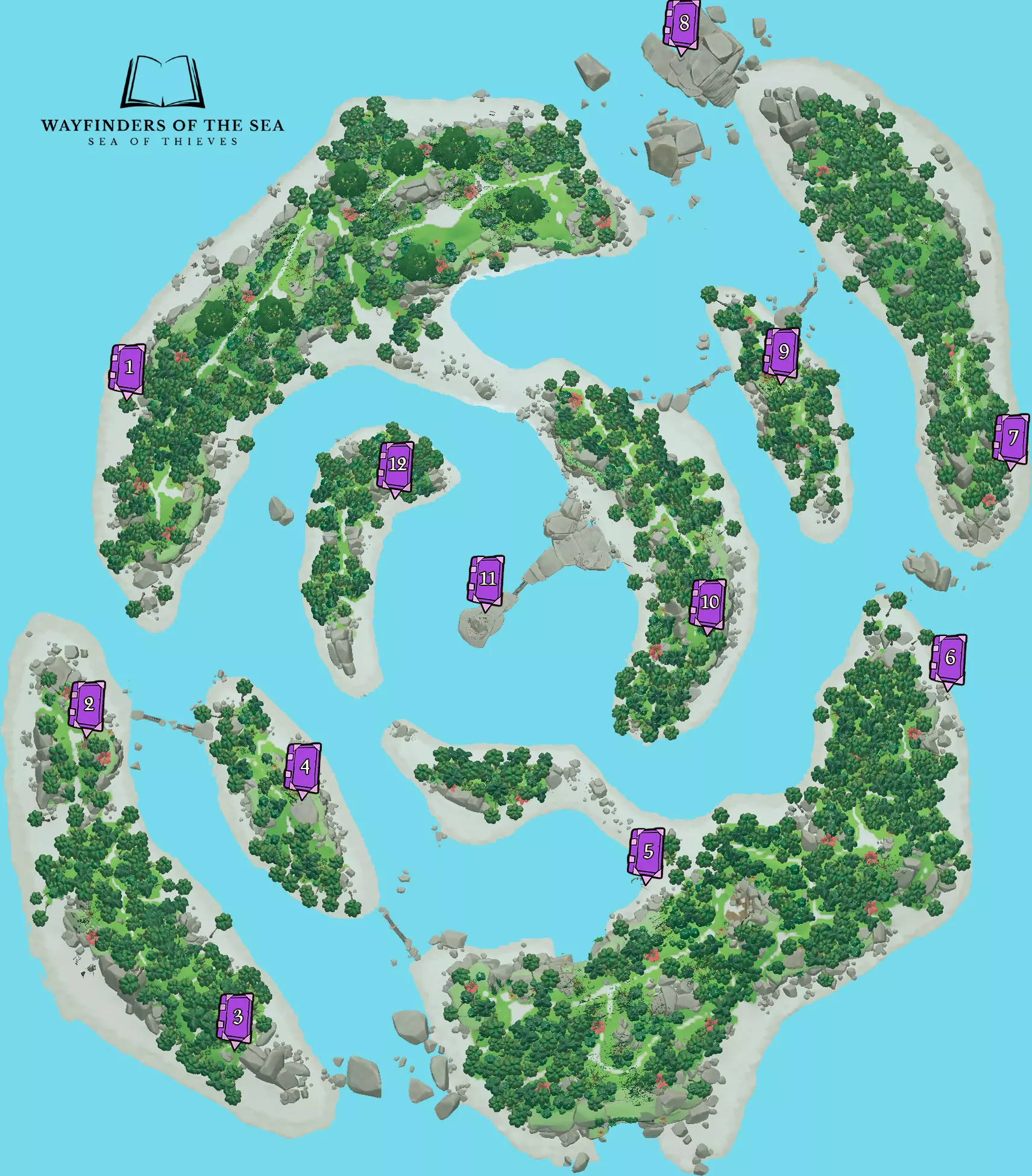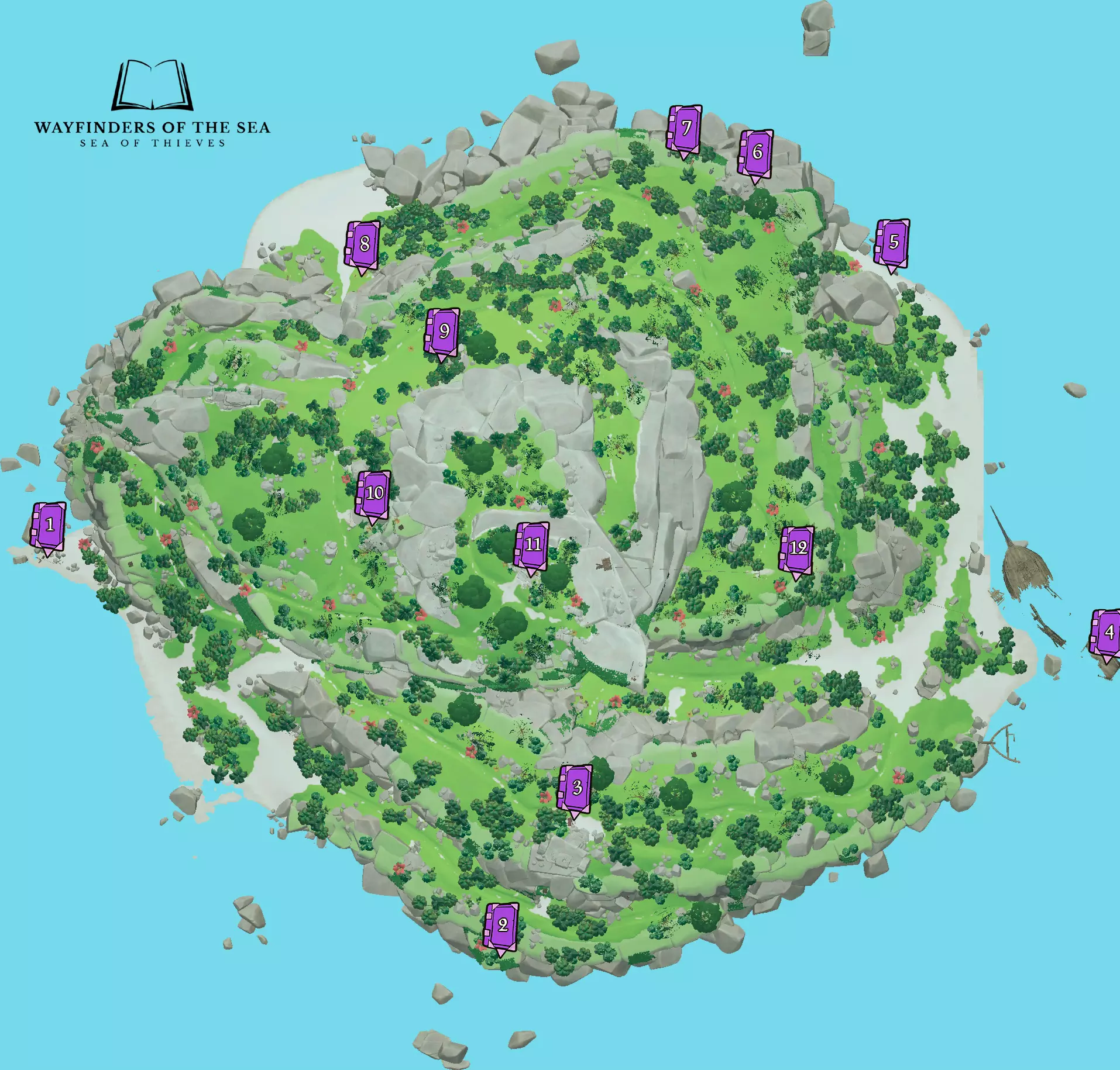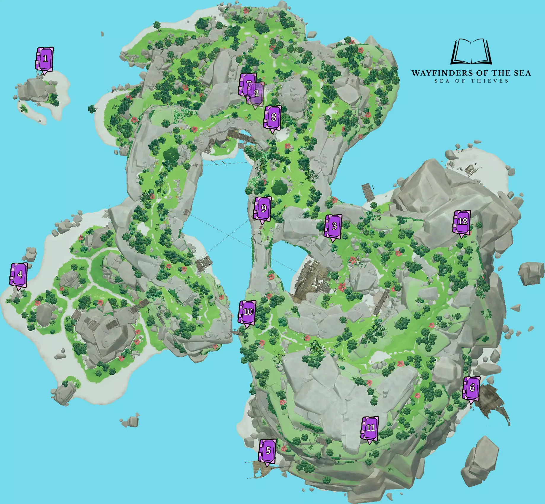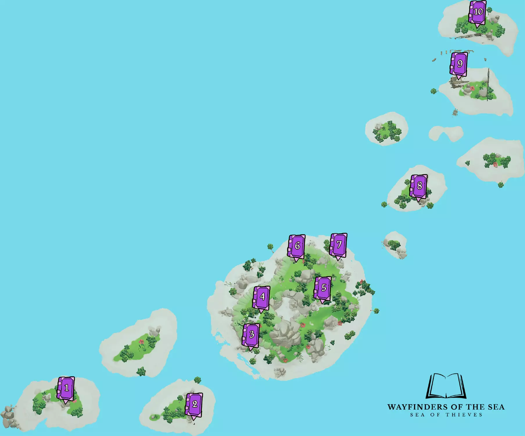 RU: Расположение всех Таинственных Журналов. Полезно для тех, кто хочет закрыть достижения компании "Торговый Союз" по доставке ящиков с ядрами, досками, фруктами, а также бочек с порохом. EN: Location of all the Mysterious Journals. Useful for those, who want to complete Merchant Alliance commendations for delivering cannonball, wood, fruit crates and gunpowder barrels. Общая информация / General info RU: Таинственные журналы — это розовые книжки, которые появляются только на больших островах в определённых, так называемых "местах интереса" (на бочках или рядом с ними, в разбитых ящиках, неподалёку от островных рисунков, костров, ящиков с патронами и т.п.). Есть 2 разновидности журналов: дающие квест ("квестовые"), которые делятся на 3 вида по типу квестов (Златодержцы - карты с метками и загадки, Орден Душ - контракты на убийство скелетов-капитанов и команд, Торговый Союз - доставка ящиков с провизией и бочек с порохом) и "сказочные" (журналы, которые содержат в себе небольшую песенку или историю, никаких квестов не дают). У квестовых журналов общее название - "Таинственный Журнал", тогда как у каждого сказочного своё индивидуальное название. по которому их легко отличить при нахождении. Второй вид журналов не несёт никакой практической функции, поэтому далее нам они не интересны. Всего существует 23 вариации журналов: 7 для Златодержцев, 9 для Ордена Душ, 2 для Торговцев и 6 сказок. К каждой из этой вариации соотносится свой текст журнала, по которому можно определить его содержание ещё до того, как Вы его прочитаете до конца. На последней странице квестовых журналов также присутствует кнопка, которая, собственно, выдаёт тот или иной квест. На ней есть надпись, по которой можно определить, какой квест Вам дадут: "Мистическая карта" - текст для квестов Златодержцев; "Мистическая награда" - текст для квестов Ордена Душ; "Мистический контракт" - текст для квестов Торгового Союза. Примечание 1: журнал под названием "Байки боцмана Билла" является квестовым журналом для Златодержцев. Примечание 2: Таинственные журналы содержат в себе квесты "старого типа", так как не подверглись переработкам квестов 11 сезона. Это означает, что весь лут с этих квестов будет НЕ КОРОЛЕВСКИМ (старые сундуки и черепа, которые нужны для свершений Златодержцев и Ордена Душ). EN: Mysterious journals are pink books that appear only on large islands in certain, so-called "points of interest" (on or near barrels, in broken boxes, near island paintings, fires, ammo boxes etc.). There are 2 types of journals: those that give a quest ("quest" ones), which are divided into 3 types by the type of quest (Gold Hoarders – X Marks the Spot maps and riddles, Order of Souls – bounty quests for killing skeleton captains and crews, Merchant Alliance - delivery of supply crates and gunpowder barrels) and "Tall Tale" once (journals that contain a short song or story, do not give any quests). Quest journals have a common name - "Mysterious Journal", while each Tall Tale one has its own individual name, by which they are easy to distinguish when found. The second type of journals does not serve any practical purpose, so we are not interested in them further. There are 23 variations of journals: 7 for Gold Hoarders, 9 for Order of Souls, 2 for the Merchant Alliance, and 6 Tall Tales. Each of these variations has its own journal text, by which you can determine its contents even before you read it to the end. On the last page of the quest journals there is also a button that gives out a particular quest. It has a description by which you can determine the quest you will be given: "Mysterious Map" - text for Gold Hoarder X Marks the Spot maps and riddles; "Mysterious Bounty" - text for Order of Souls bounty quests; "Mysterious Contract" - text for the Merchant Alliance deliveries. Note 1: the journal called "Tales of Bosun Bill" is a quest journal for Gold Hoarders. Note 2: Mysterious Journals contain "old" quests, as they have not been reworked in Season 11. This means that all loot from these quests will be NON-KINGLY (old chests and skulls, which are needed for Gold Hoarders and Order of Souls commendations). Важная информация / Important Info RU: Спавн журналов не гарантирован! Для одного корабля на острове может 