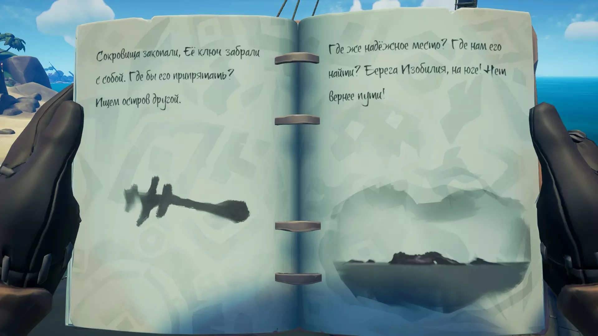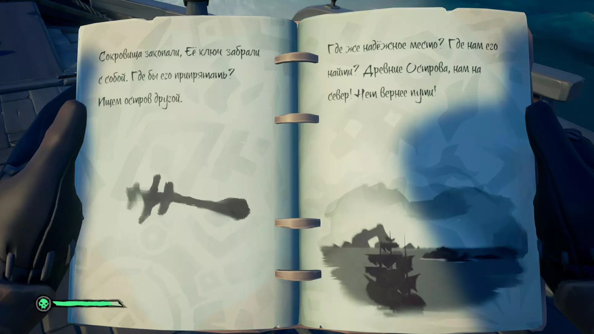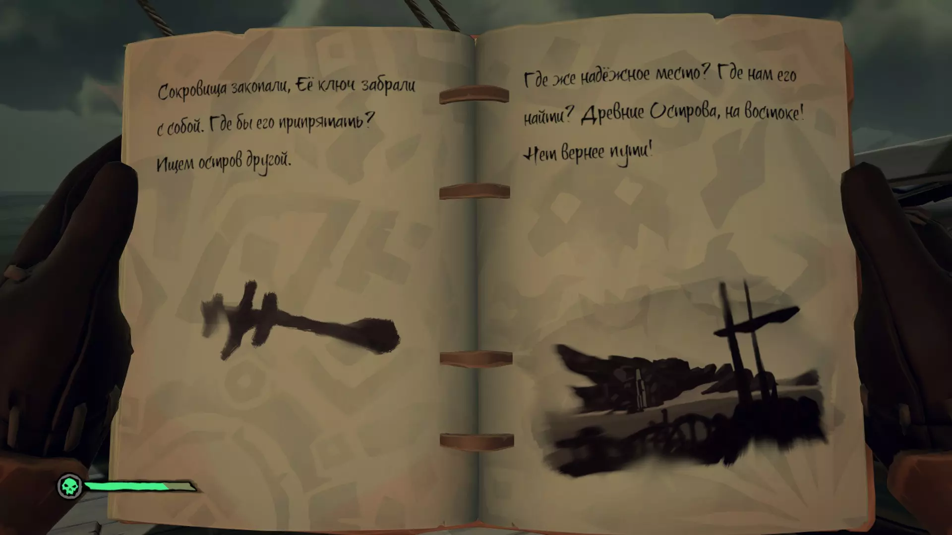 在对话过程中,我们了解到一位名叫布里格斯的昔日勇猛的冒险寻宝者,她不知为何获得了“帷幕撕裂者”。但命运对她并不眷顾,如今她已沦为邪恶的产物。无论如何,奥利维亚夫人并不知道布里格斯本人身在何处,但她给了我们一本名为【遗忘生命编年史】的书,其中记载着布里格斯旧团队的一些零散回忆。起锚出发!骸骨钥匙 这本书中总是包含两段记忆。第一段记忆会指引我们找到钥匙,第二段则会指引我们找到宝箱。搜索顺序没有任何区别,你可以先找钥匙,也可以先找宝箱。选择你觉得方便的路线即可。