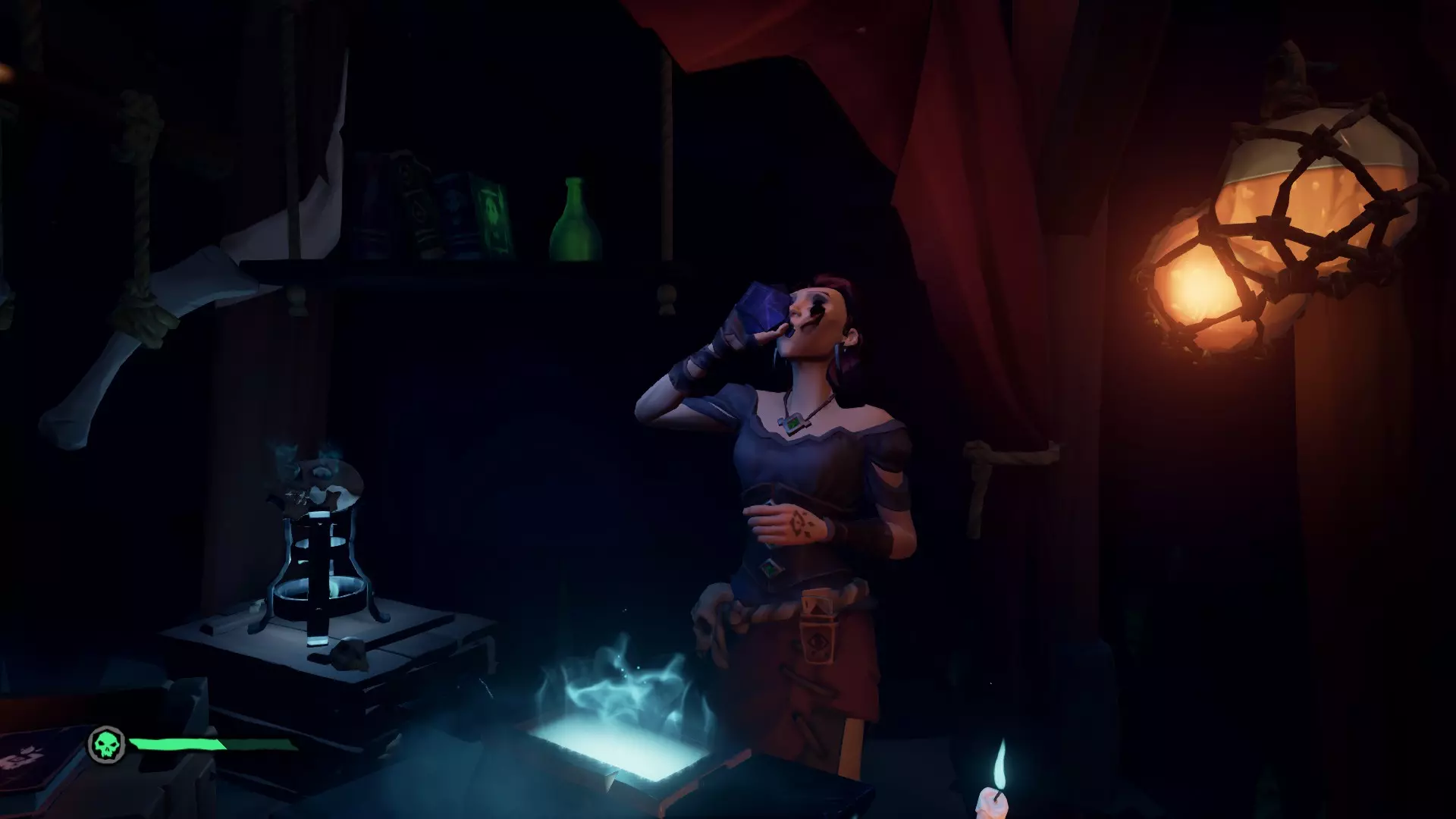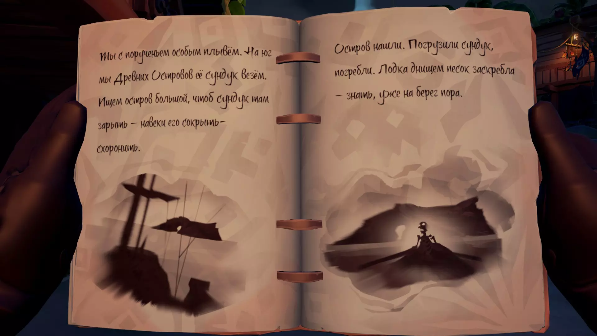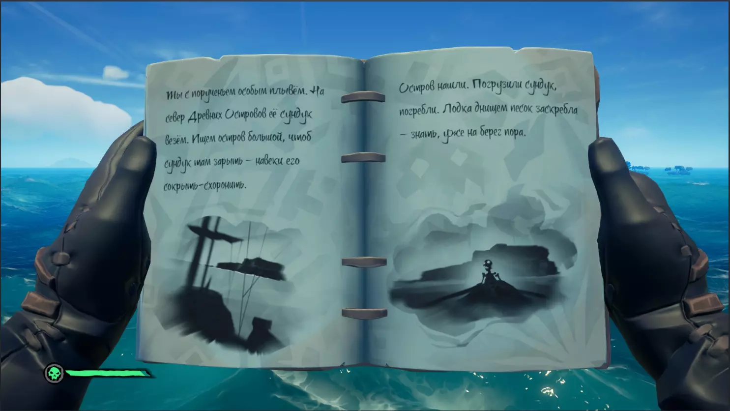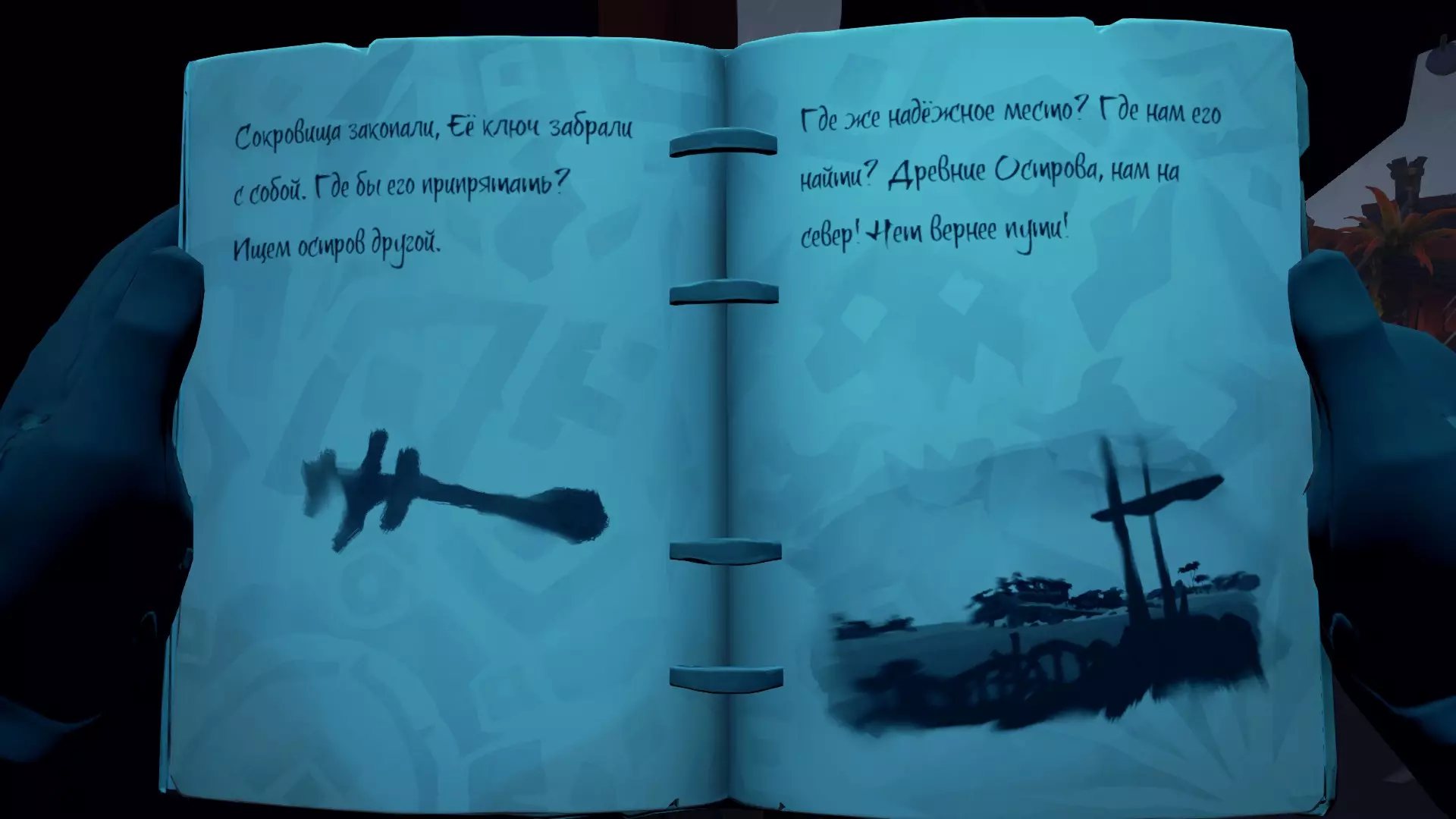 在对话过程中,我们了解到一位名叫布里格斯的昔日勇猛的冒险寻宝者,她不知为何获得了“帷幕撕裂者”。但命运对她并不眷顾,如今她已沦为邪恶的产物。无论如何,奥利维亚夫人并不知道布里格斯本人身在何处,但她给了我们一本名为【遗忘生命编年史】的书,其中记载着布里格斯旧团队的一些零散回忆。起锚出发!骸骨钥匙 这本书中总是包含两段记忆。第一段记忆会指引我们找到钥匙,第二段则会指引我们找到宝箱。搜索顺序没有任何区别,你可以先找钥匙,也可以先找宝箱。选择你觉得方便的路线即可。