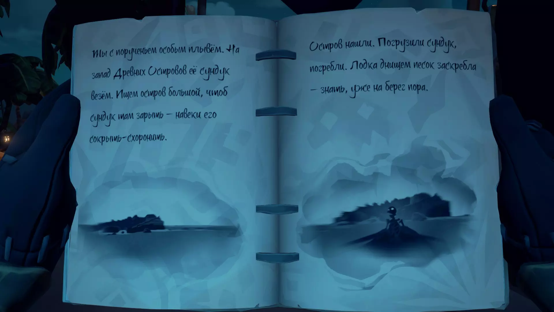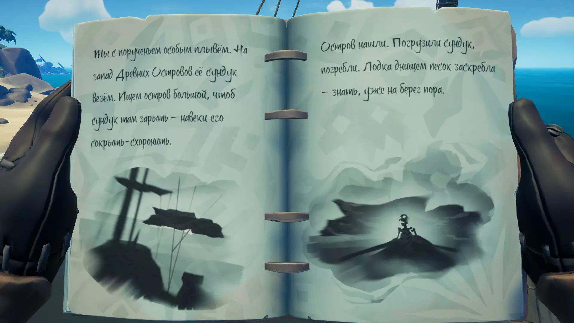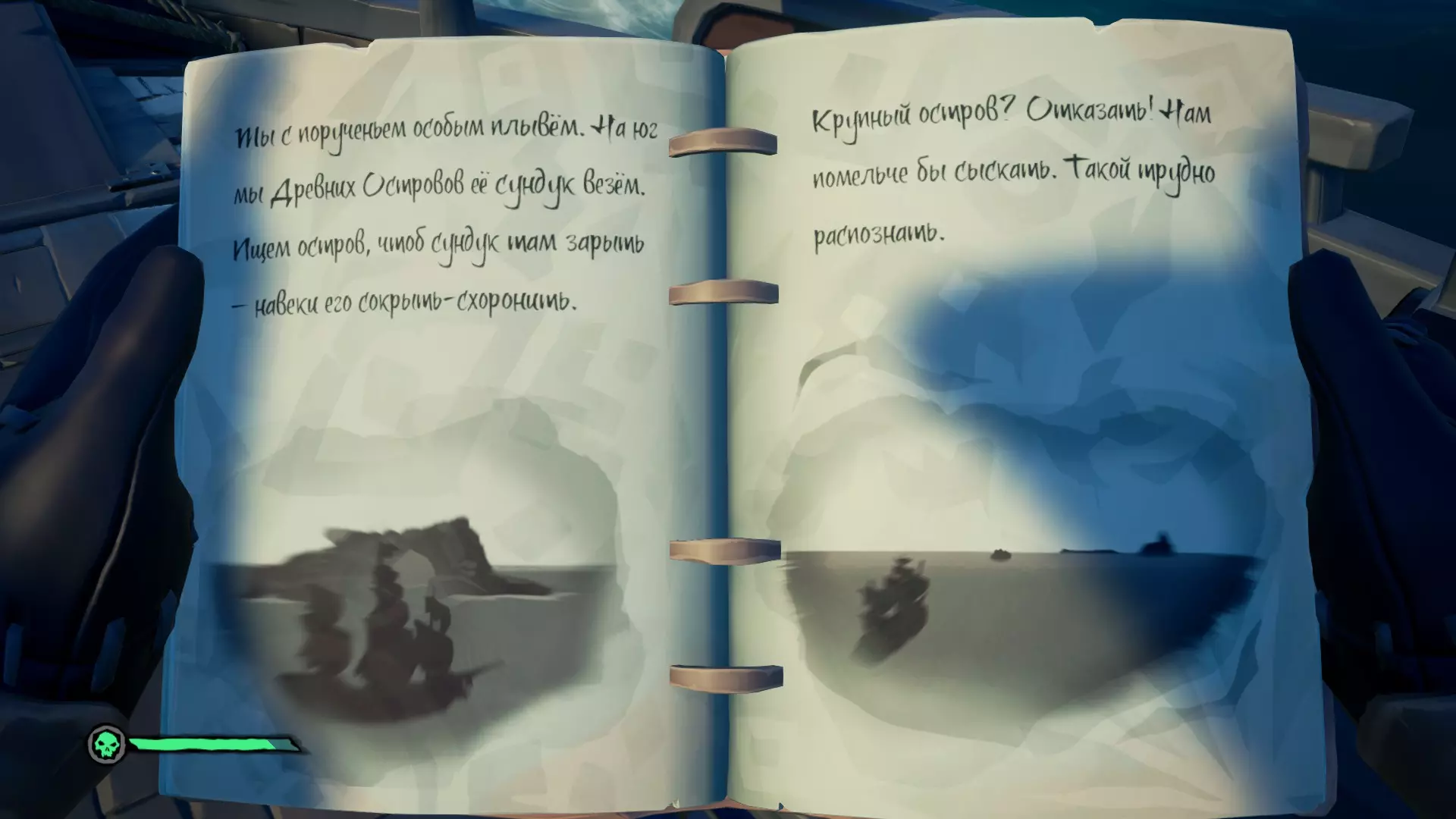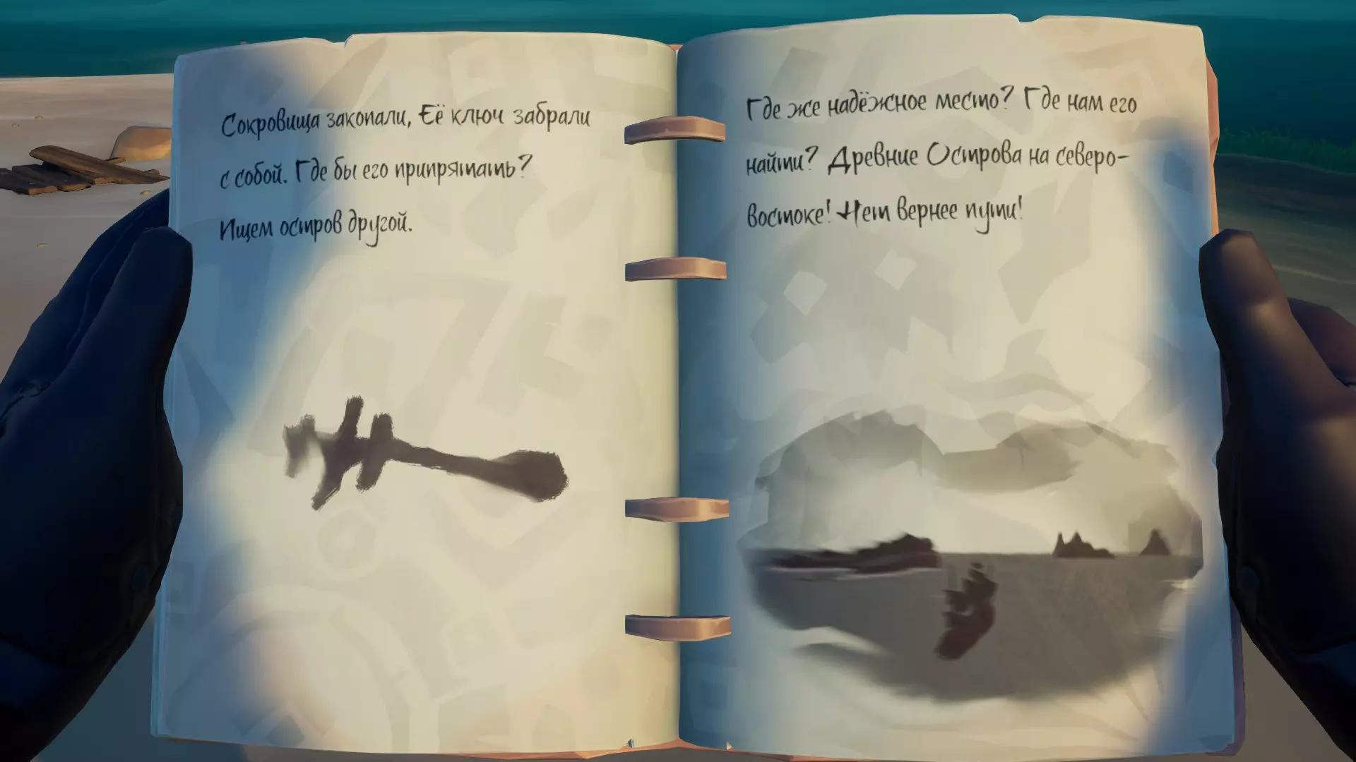 日记 重要!所有日记必须在冒险结束前收集完毕!日记仅在进行特定冒险时可用! 第一本位于群岛东南部的“鲨鱼饵湾”(H19)岛屿上,在一艘破船里。