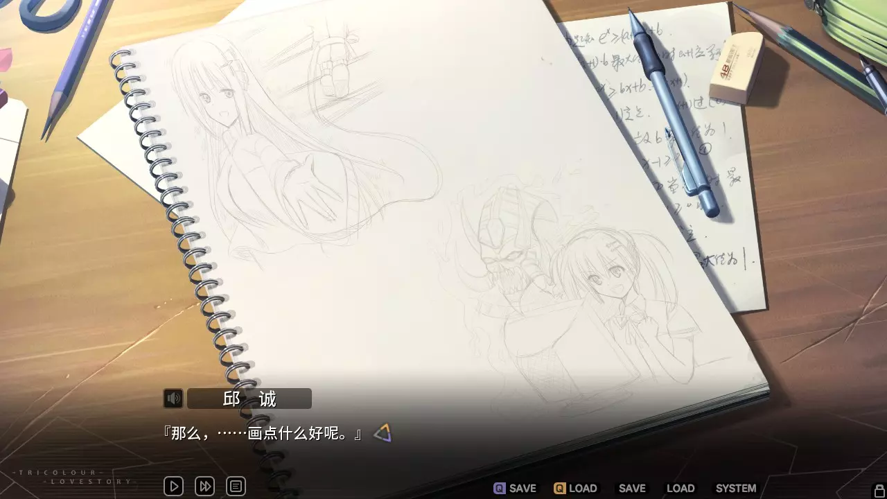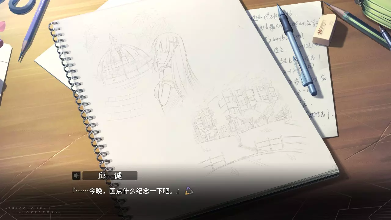 心有灵犀 生日宴会后,画下回忆里的她与自己挑选的速写板。 在第三章EP.5内游戏第三个选项中可解锁。点击选择画下左上角的文芷。