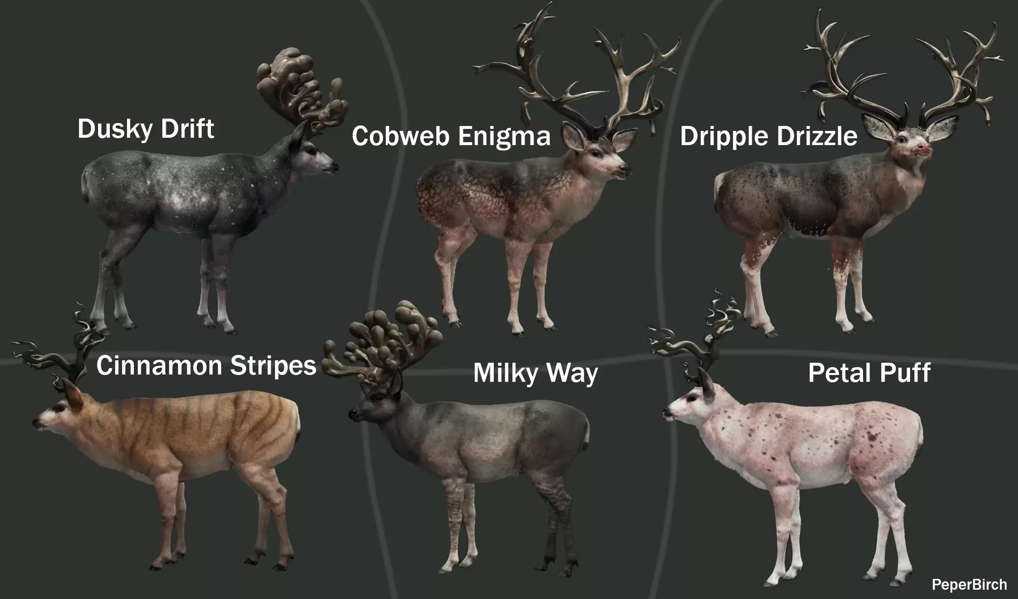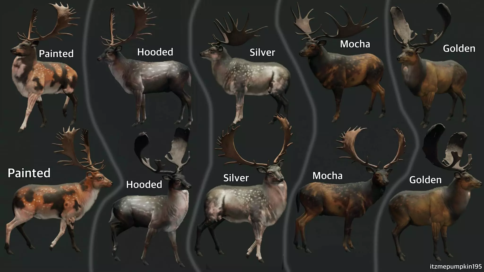所有古神变体按发布顺序排列 (我并未创作所有图片,非我制作的原始图片由Maac发布于脸书) 原发布者 Maac的脸书帖子 白尾鹿