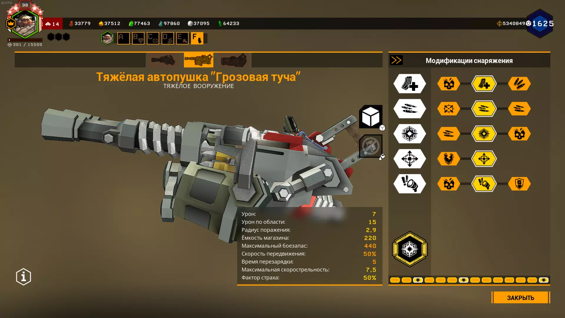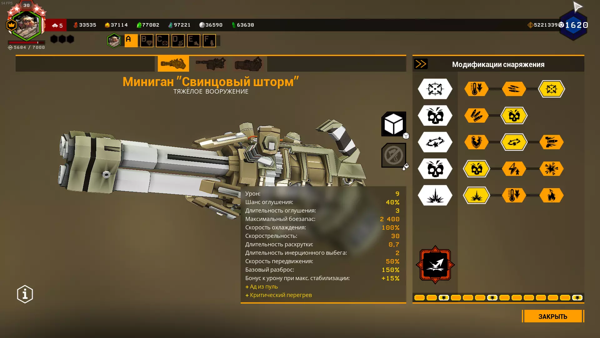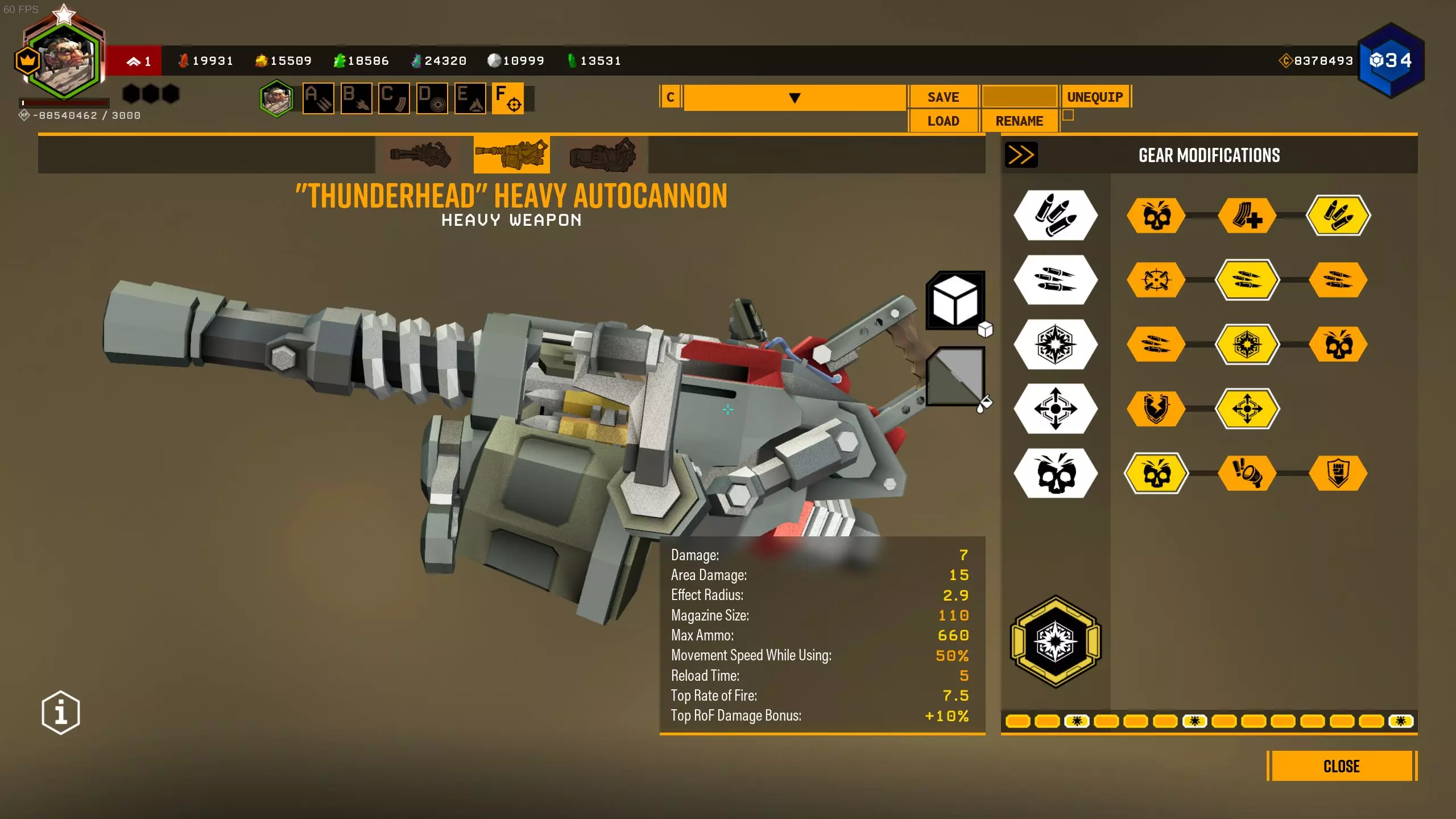 在1级天赋中,可选择增加弹夹容量或弹药数量。 在2、3、4级天赋中,选择很明确:增加射速、增加2点范围伤害和增加范围半径。 在5级天赋中,可以选择恐惧效果来提升生存能力,但这样你将不得不消耗更多弹药来对付敌人集群,因为敌人会四散奔逃。选择T5A是为了在自动炮以最高射速射击9发后出现集群断点,但如果不需要的话,可以选择T5C抗性。我在模组难度下使用的配置: