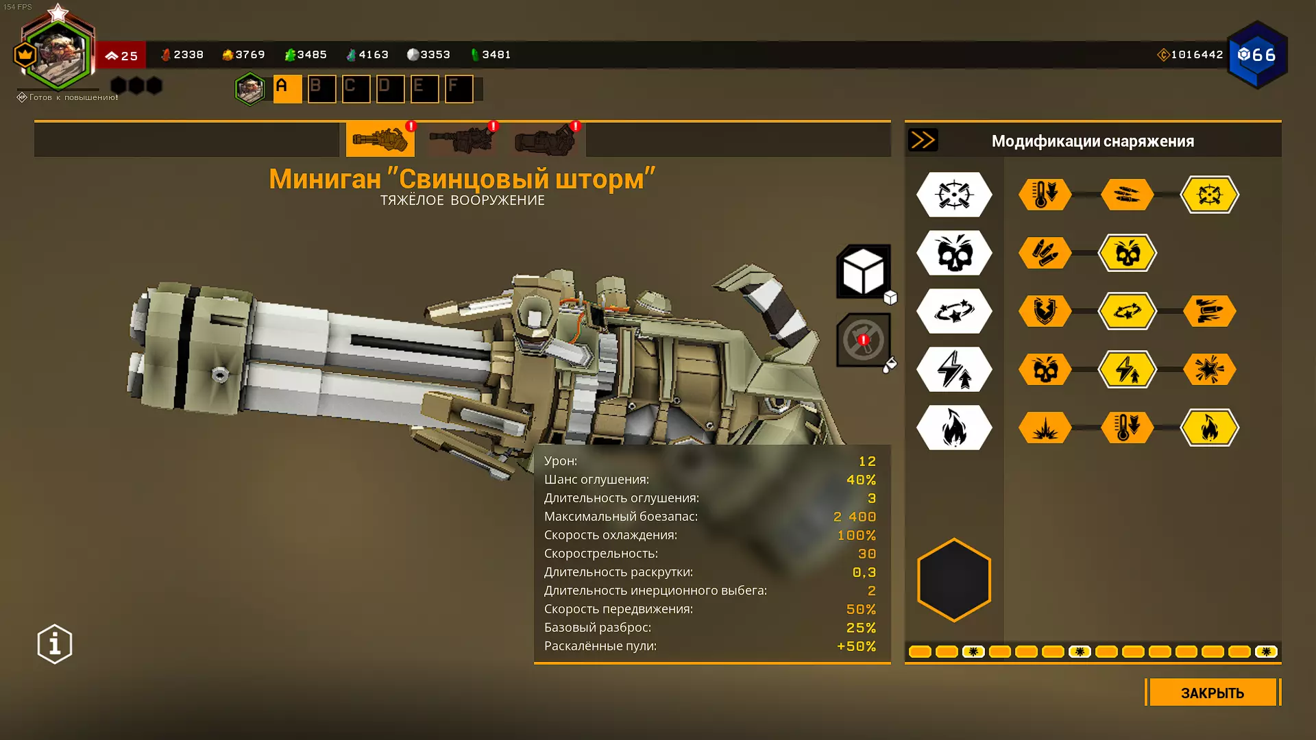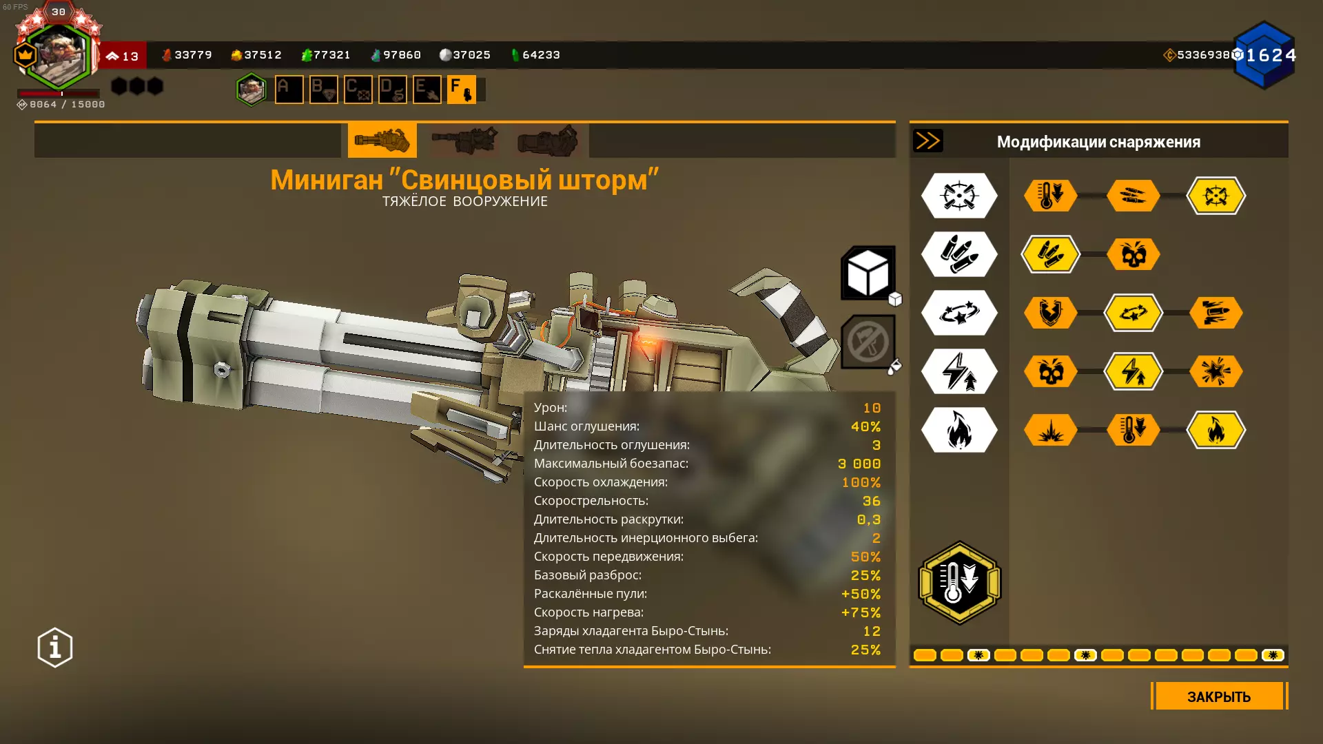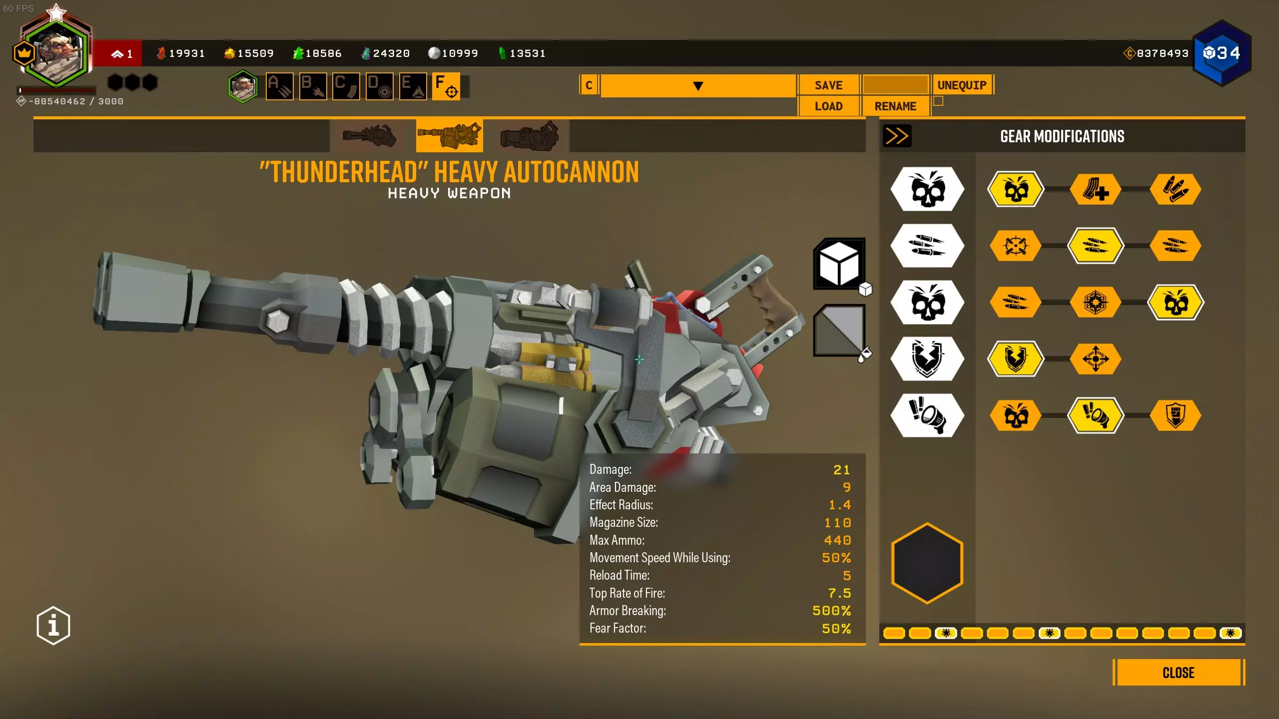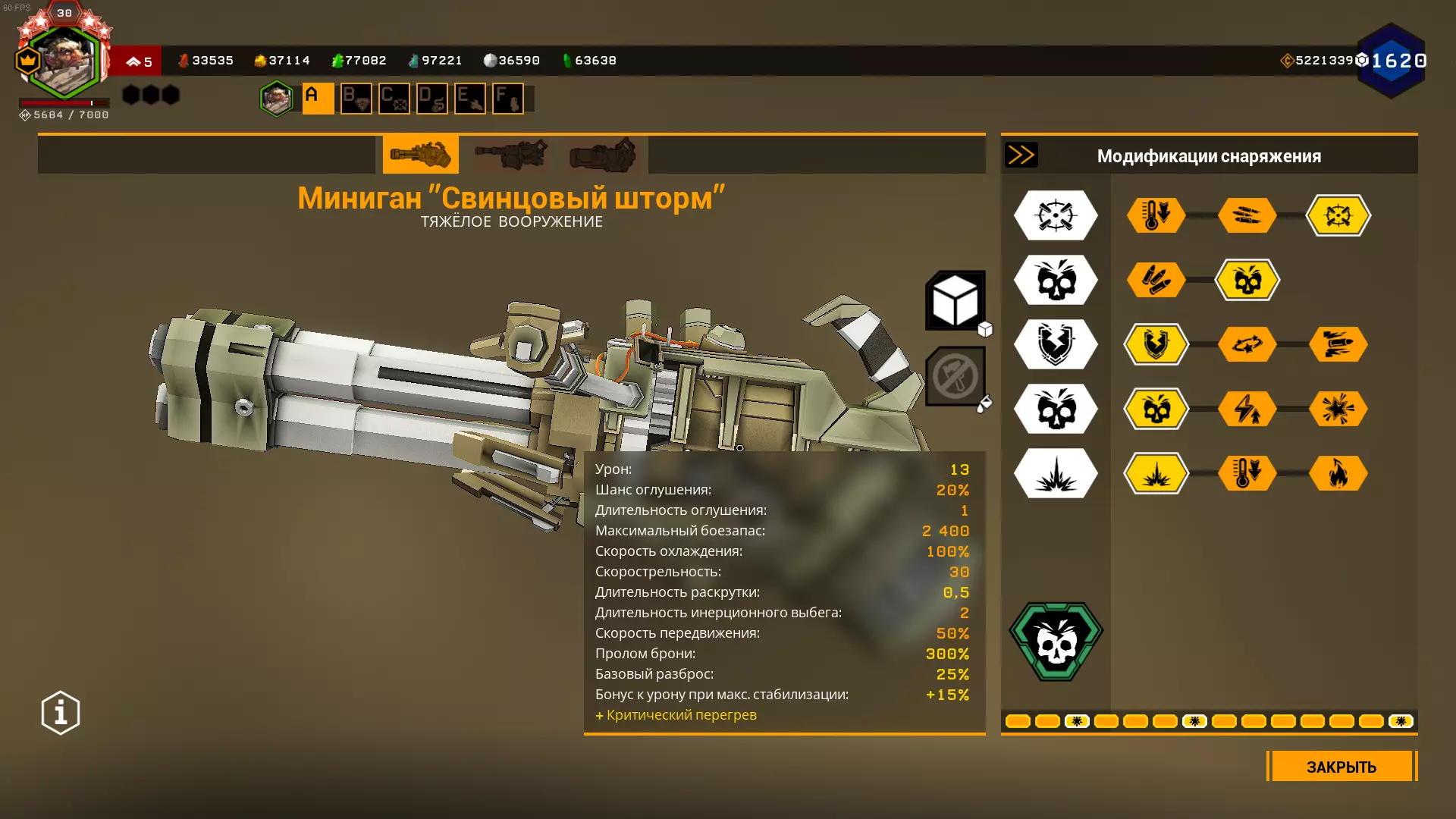 在1级天赋中,可选择增加弹夹容量或弹药数量。 在2、3、4级天赋中,选择很明确:增加射速、增加2点范围伤害和增加范围半径。 在5级天赋中,可以选择恐惧效果来提升生存能力,但这样你将不得不消耗更多弹药来对付敌人集群,因为敌人会四散奔逃。选择T5A是为了在自动炮以最高射速射击9发后出现集群断点,但如果不需要的话,可以选择T5C抗性。我在模组难度下使用的配置: