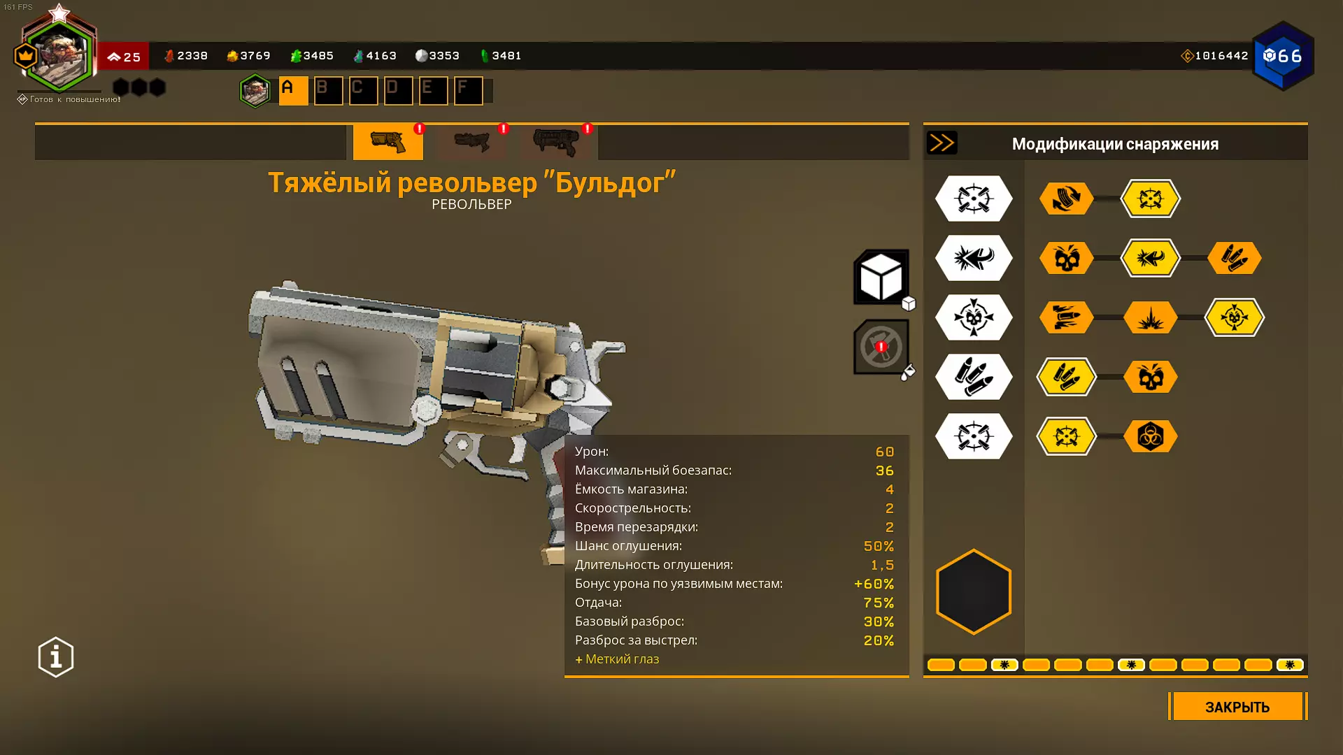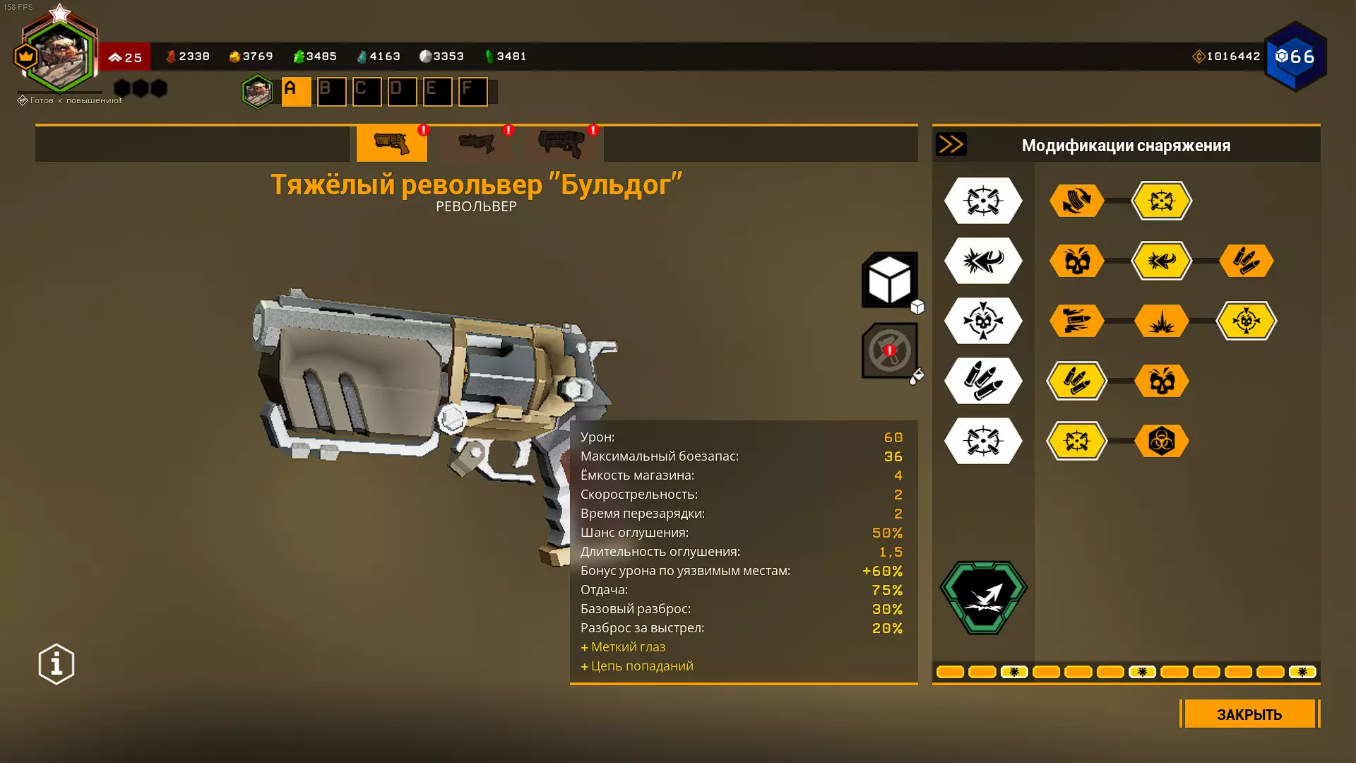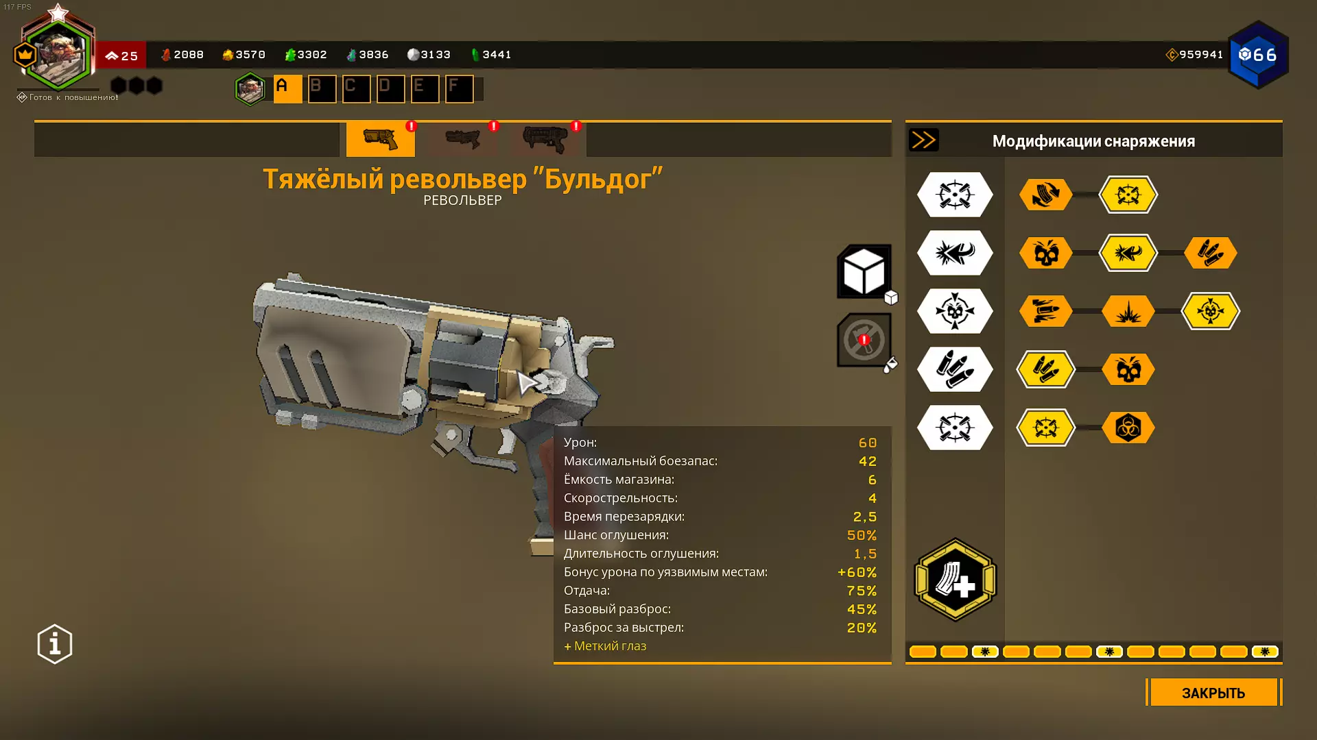 将弹巢容量从4发增加到6发(从视觉上看,开发者甚至未能将弹巢模型从4发改为6发),子弹数量增加6发,射速也提升2点。这是一个使用起来非常舒适的超频。在1级天赋中,我们弥补了超频在精准度方面的负面效果,而由于可以跳过换弹动画,装弹速度的降低并不会造成太大影响。在T2天赋中我选择了减少后坐力,在T5天赋中则选择了鹰眼。也可以选择满伤害的六发弹巢,这样就能拥有像重炮武器一样可观的商店伤害,同时还没有诸多缺点。