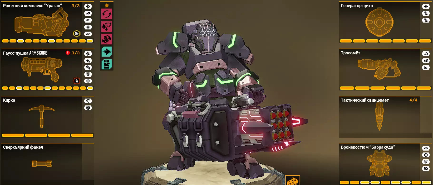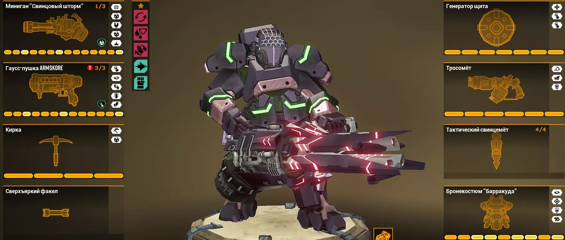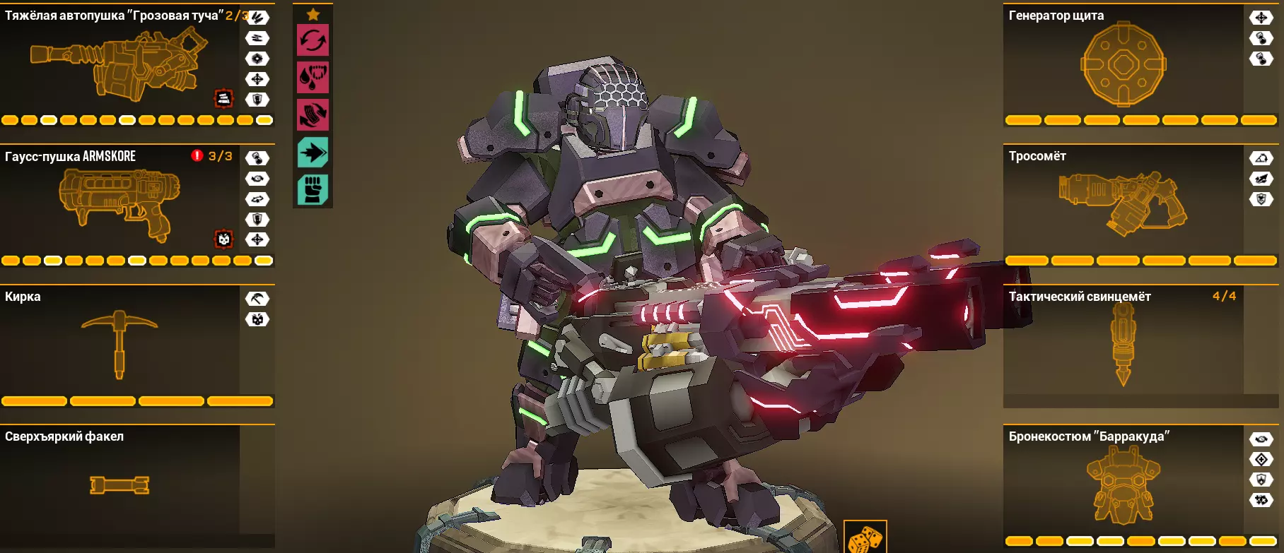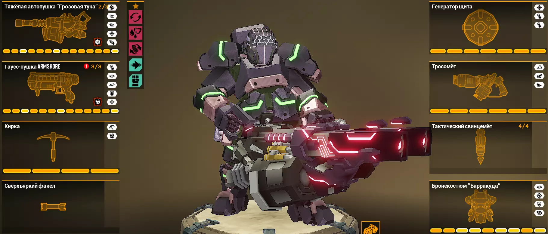 它能把火箭筒变成霰弹枪。不管我怎么尝试这个超频,都找不到它的用武之地。可以说它是个不伦不类的东西。 在范围攻击(AoE)中装配它毫无意义,因为其伤害过于集中,只能覆盖部分敌人集群,而原版火箭筒反而表现更好。 在单体目标攻击中也很可疑:伤害极低,而且还只能近距离生效。那到底该用什么来击杀Menасов和静态敌人呢(而且就算装了增加数量的Salvo Module模块,伤害也还是不尽如人意)。不过为了多样性还是可以玩玩的——在6级2星危险等级下测试时,这个超频没有什么特别的问题,但我也不会说 gameplay 很轻松。总之,它让火箭筒变得更弱了。火箭弹幕/Rocket Barrage
