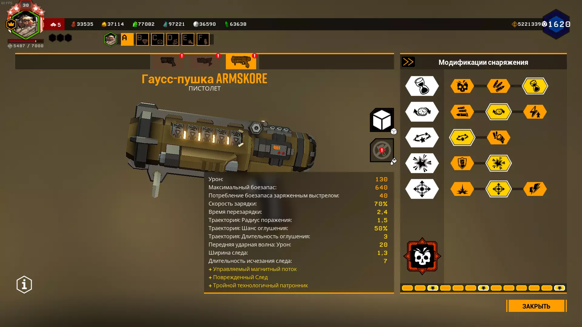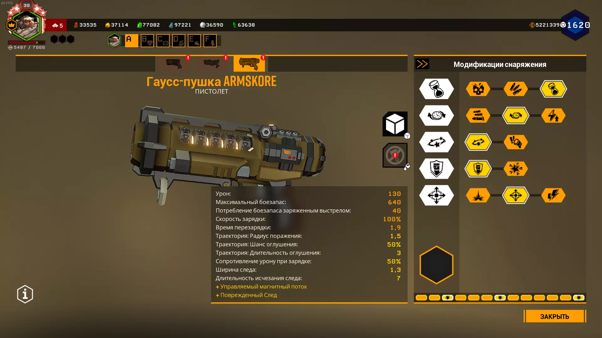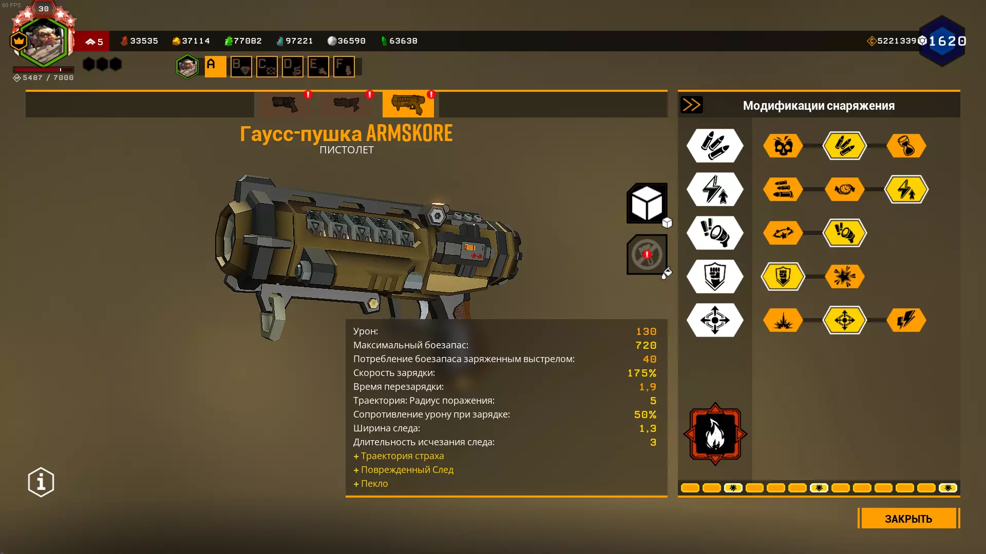 这项改进允许无需将高斯武器充能至100%,而是可以根据充能百分比在任意时刻射击。此时,射击时的伤害和弹药消耗会与充能百分比成比例降低(默认间隔为25%、50%、75%和100%)。 这让我们能够通过将高斯步枪充能至25%来节省射击次数,即10发弹药,同时轨迹效果仍会持续5秒(无强化时)或7秒(有强化时)。这意味着我们可以射击68次,而不是17次。 建议使用能显示高斯武器伤害值随充能变化的模组。 它能帮助你了解何时射击更佳。 根据该模组的显示,当准星上的伤害值达到32.5时,使用高斯武器射击效果更好。