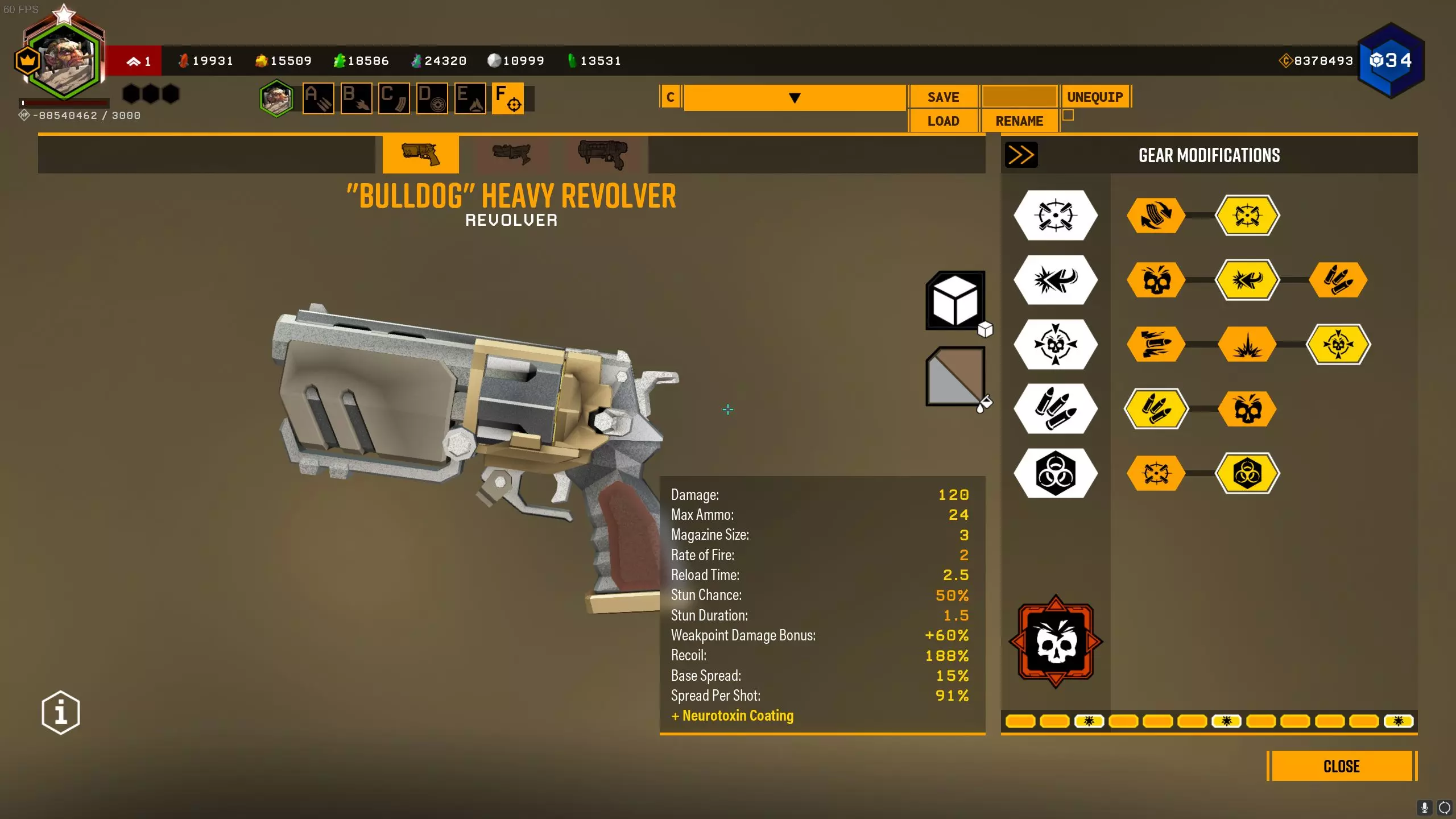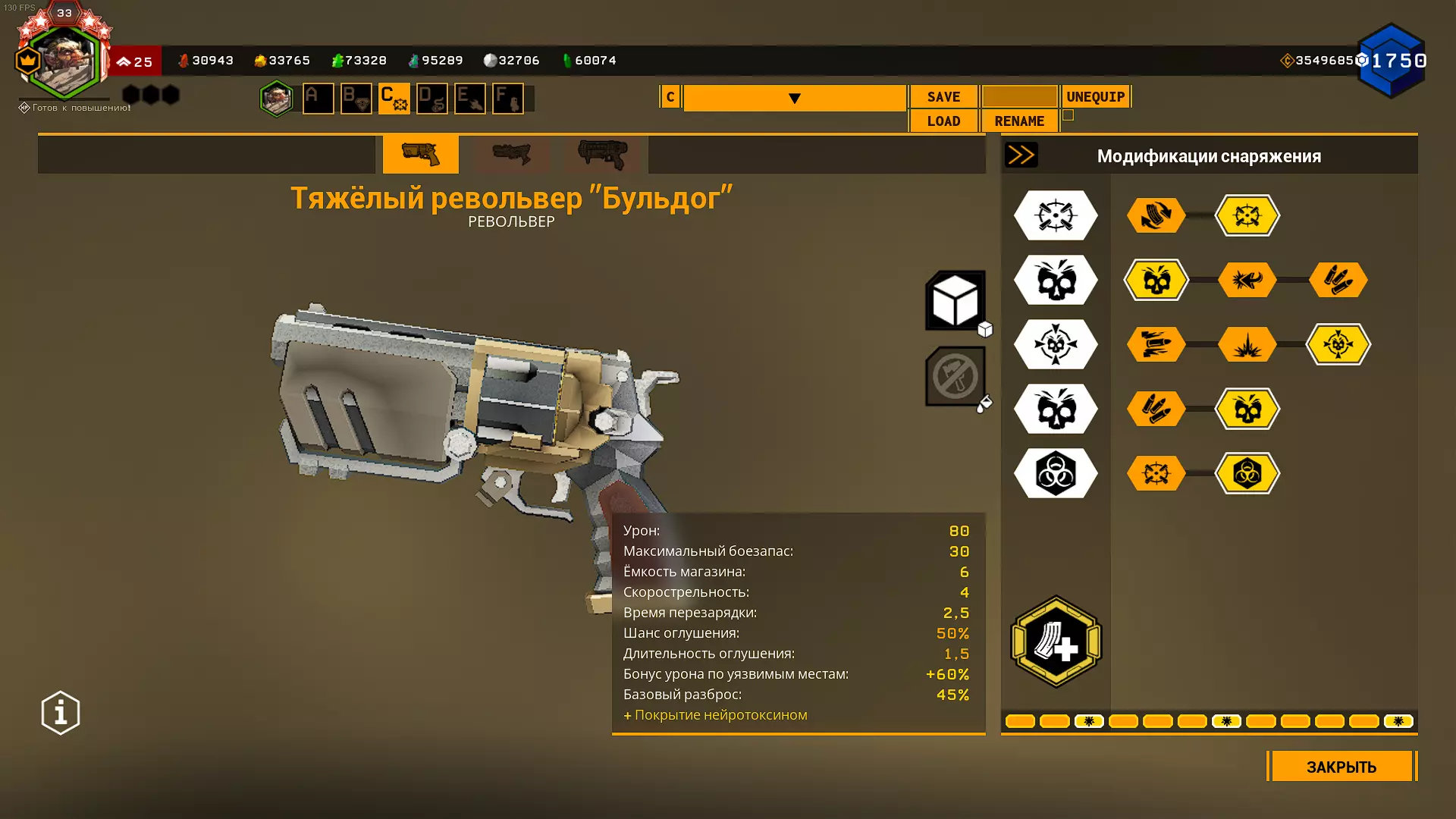 重型左轮手枪“斗牛犬” 这是一把拥有4发弹巢的左轮手枪。真不知道开发者是怎么想的,会设计出4发弹巢这种东西。 这把左轮手枪被认为是相当弱的武器,但有两个超频配件能拯救它,其中一个还强得离谱。 它主要用于对付生命值较高的敌人,或者是那些弱点明显的虫子。 没有超频配件时,它有两种上膛方式:便捷式左轮。