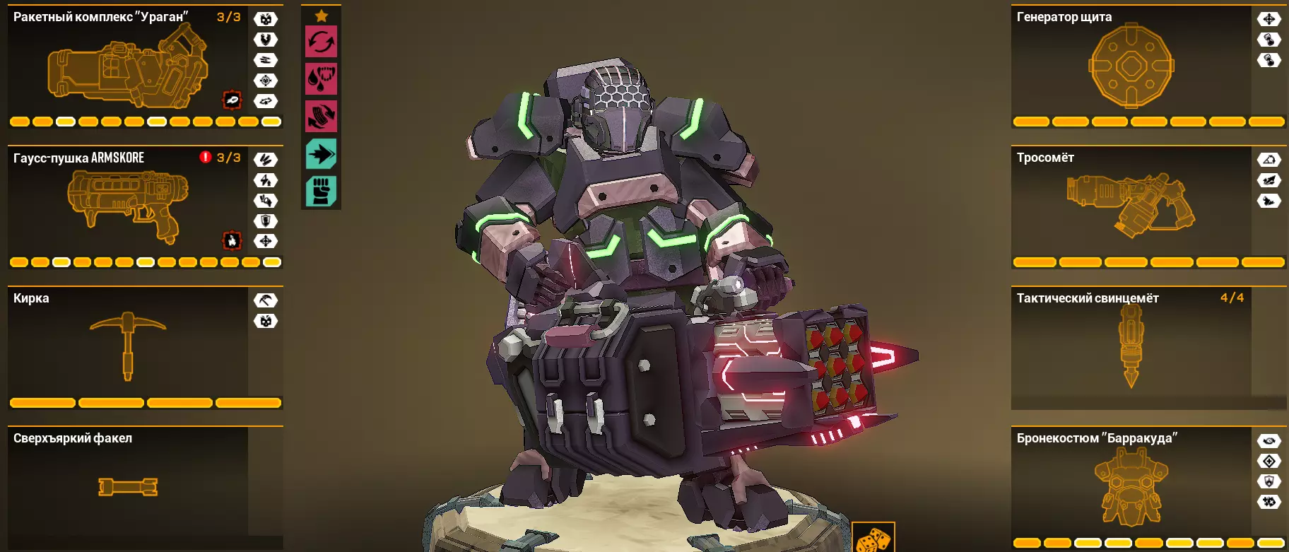 这种配置下的迷你炮是混合型的:它能很好地应对单个目标,搭配T5A模块也能出色地压制群体敌人。因此副武器选择混合型的线圈炮-迷你炮组合。 飓风(火箭弹幕)-线圈炮(TTC)