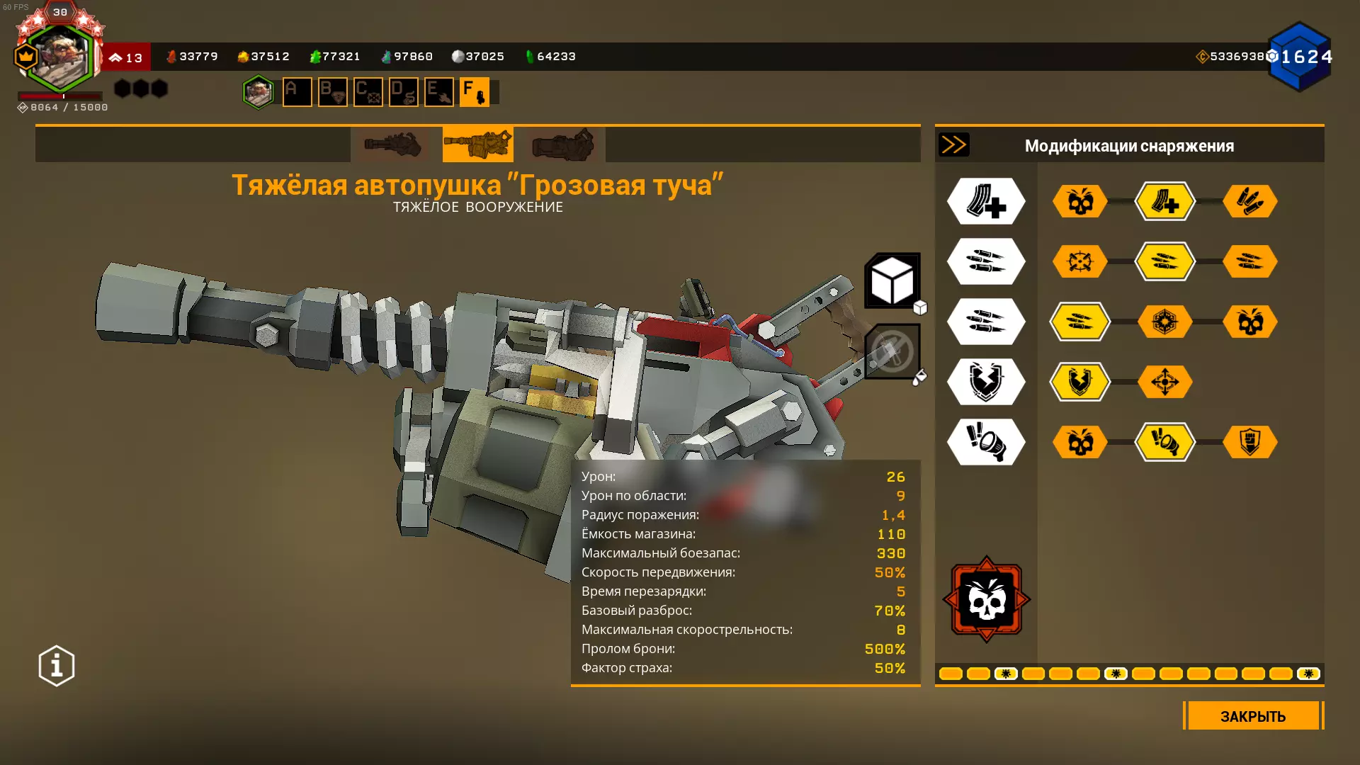 它提供+800(+400)发弹药。但这有什么用呢?对于迷你炮来说,重要的始终是每秒伤害,而不是总弹药量。 缺点是它会降低射速,导致我们损失每秒伤害,为此不得不通过压枪来弥补,同时还无法选择精度提升,这一点非常关键。 重型自动炮【雷云】 不上不下。至于精度,我就更不想提了。 自动炮发射的弹药既造成直接伤害,也造成范围伤害。此外,它还具备射速加速机制。射击时,每发射一发子弹,机炮炮管就会加速,直至达到最高射速,而最高射速取决于所选用的强化配件。最主要的缺点:机炮缺乏正常的精准度,无法有效对抗空中敌人,因此机炮的有效作战范围仅限近距离。最佳距离:仅限近战(10-15米) 此外,自动霰弹枪拥有游戏中最长的换弹时间,即5秒。 使用自动霰弹枪时,【准备就绪】技能是必备的。 不装备【时钟】配件时,专注于单体目标,两次蓄力:便捷的自动霰弹枪