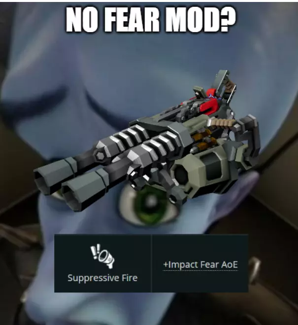 使用T2C和T3A,你可以通过3次射击达到抗性。这套配装在输出能力和抗性激活速度方面更便捷,但单次射击伤害略低。 我建议使用带有恐惧效果的高斯步枪,这样可以吓退虫子,并且在近距离射击时不会受到迫击炮弹的伤害。推荐安装能显示弹道轨迹的模组,这样就能知道迫击炮的炮弹会飞向哪里(我总是因为偏差太大而搞不清炮弹的落点)。 模组:弹道预测线热键Z 破片炮弹