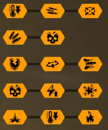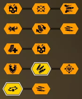 最受欢迎的Build,这并不奇怪——AoE清场流。关于它没什么太多好说的,用途明确且效果显著。 搭配【地毯】时,我个人更喜欢这套加点——32221。 T1弹药选择默认即可。第二层天赋比较有争议。在我看来,精准度和射速不相上下。精准度能减少失误并有效提升远程射击效率,而射速则能提供更高的火力密度和DPS。尽管我很喜欢精准属性,但还是选择了速射属性。由于我们的超频设置,第三和第四行的选择很明显——范围伤害和半径(不过第二个速射属性也有其价值)。第五行可根据个人喜好选择,但我通常会为轰炸机选择伤害加成。10%的伤害提升在实战中效果相当显著,因为这意味着对波次敌人的DPS提升,对守卫的击杀能力增强,甚至仅凭轰炸机就能解决禁卫。由于伤害会随着与命中中心的距离而衰减,所以可以忽略所有伤害阈值,直接追求原始伤害。 抗性固然不错,但我们获取抗性的速度相当慢,而实际上我们本可以在敌人靠近之前就将其全部消灭。 我建议只在最低射速时使用恐惧效果。因为射速越高,恐惧效果对我们自身生命值的负面影响就越大。敌人会四处散开,不会聚集在一起,超频的意义就失去了。不过如果需要的话,它的控制力还是很强的。我们完全不在意检查点,所以除了上述情况外,不会通过让敌人陷入恐惧来给自己添麻烦。 存在各种配装方案,比如极限射速流、精准恐惧流,还有类似精准+射速的混合流。总之,配装的组合非常丰富。组队时一定要带上对单体目标有帮助的角色。 配装方案2 - 扶她 超频 - 大家伙(Big Bertha)