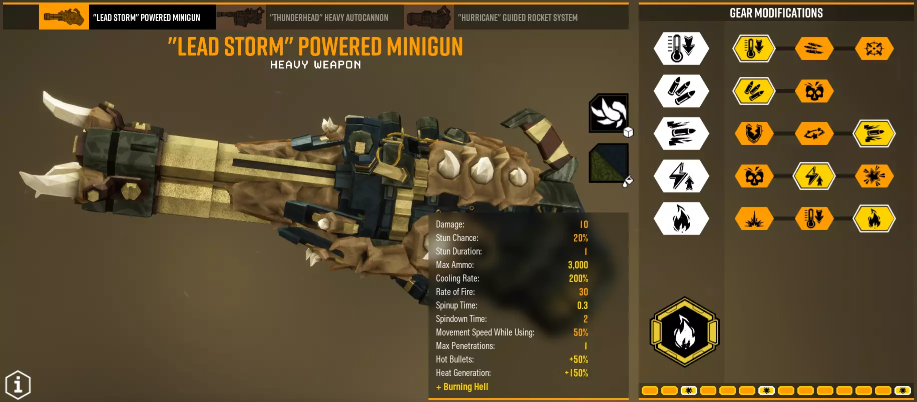 我给你们准备了最棒的“甜点”。我真心超爱这个超频配件。这家伙简直就是个怪物,能把加特林机枪前方5米范围内的一切都烧个精光。而且,它不只是会加热,从你开始用加特林机枪射击的那一刻起,就会直接造成火焰伤害,准确来说是每秒4次,每次5点伤害。开始感受到这有多强了吧?每次考虑用加特林机枪时,我首先想到的就是它。在T1槽位选择你想要的配件,我选择的是强化散热,以抵消武器本身加剧的发热问题,并缩短无法射击的时间。在T2槽位必须选择弹药,因为凭借你所有的每秒伤害和临界点,火焰效果会很有帮助,而更多的弹药意味着更多的灼烧效果。T3和T4槽位保持不变,至于T5槽位,我想你明白我们要选什么。【热子弹】是这里的最佳选择。我们能更快达到过热状态,这意味着射击5秒后,不仅能灼烧前方的敌人,还能对一定距离内的敌人造成伤害。这对各种喷子、男巫和繁殖者(水母孵化器)非常有效。 为什么击杀不能减少过热呢?原因很简单:如果你想进一步减少强化过热的缺点,这个模组帮不了你多少。如果虫子是被火焰杀死,而非来自迷你枪的直接伤害,那么冷却时间不会被计算。 关于【Aggressive venting】,按理说这似乎是适配该模组的配置,但实际上并非如此。当你已经在面前点燃一切时,并不需要这个范围内的额外火焰。对于能够合理移动并控制热量的玩家来说,恐惧效果也没有必要。而且我们在T1已经拥有冷却加速效果了。 支持它的主要理由是:免费提升总伤害。如果特意让武器过热,你会在【行动效率值】(AoE)中平白受到伤害。不过,【过热子弹】(Hot bullets)的应用范围要广泛得多,因为它们能让我们攻击更远的距离。 事实:武器描述中说超频会使热量生成增加150%,但实际上只增加了50%。 如果不是第二个槽位里的另一把左轮手枪(稍后会提到),这个配置可能不会这么好用。而且,这是我在虫群侵扰模式中替代弹幕地狱的选择,因为只需每秒点击几次左键就能烧死所有虫群,还不会过热,并且拥有3000发子弹;) 【额外配装5 - 既能干掉巢母,又能轻松应对】 超频 - 铅风暴
