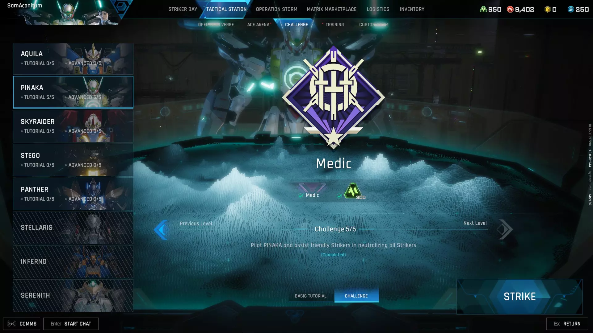 Point Capture (the one with A, B and, C) - Kraub Sinkhole; Poseidon Armory At the start, only A is capturable and is placed at the middle of the map. Watch how the battle unfolds and keep your allies healthy, use CAD to provide cover and ESD to save your allies. Always deploy your drones so it will automatically heal anyone that is damaged. Use CAD to safeguard both you and your allies from capturing the area. After a while, area B and C can now be captured, most of the enemies and allies are still contesting A, use that to your advantage and capture either B and C. Always use CAD on giving you cover on capturing the area. Use your CAD and splitter on disrupting enemy capture. Extractor Dismantle - Cape Blanc Observatory; Stella Observatory Island Same as point capture, but be warned, I experience when every enemy are focusing on me due to me being the only one doing the objective while the rest of my allies are playing TDM in Extractor dismantle. Data key Capture - Eye of Misra; Vigil Imbrium Same as capture, but this time, save your ESD when uploading the data key and also use it to support allies who got the data key. Team Deathmatch - Gracelynn Skycity; Babylon Sky Fortress Pray to god that all your team are using tanky strikers in your team, stay close to everyone and keep everyone healthy. Healers have it bad in this mode as one who’ll die very quickly if left unattended to melee strikers. Which Strikers to team up with Always team up with the tanky strikers such as Tricera, Stego, and Welkin. Keep them healthy for a better overall chance of winning. What to do when facing enemy strikers Most of the time, you will be running away from enemy strikers since you don't have enough firepower to completely destroy them most of the time. You must rely on your teammates to fully destroy them. This is what you need to do in order to escape/survive their attacks. Remember to stay on the ground most of the time. Alysnes and Panther When you get caught in their melee attacks, immediately use ESD to prevent you from getting staggered, use the terrain to evade them, and when they are still chasing you, drop CAD in front of you, there's a high chance you can hit them. Even if you don’t land it on them, it’s still a great tool for blocking them. Welkin When he caught you with his box, immediately use your ESD to survive his onslaught. If you are on the ground, place CAD to increase your survival chance. Welkin's spin attack will make him grounded and can't target when you are flying. You can break free from hix box by shooting at it. Narukami and Aquila They are sniper type strikers so you won't really be able to counterattack them at all but their sniper shots can be easily blocked with your CAD. you can hunt down narukami on TDM if you have an ally falcon/serenith who is hunting narukami down, and can easily be destroyed with your CAD if you catch narukami off guard. Falcon and Skyraider You can’t really touch them since they will always be in the sky flying around. If you manage to catch them losing too much energy, your splitter can inflict enough damage on them, especially Falcon. If you are being chased by them, just use your ESD and CAD. Tricera Based on the advanced challenge, Tricera is the only one you can kill with ease. Tricera’s fortress mode locks him in place and can be hit with CAD easily for big damage. His vertical aim is very limited so fly on top of Tricera and unleash your splitter on him to make him move away. Stego A much more annoying version of Tricera thanks to its haze diffuser, the only difference is that he has an even more limited aiming on both vertical and horizontal. Harass him from the side or behind with your splitter or use CAD to make him run away. Hurricane In my opinion, hurricane is quite weak. when you spot it alone, you can pretty much kill him with ease. simply use ESD and stay close to him while attacking him with your splitter, it takes 10 splitter ammo to fully kill a hurricane. Inferno Use your CAD to block the focused beam cannon since it hurts a lot. Luminae Another striker that you can harass without trading much damage. Make Luminae waste its Smokescreen and Luminous wings on you then run away. Pinaka This is a Pinaka guide so you probably know what Pinaka can do. Just ignore him since both of you can't really deal much damage to one another. I think you can stack your own CAD on an enemy Pinaka’s CAD but still needs further testing. Stellaris The filthiest, overly kitted striker in the game. Watch your surroundings and always fire your shots and the objective since Stellaris has stealth and might be capturing objectives. Best thing to do is be the bait and make him waste his energy on you. If you have a Welkin ally, communicate with them since it can be the one to 1v1 a Stellaris with ease. so i've been improving my skills on piloting pinaka, you can 1v1 a stellaris with ease if you have your ESD at full hp, simply bait him from combo-ing you while your ESD is up and unleash your splitter at him. if done right, you can kill a full HP stellaris. Serenith Your worst enemy ever. Another overly kitted support striker. It artillery can bypass your CAD since it's an orbital laser that fires from the above. He can put a grapple on you and hacks your IFF, making you unable to target allies since they are marked as enemies and potentially ends up healing enemy Serenyth. Best thing you can do is avoid fighting him at all cost and pray that your allies target it. Advance Challenge guide for Pinaka Challenge 1 - Escort ally striker towards destination Enemies: multiple big striker with big hammer axe, multiple large beam cannon, multiple missile launcher turrets. Ally: Stego (escort target) Your goal here is to safely escort an ally Stego. You first encounter the big striker and 2 large beam cannons. Head first and let the large beam cannon target you, they will keep targeting you so focus on keeping your Stego alive. Use CAD to block the large b